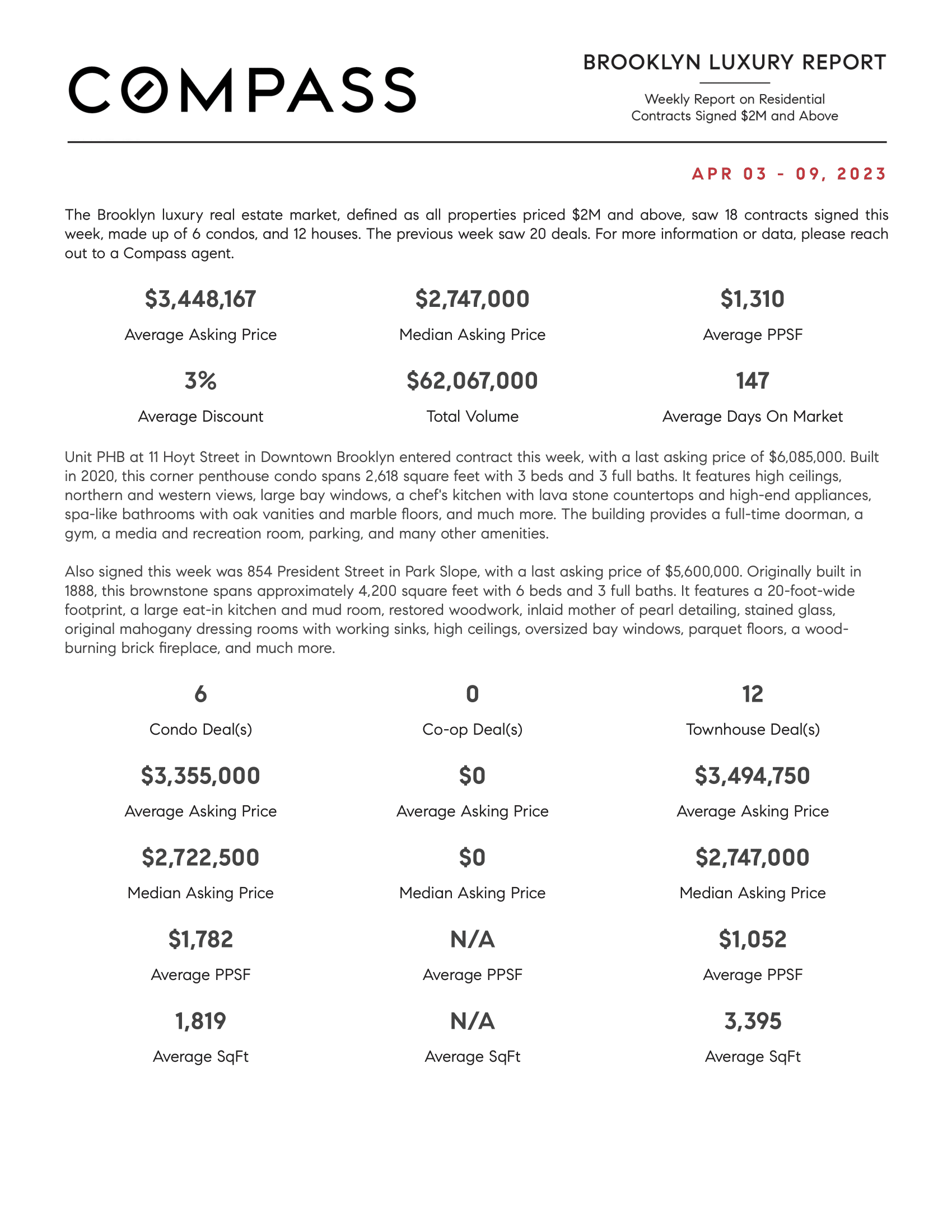 Brooklyn Luxury Report: April 3 - April 9, 2023
