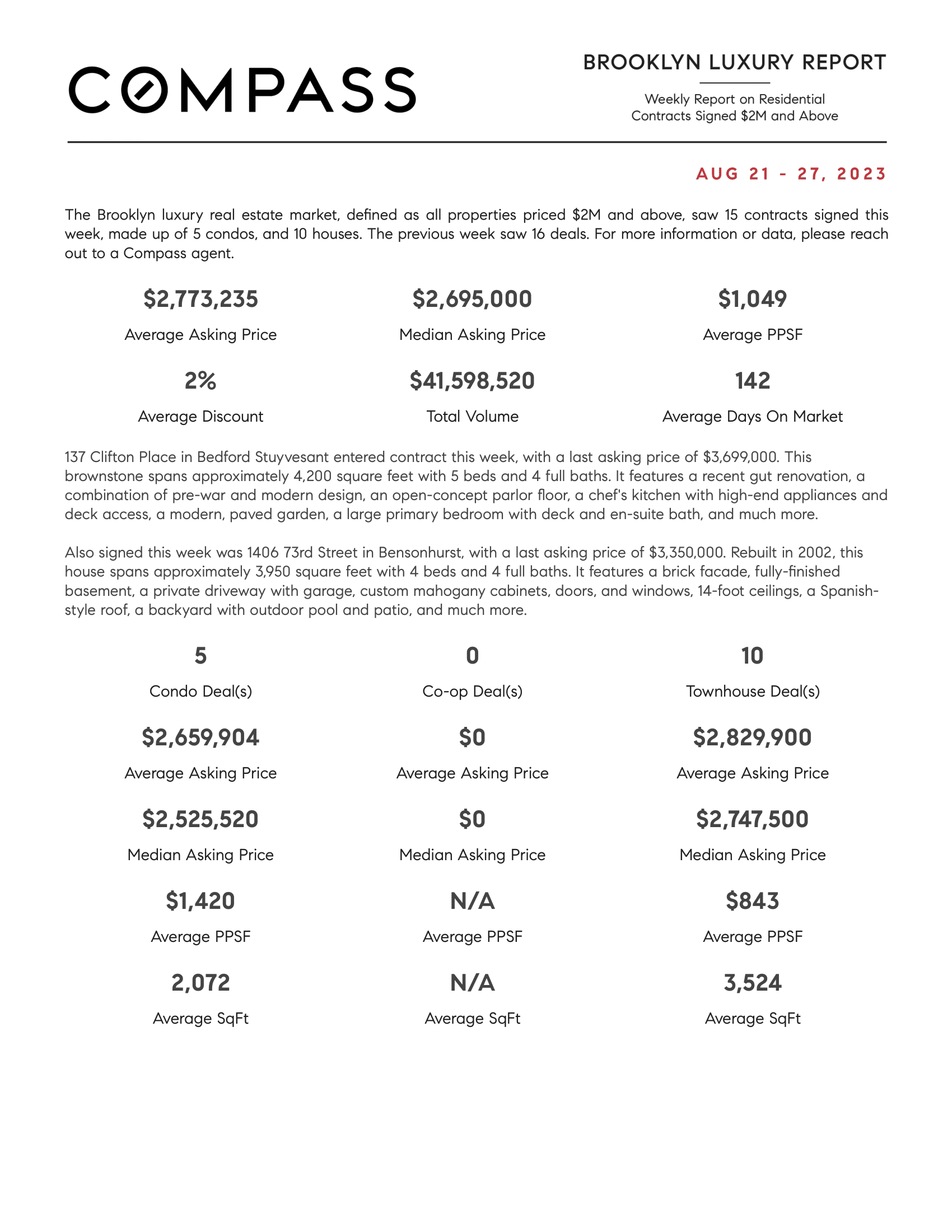 Brooklyn Luxury Report: August 21, 2023 - August 27, 2023