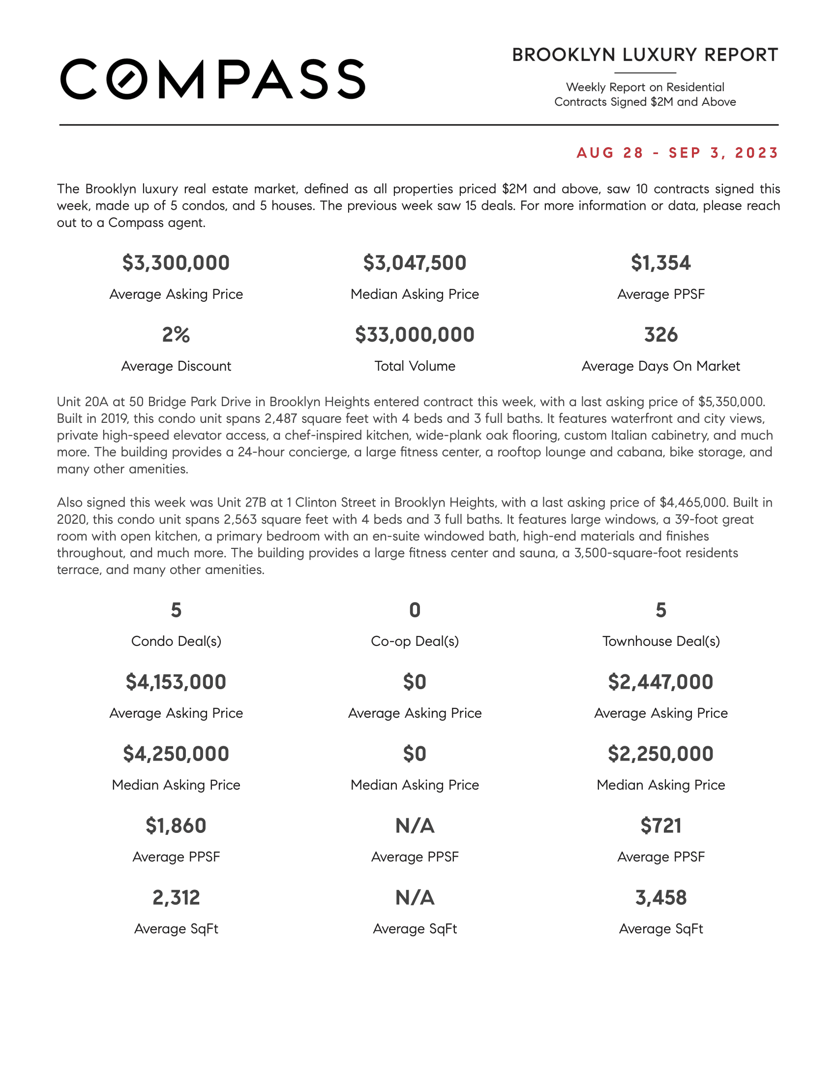 Brooklyn Luxury Report: August 27, 2023 - September 3, 2023