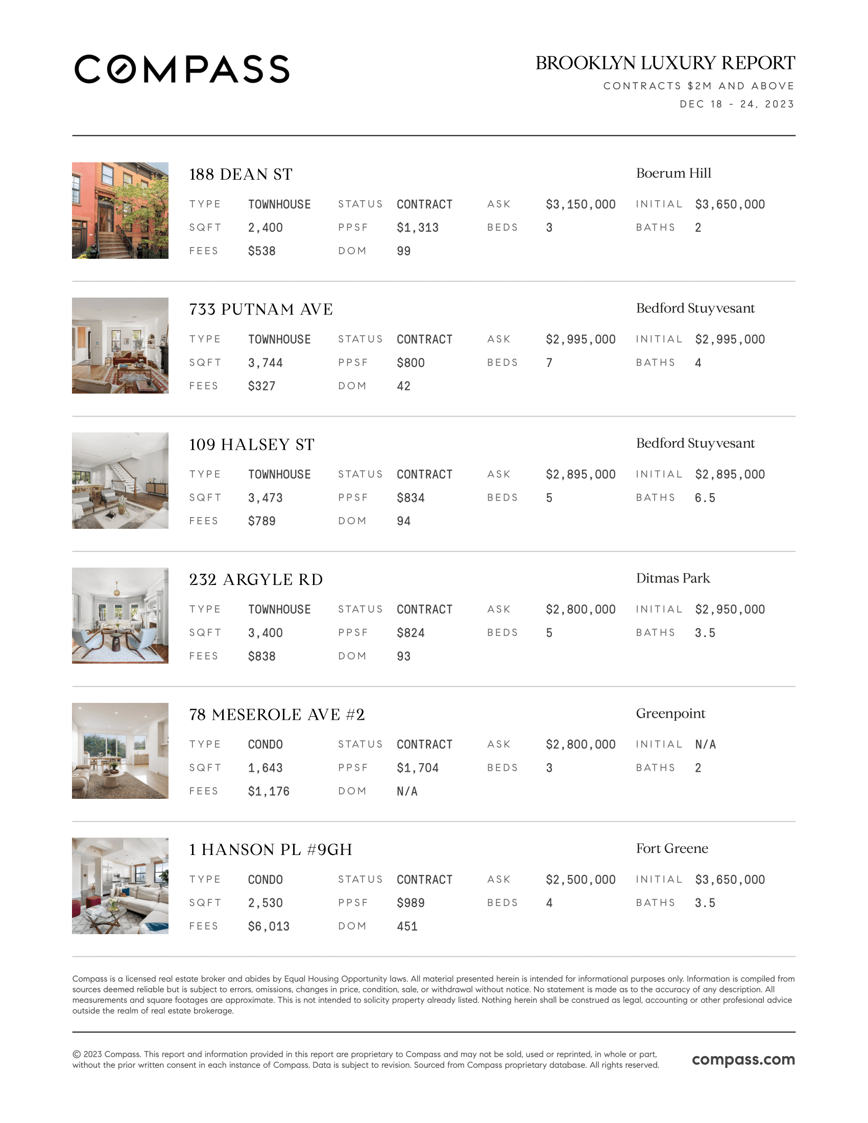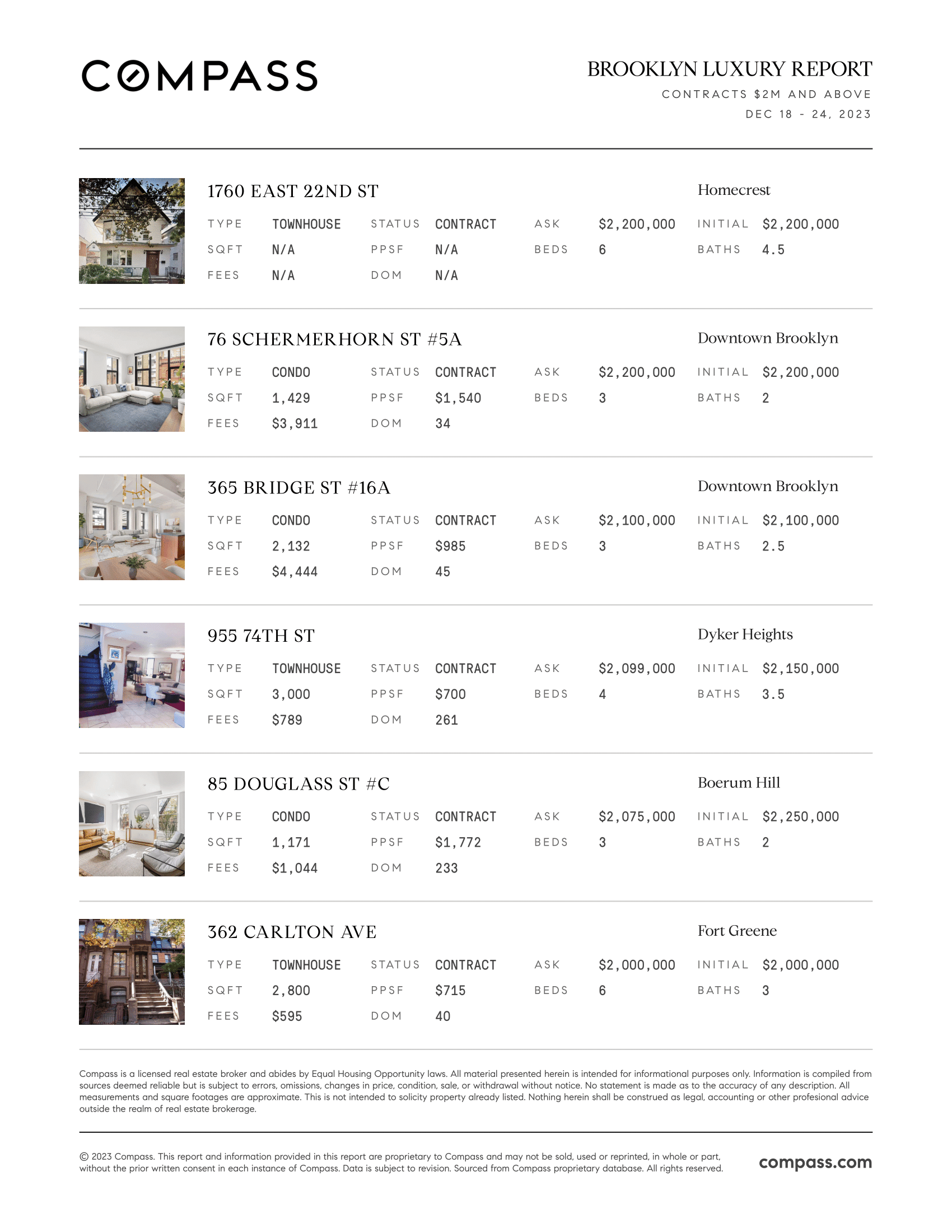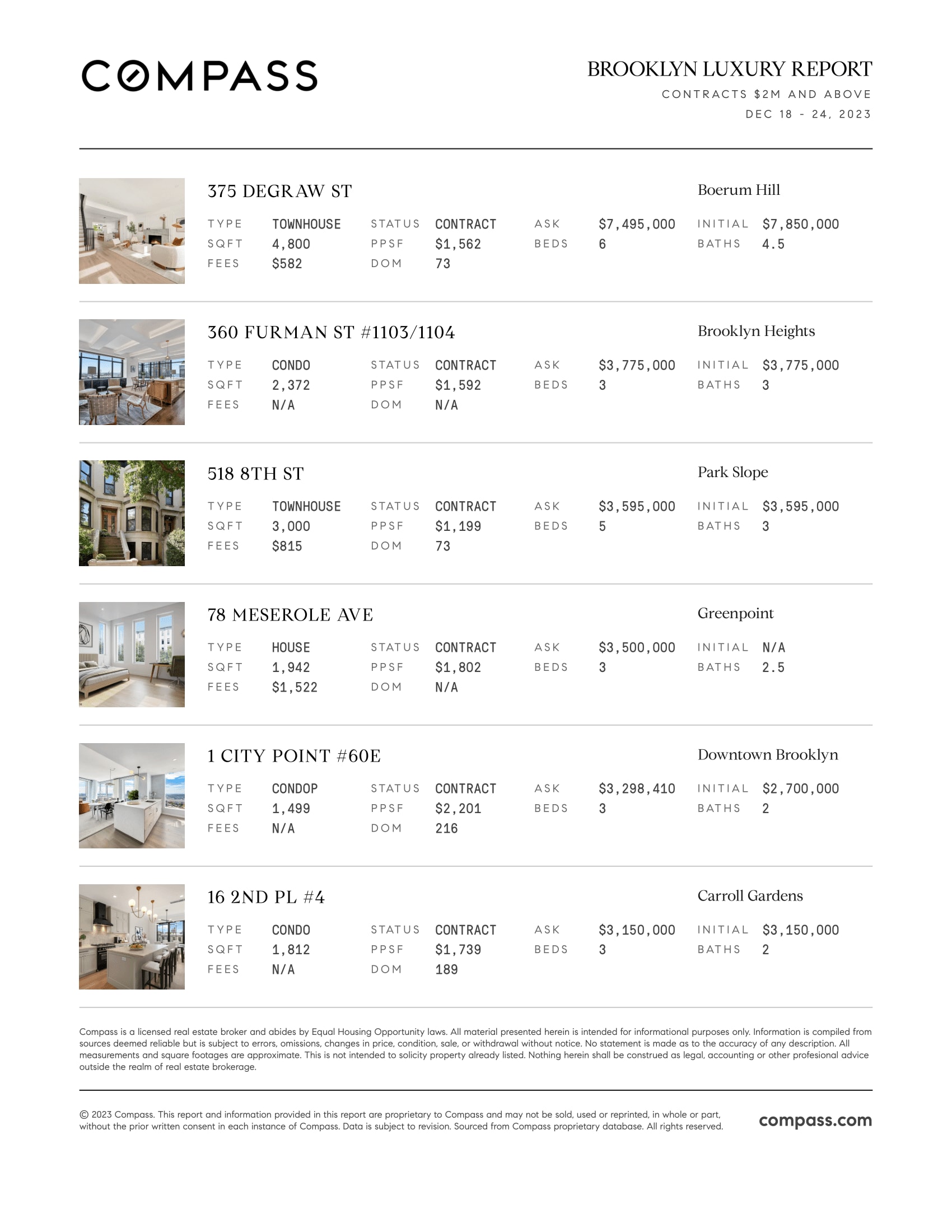 Brooklyn Luxury Report: December 18, 2023 - December 24, 2023