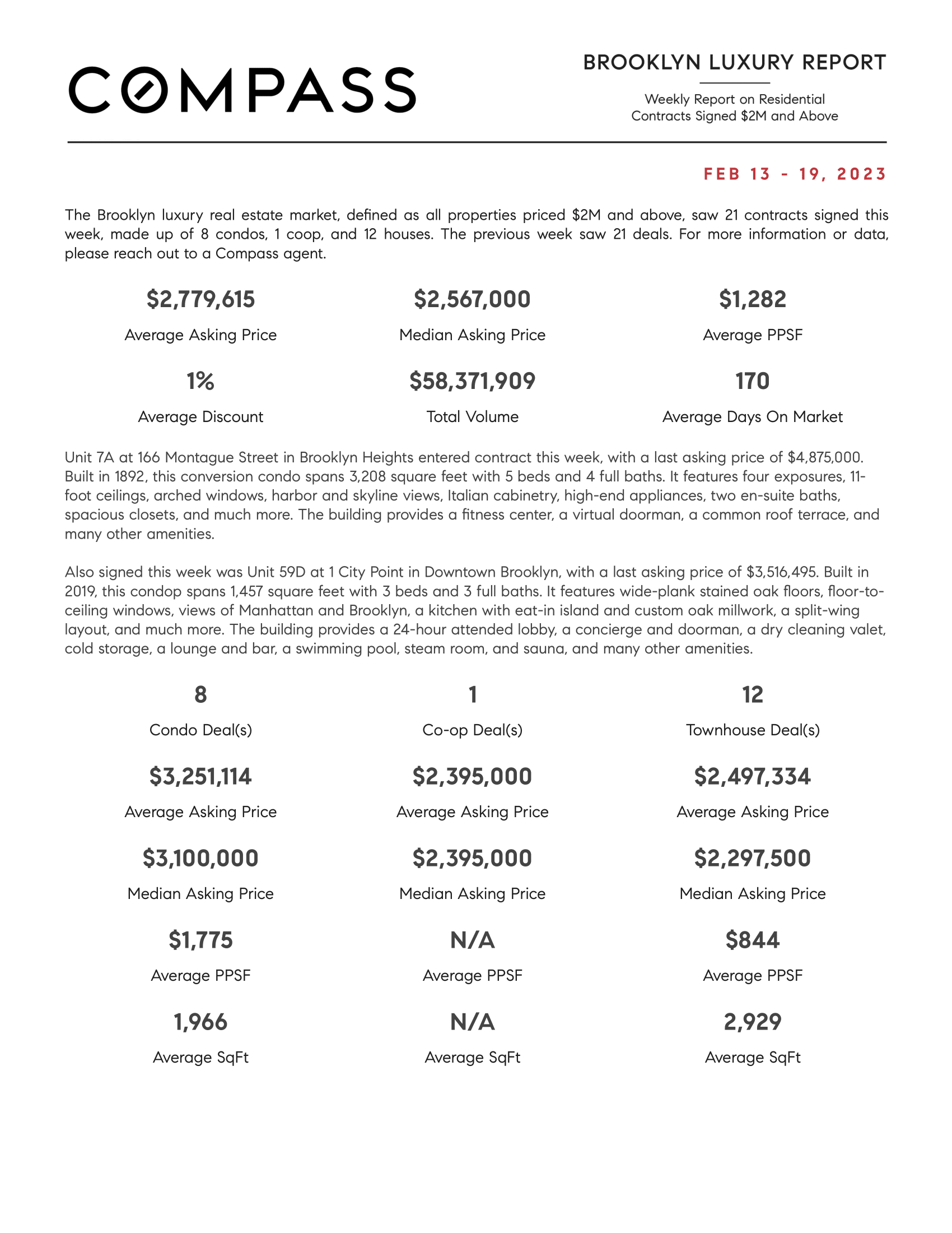 Brooklyn Luxury Report: February 13 - February 19, 2023