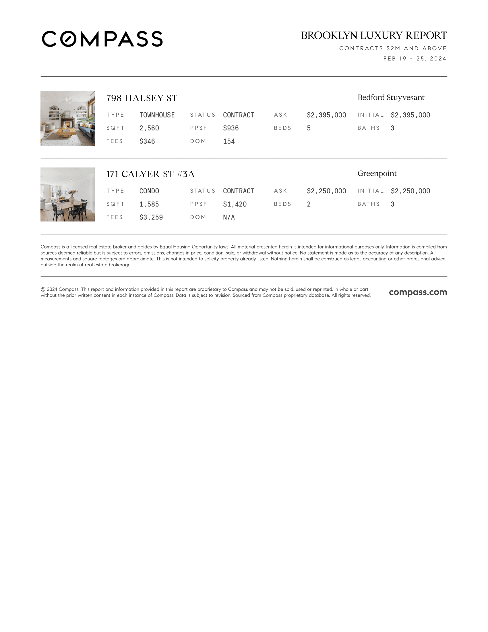 Brooklyn Luxury Report: February 19, 2024 - February 25, 2024