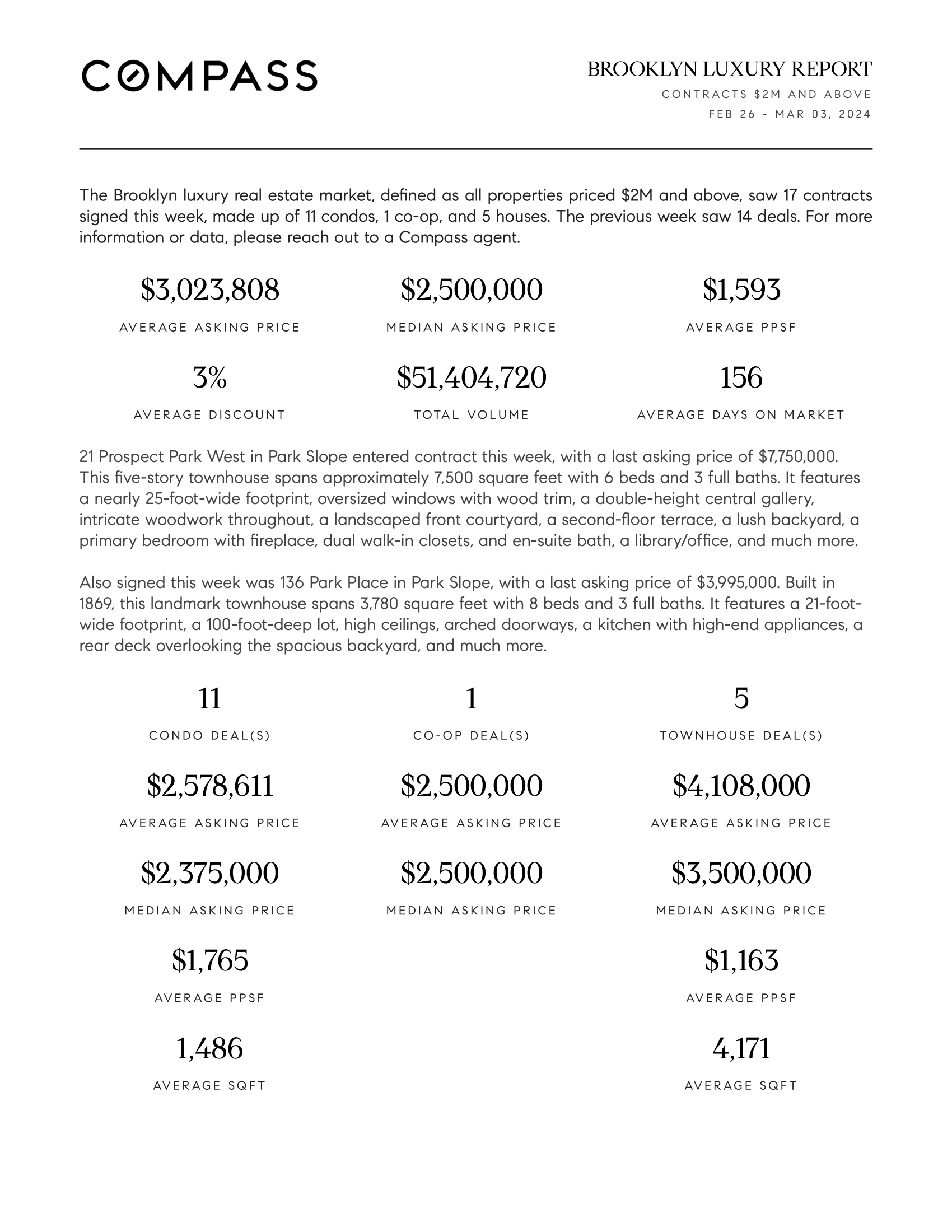 Brooklyn Luxury Report: February 26, 2024 - March 3, 2024