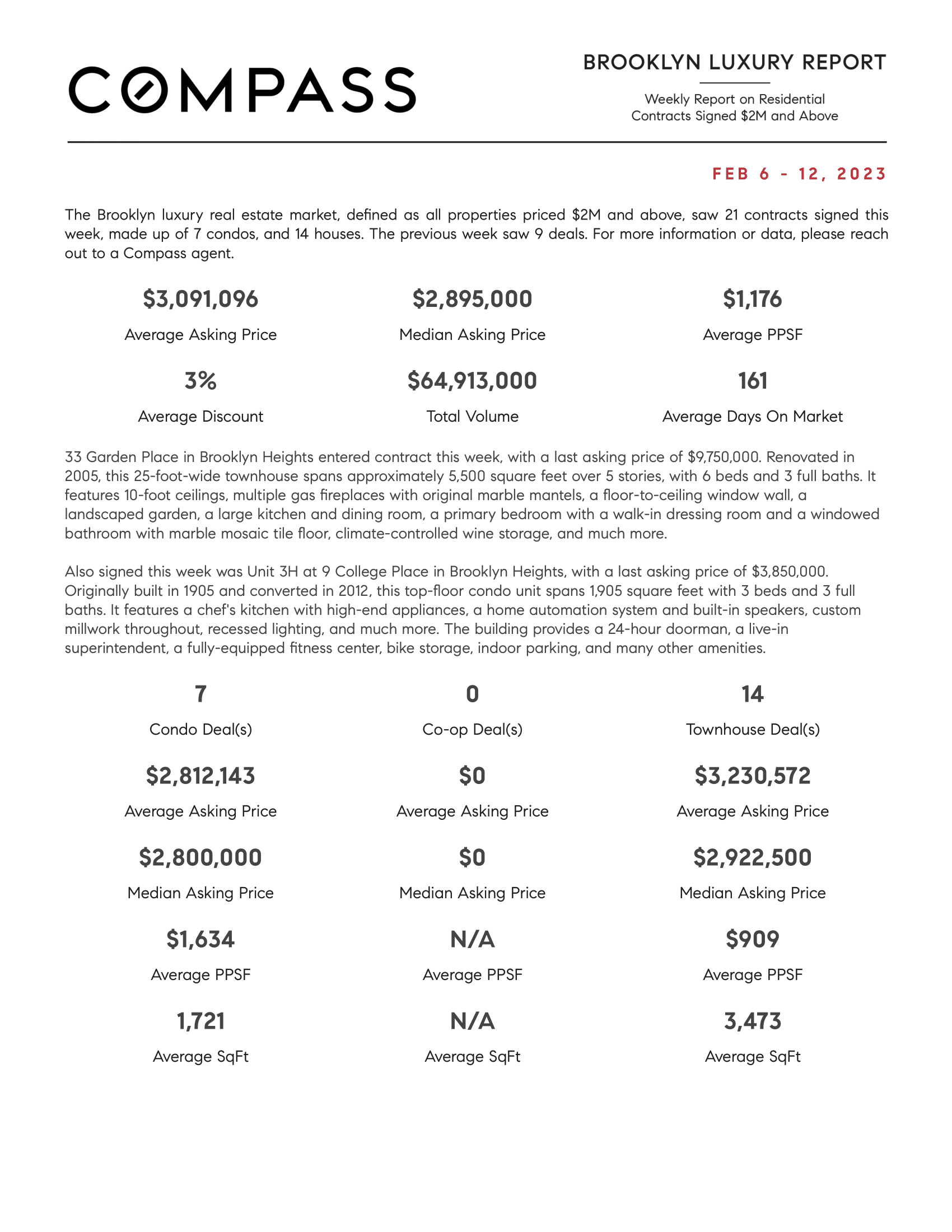 Brooklyn Luxury Report: February 6 - February 19, 2023