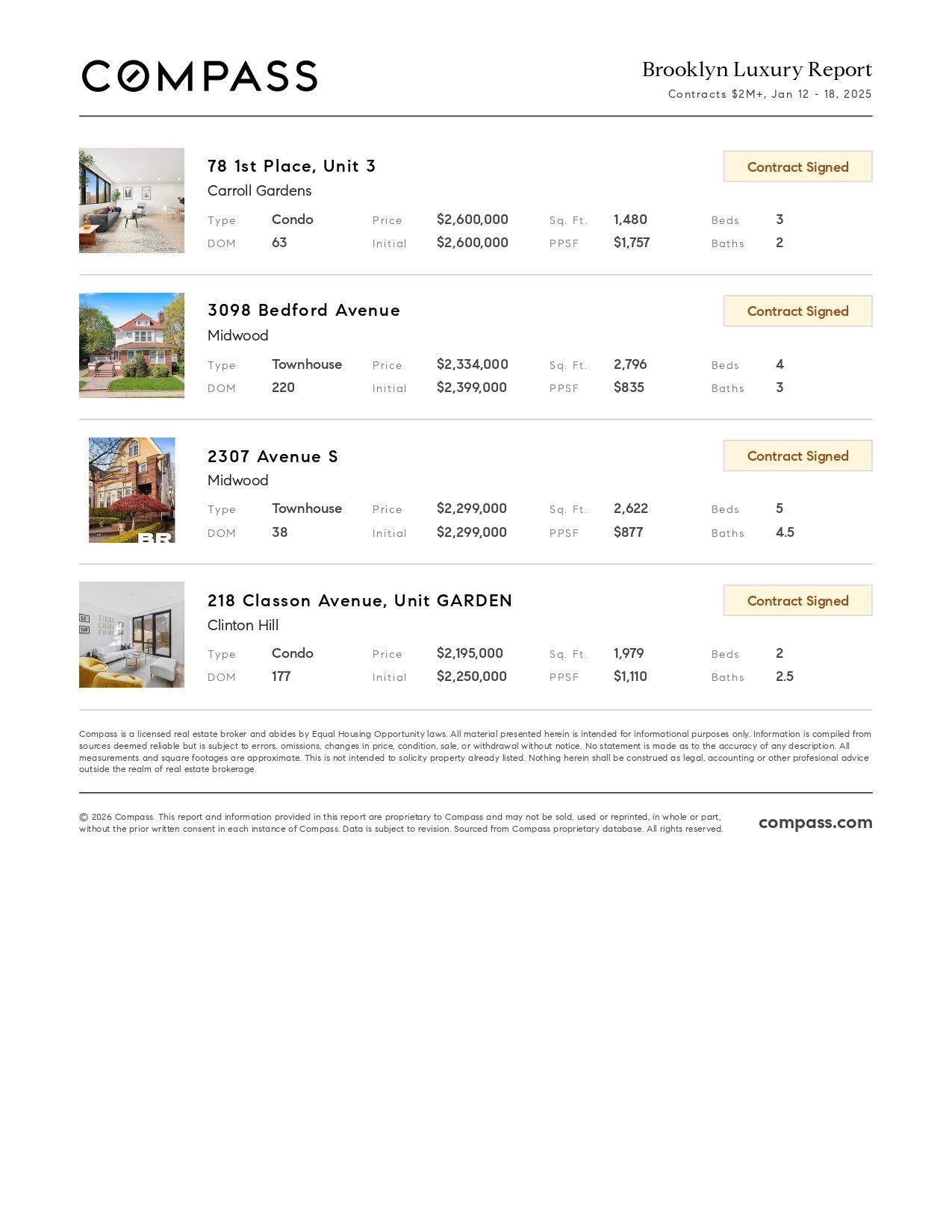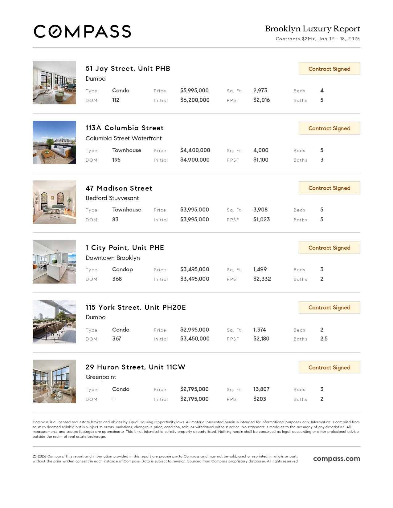 Brooklyn Luxury Report: January 12, 2026 - January 18, 2026