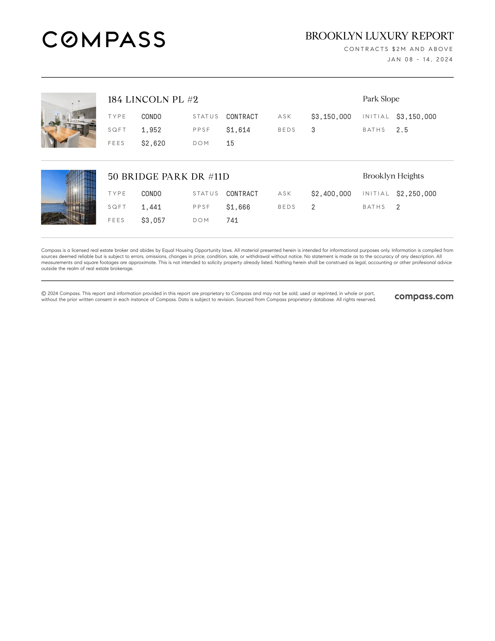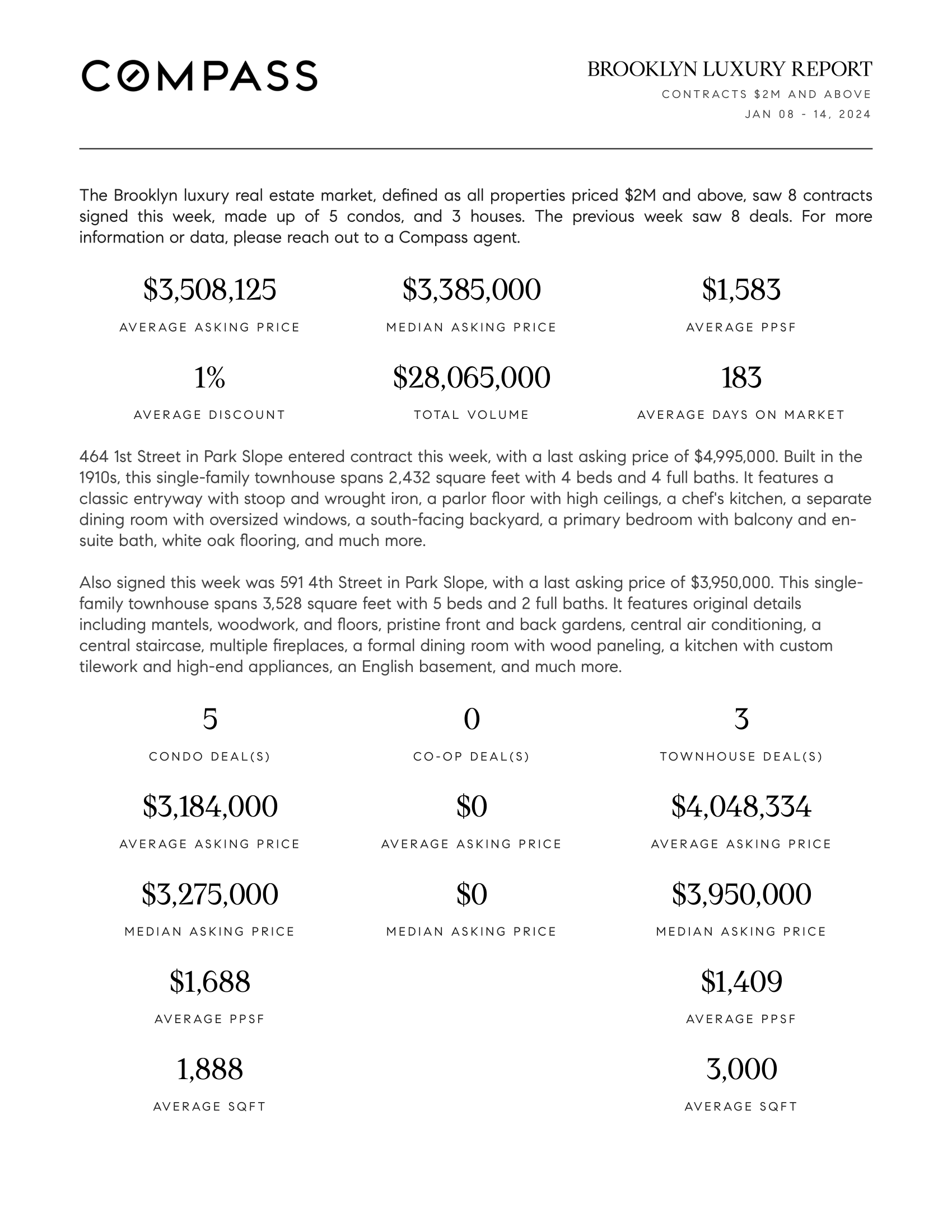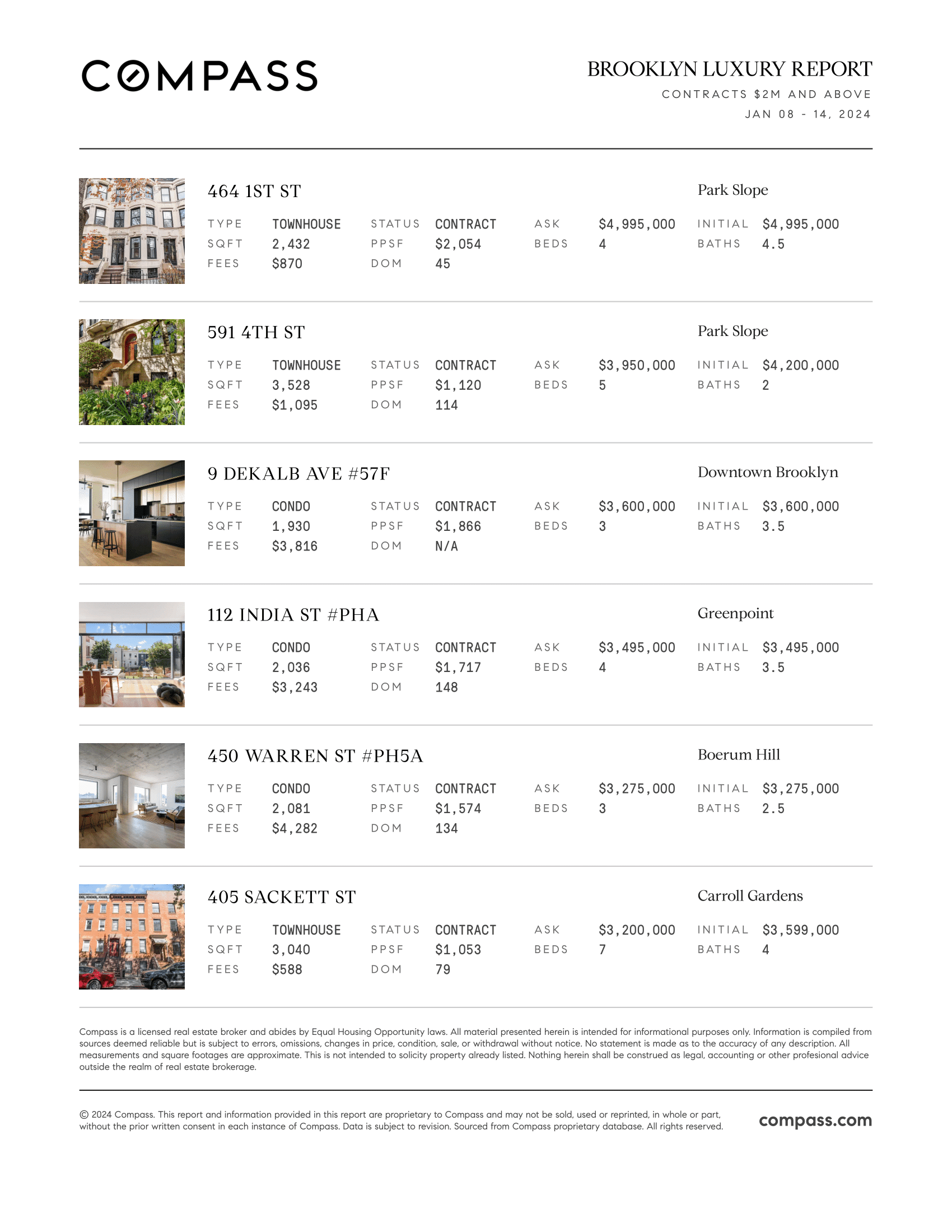 Brooklyn Luxury Report: January 15, 2024 - January 21, 2024