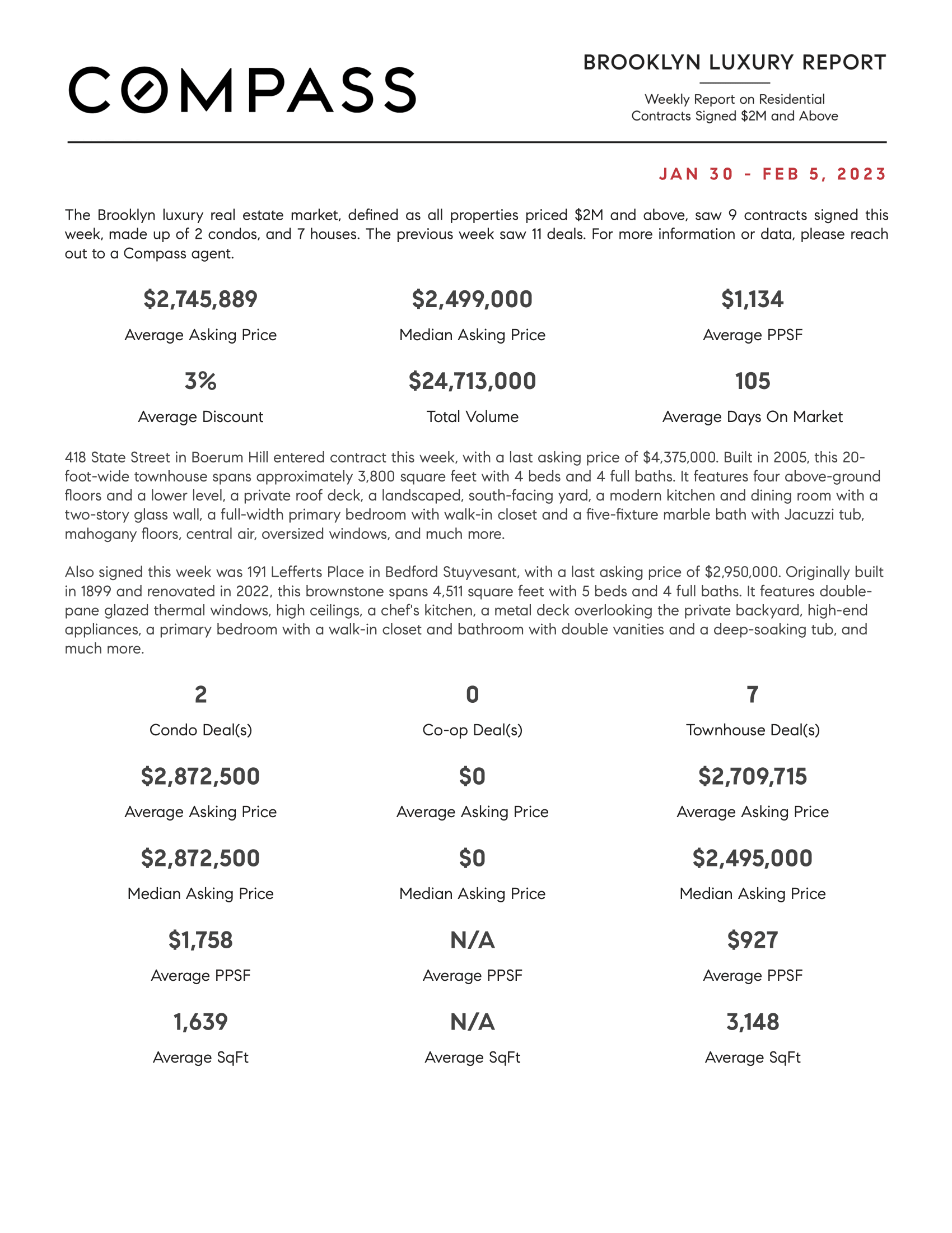 Brooklyn Luxury Report: January 30- February 5, 2023