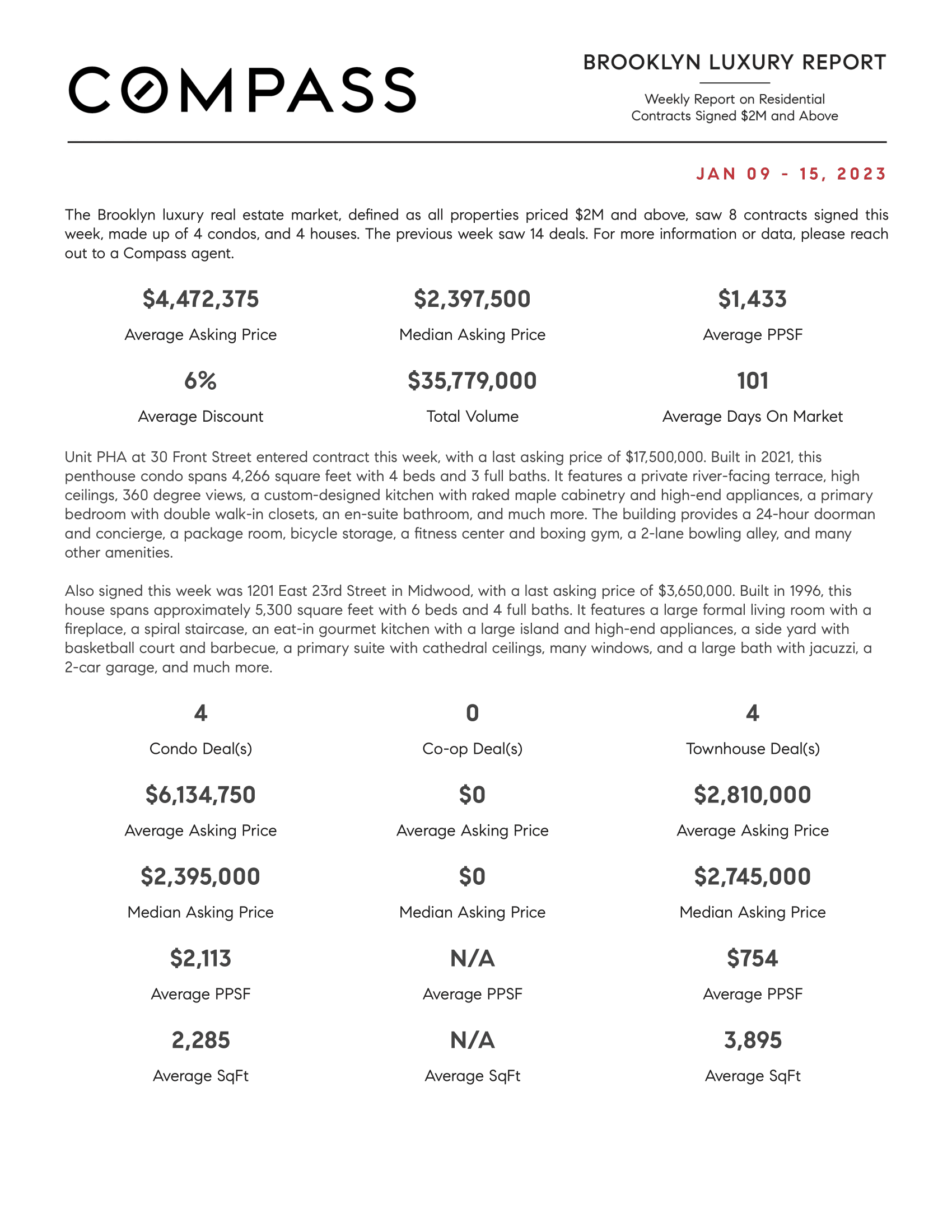 Brooklyn Luxury Report: January 9 - January 15, 2023
