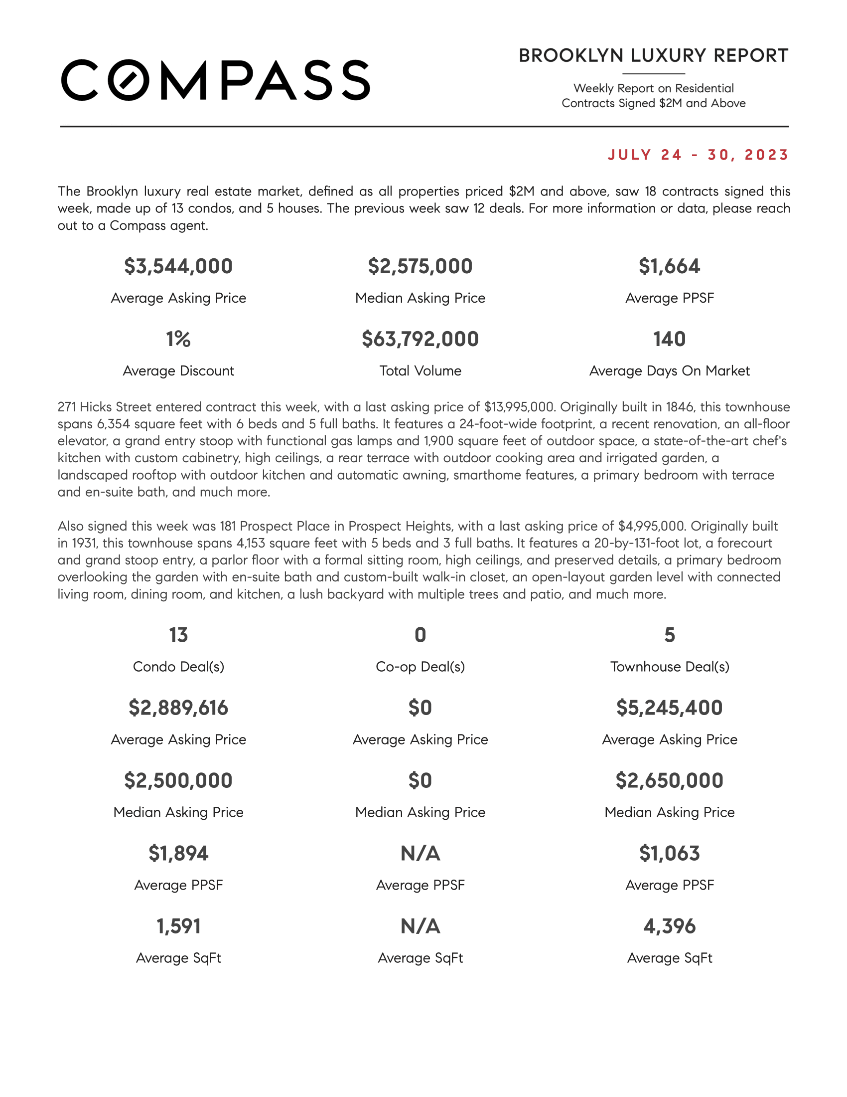 Brooklyn Luxury Report: July 24 - July 30, 2023