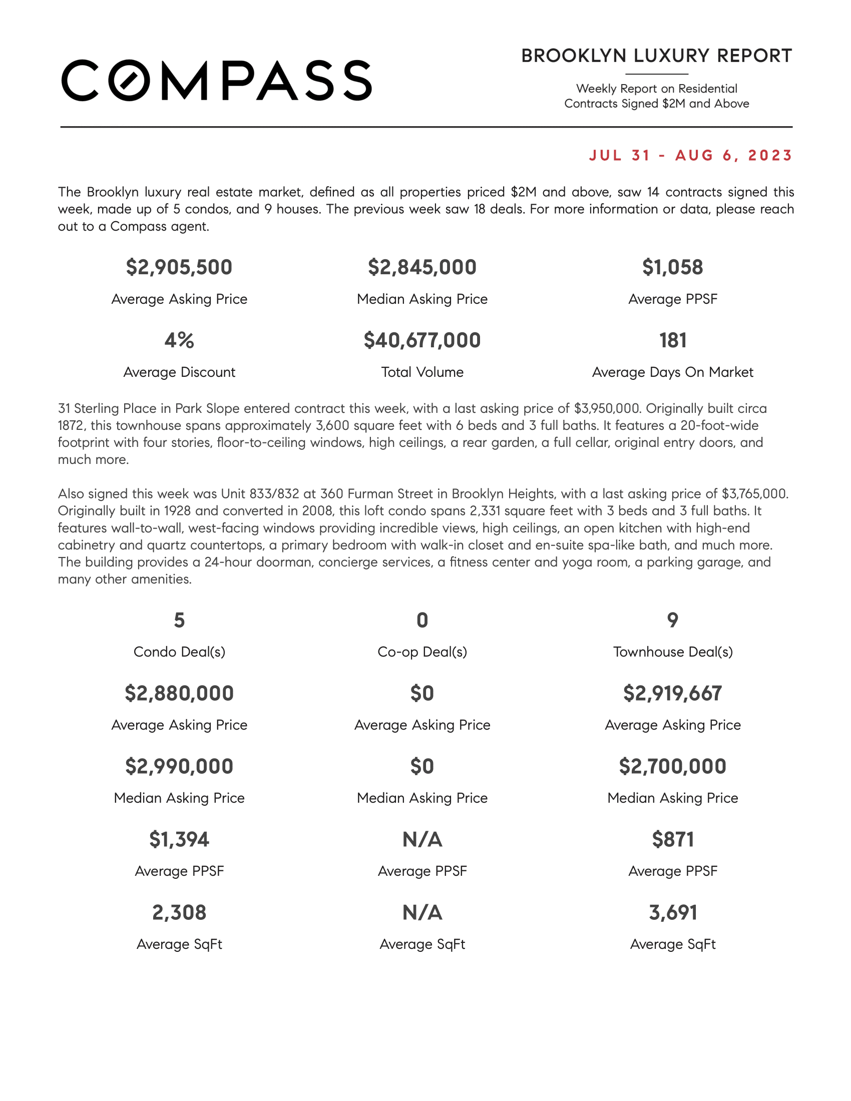 Brooklyn Luxury Report: July 31 - August 6, 2023