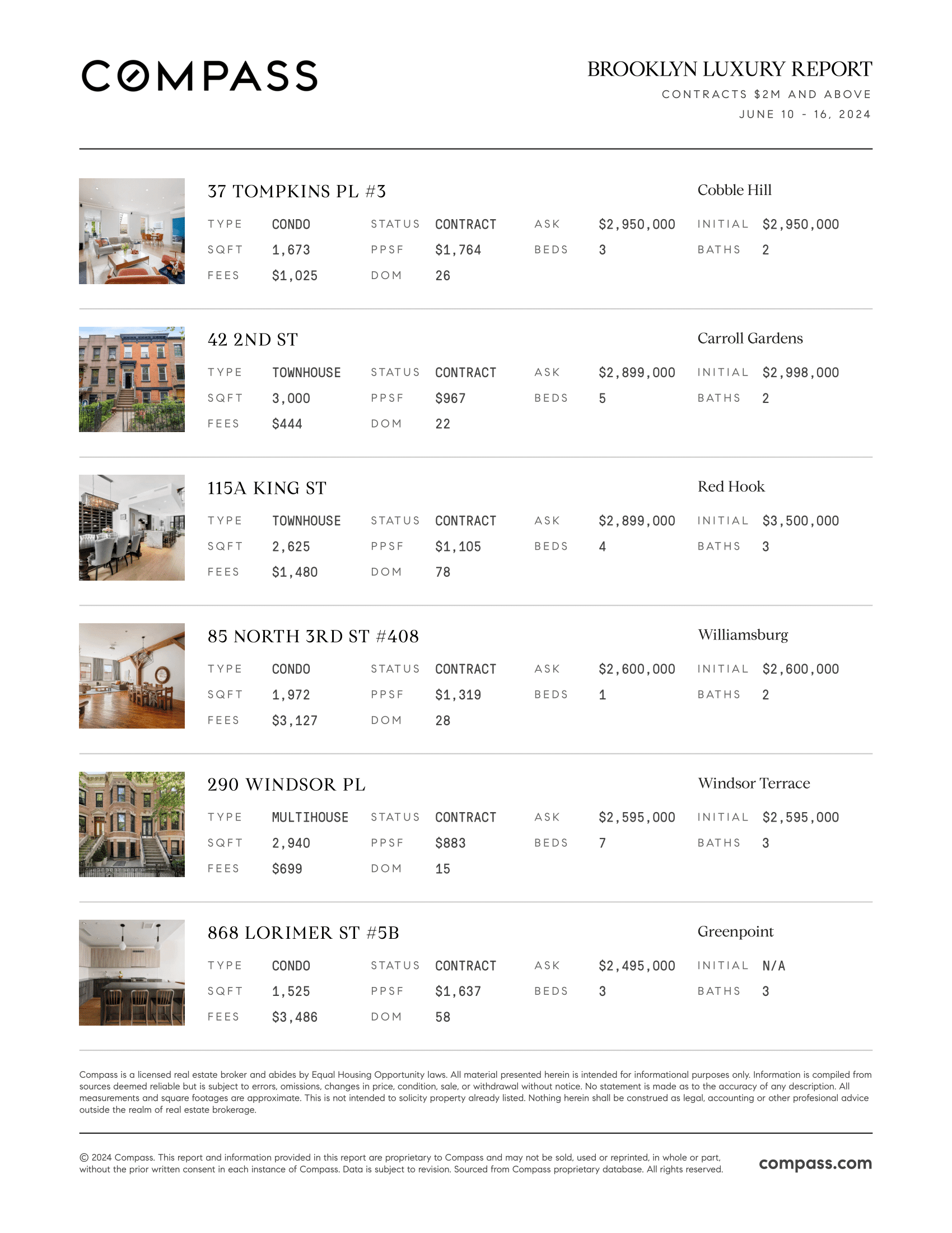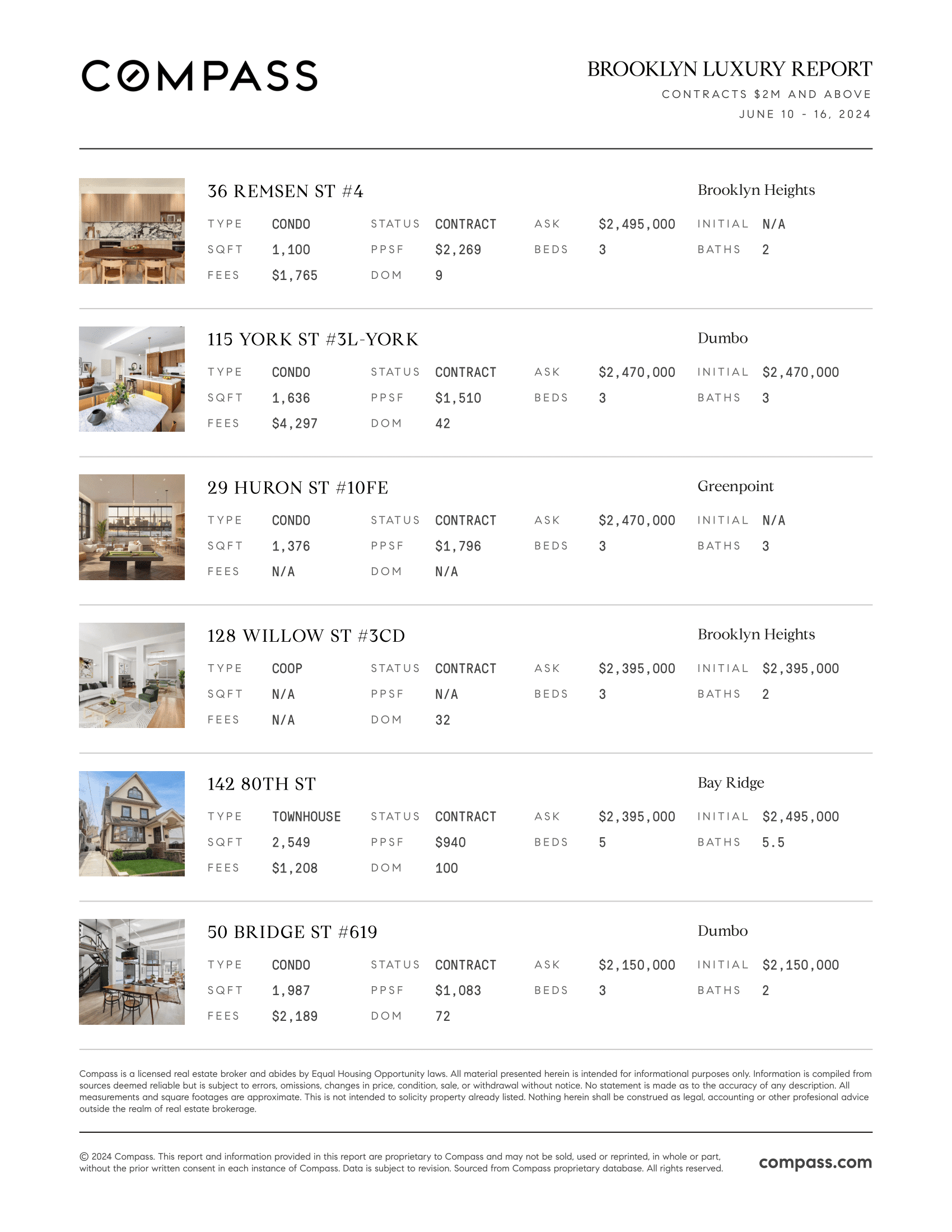 Brooklyn Luxury Report: June 10, 2024 - June 16, 2024