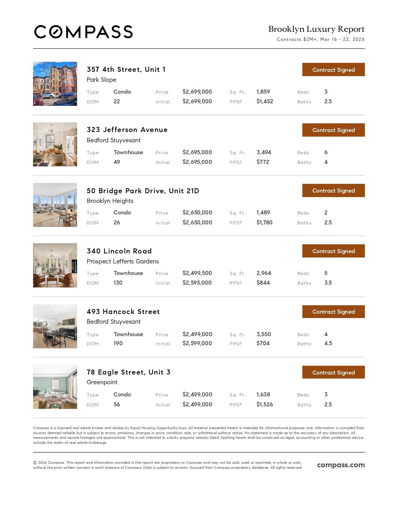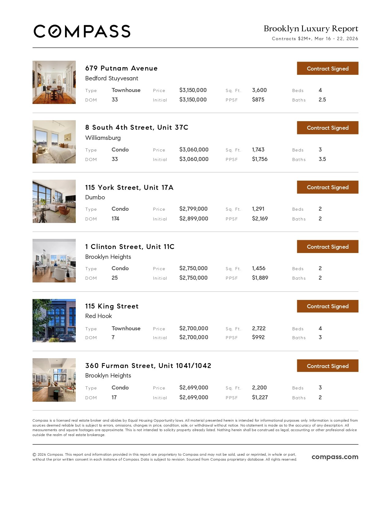 Brooklyn Luxury Report: March 16, 2026 - March 22, 2026