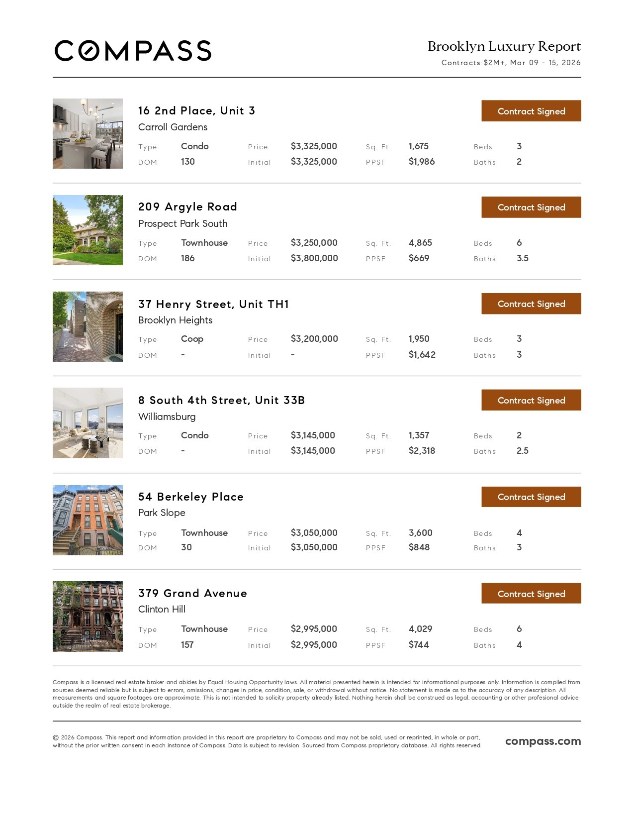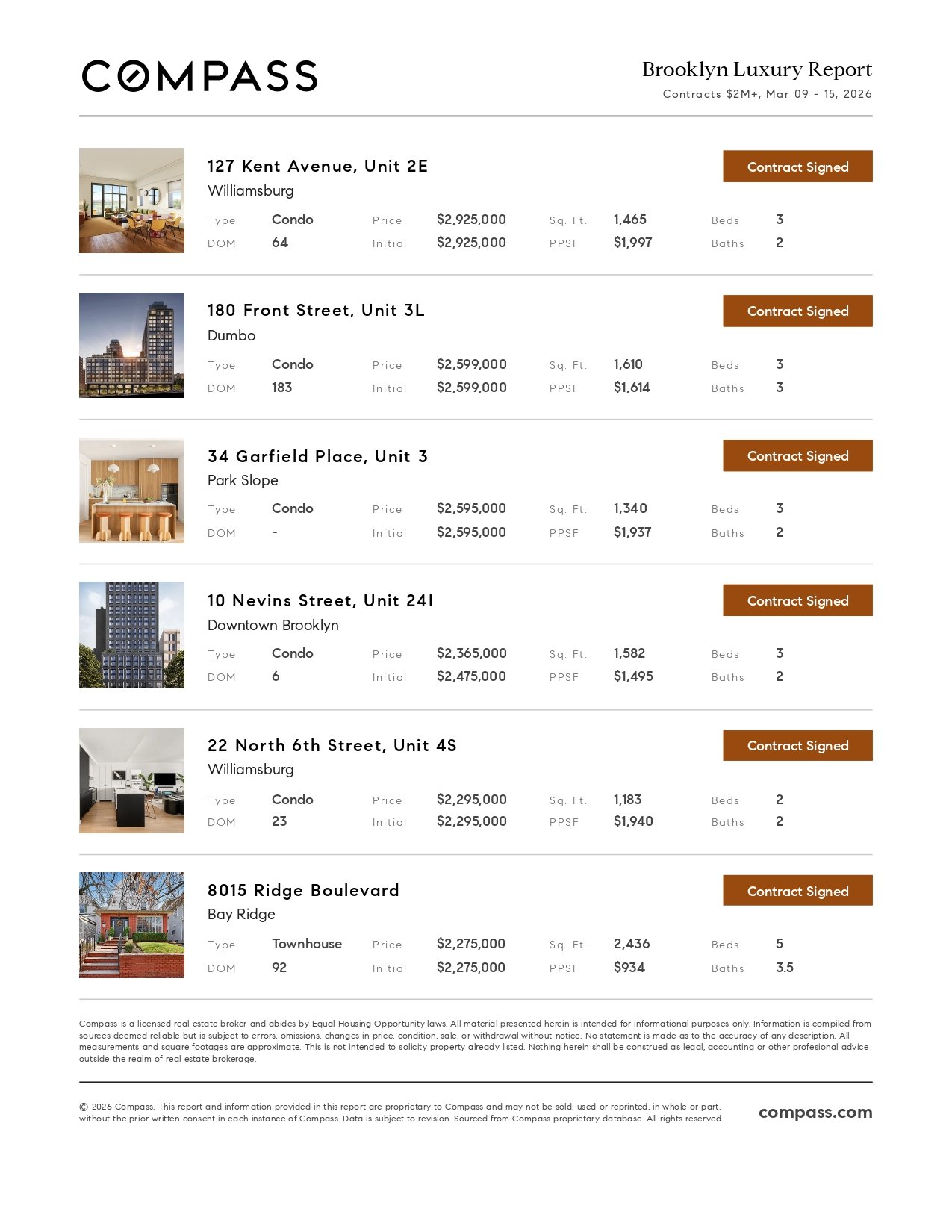 Brooklyn Luxury Report: March 9, 2026 - March 15, 2026