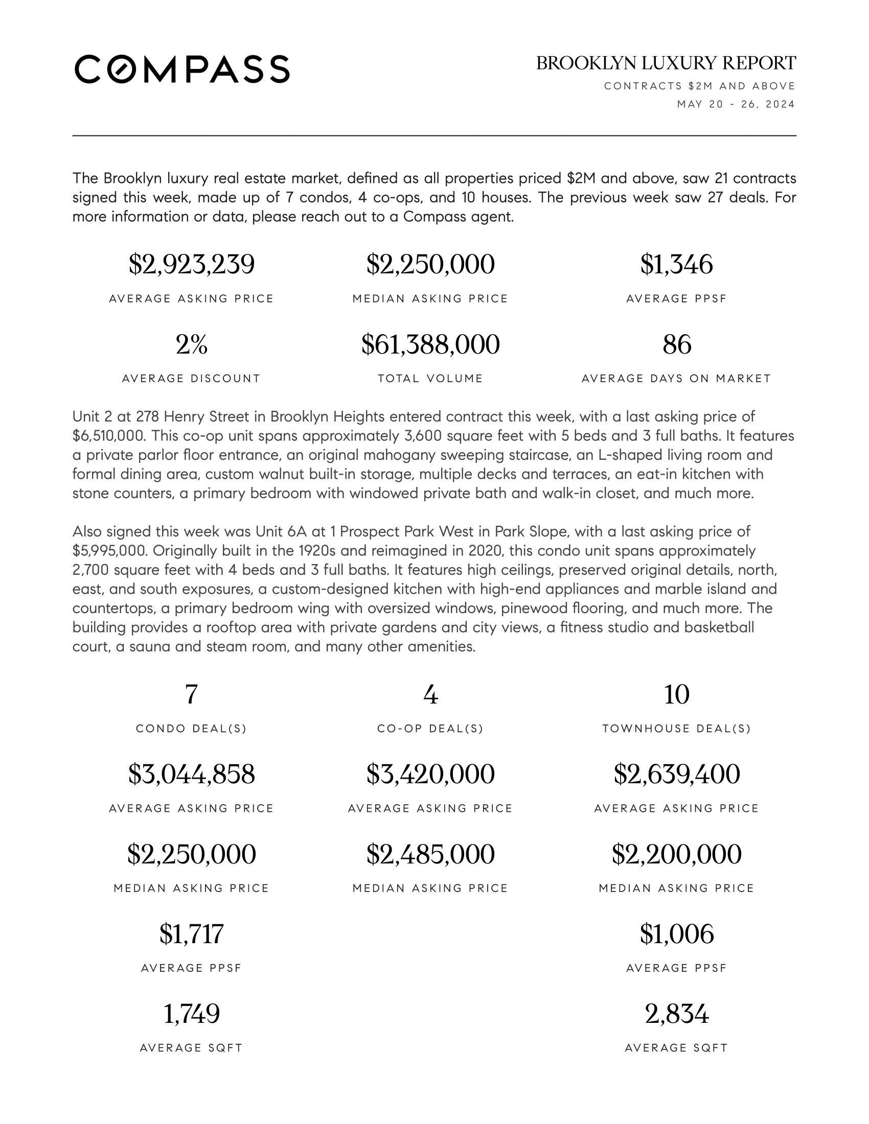 Brooklyn Luxury Report: May 20, 2024 - May 26, 2024
