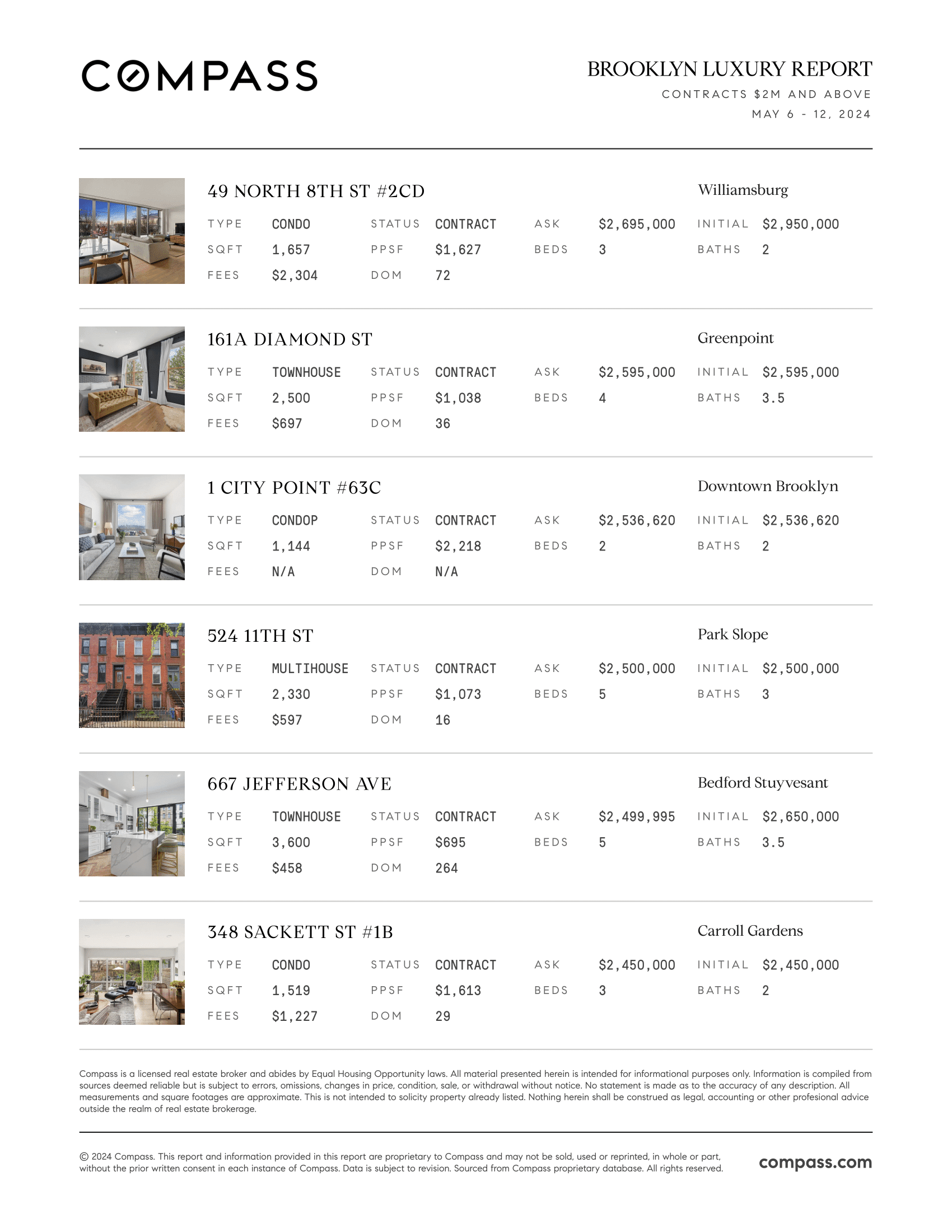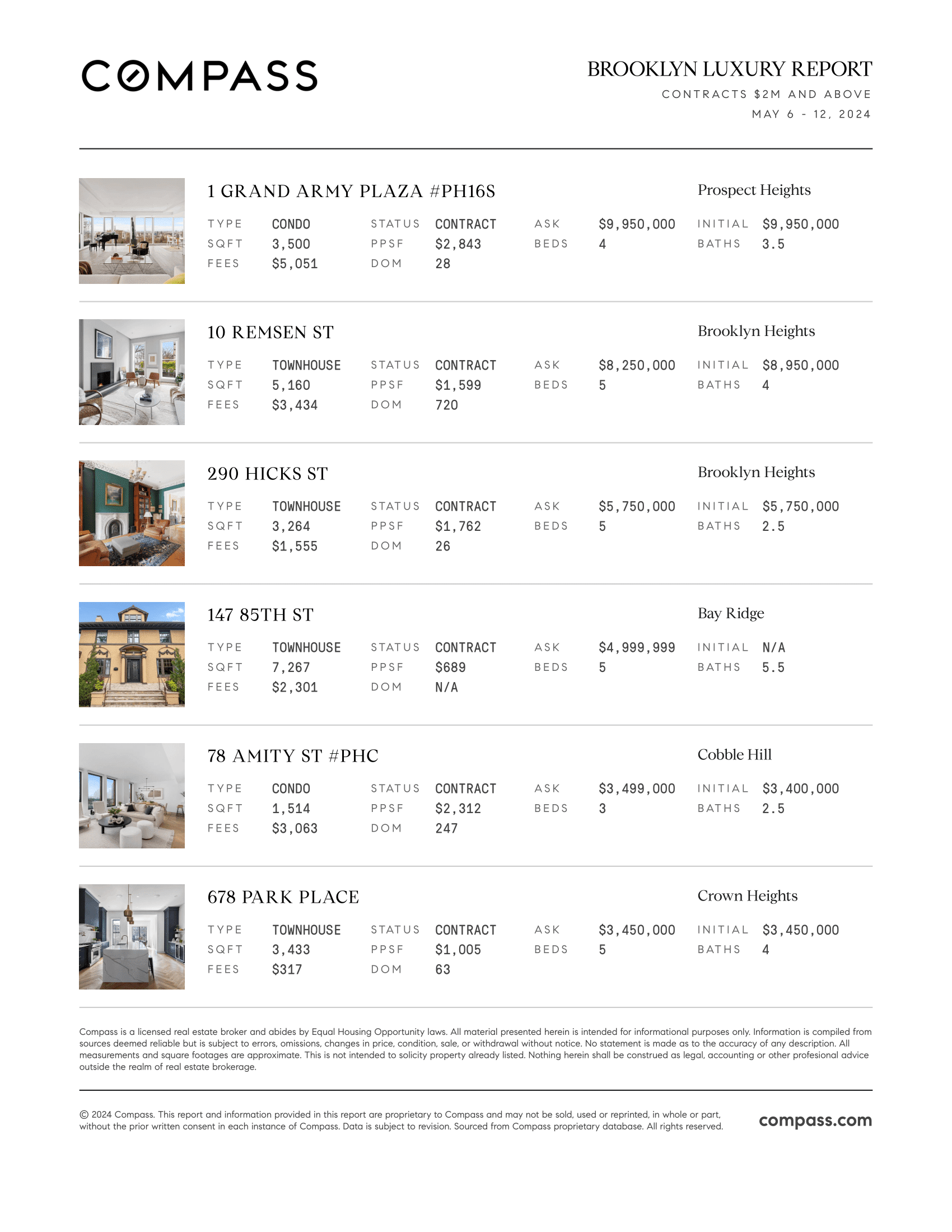 Brooklyn Luxury Report: May 6, 2024 - May 12, 2024