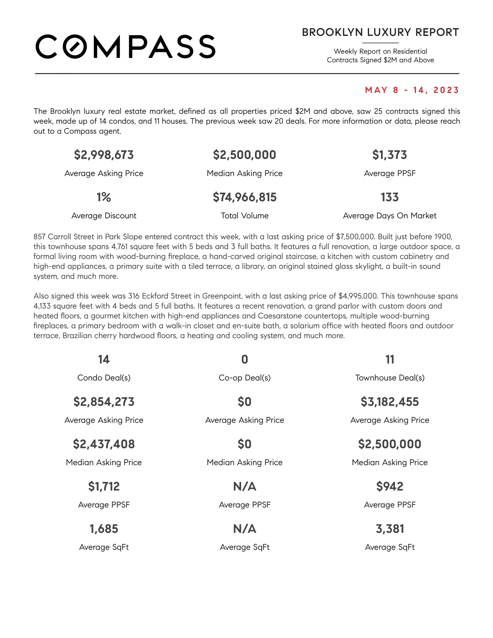 Brooklyn Luxury Report: May 8 - May 14, 2023