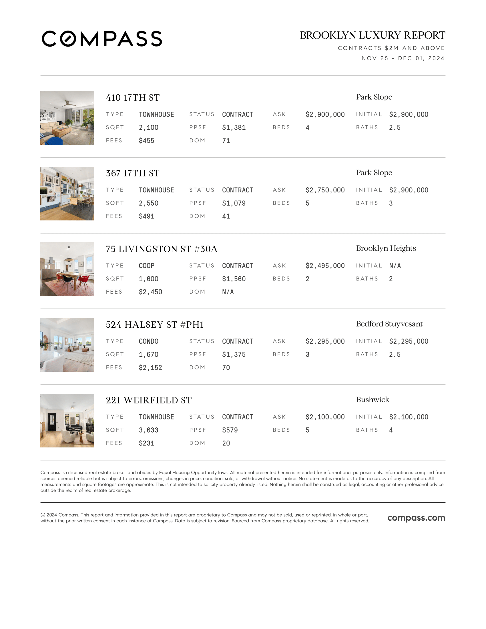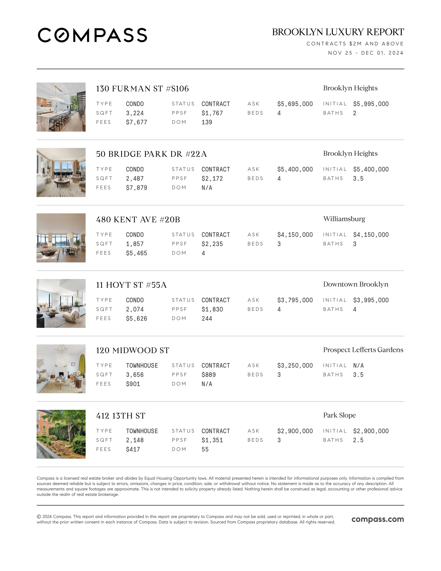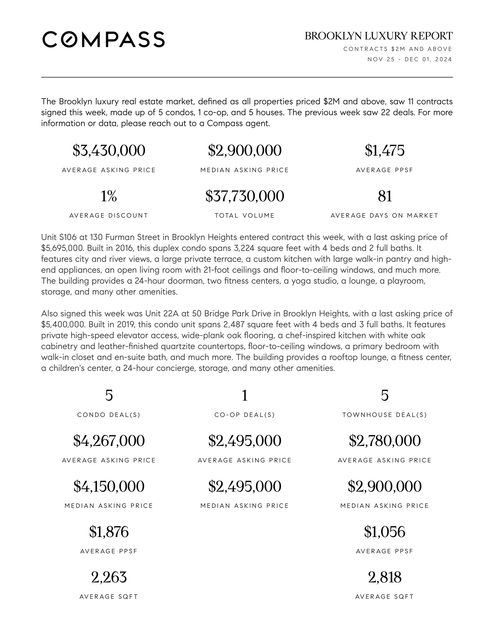 Brooklyn Luxury Report: November 25, 2024- December 1, 2024