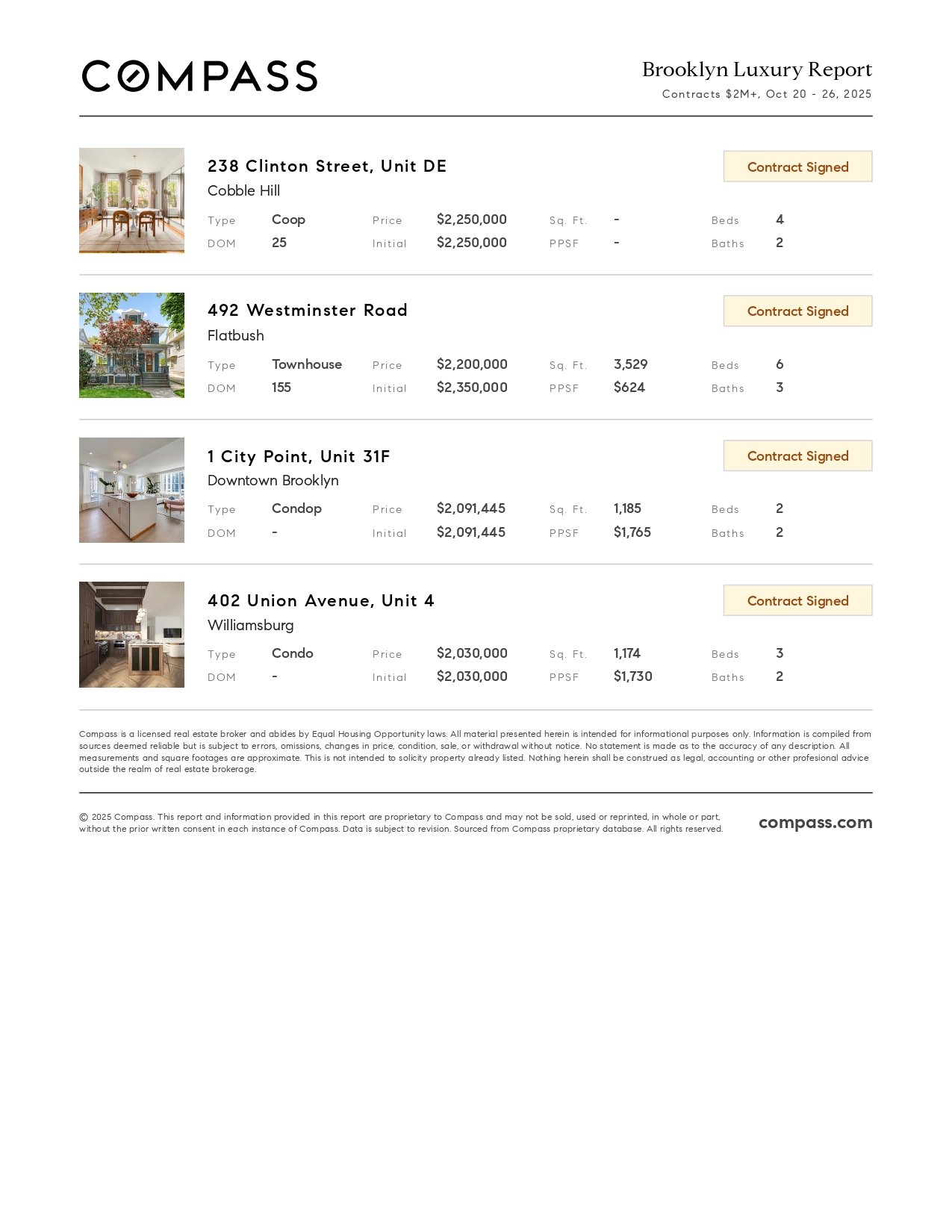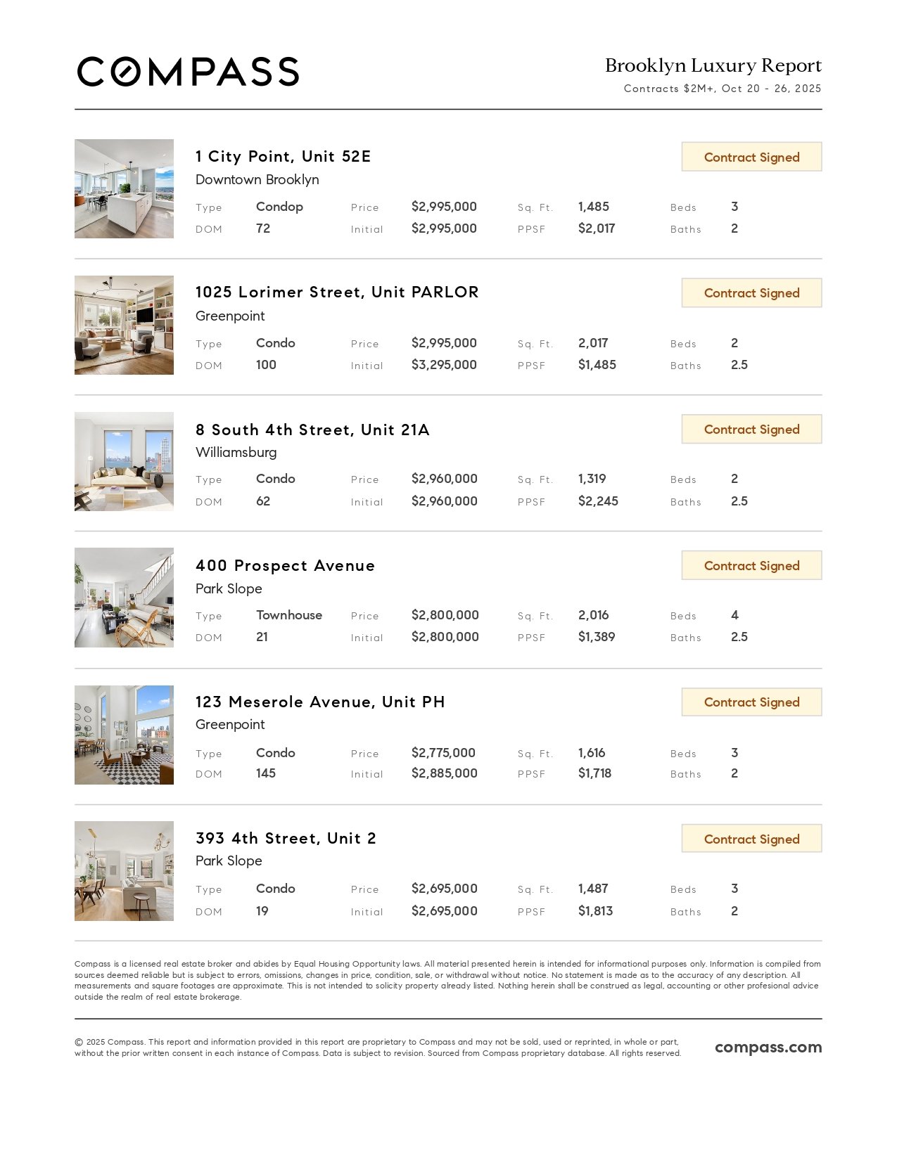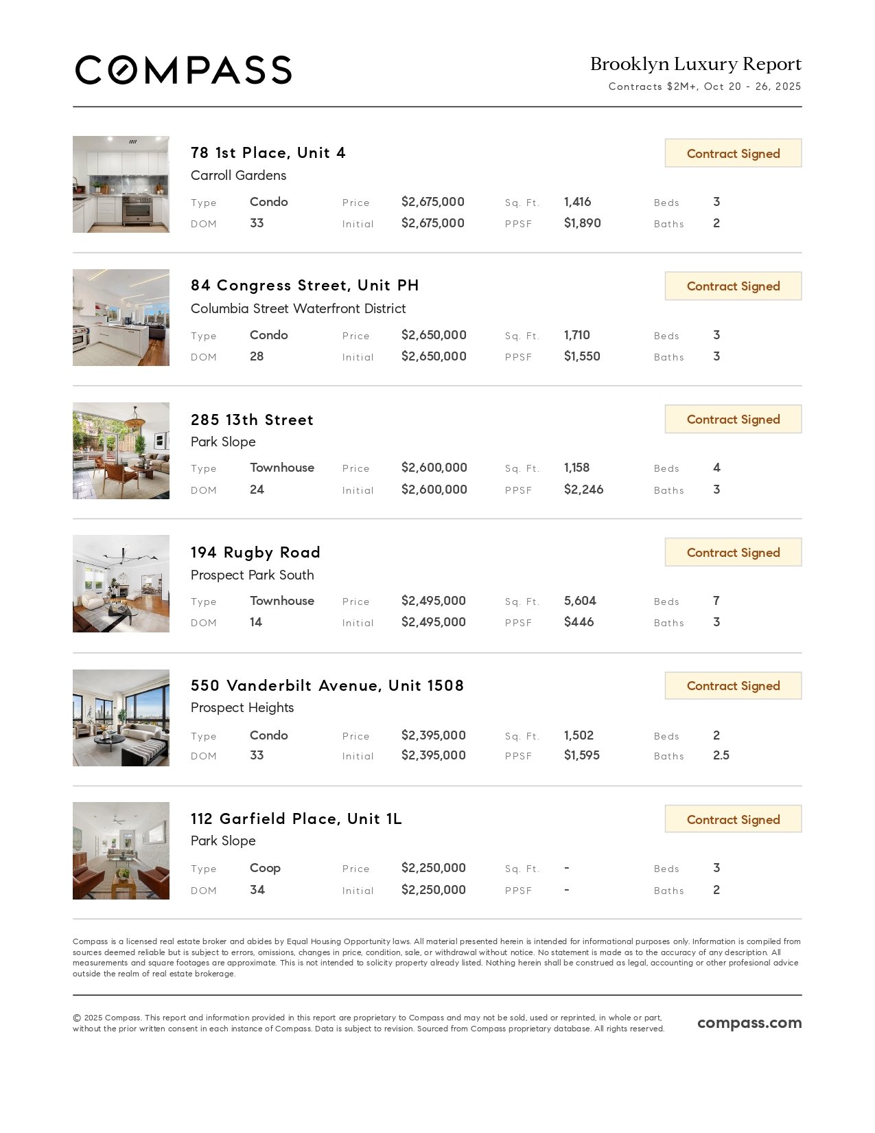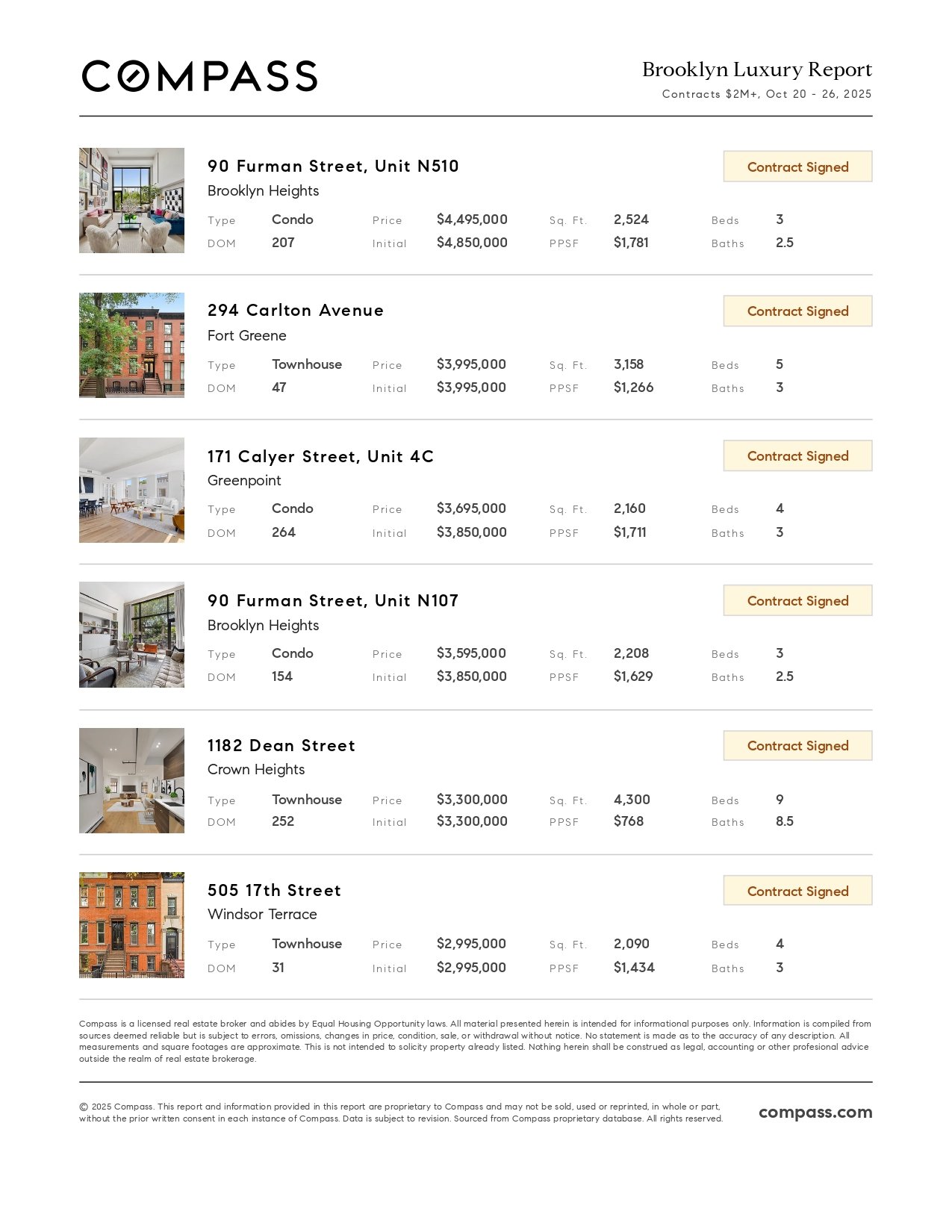 Brooklyn Luxury Report: October 20, 2025 - October 26, 2025