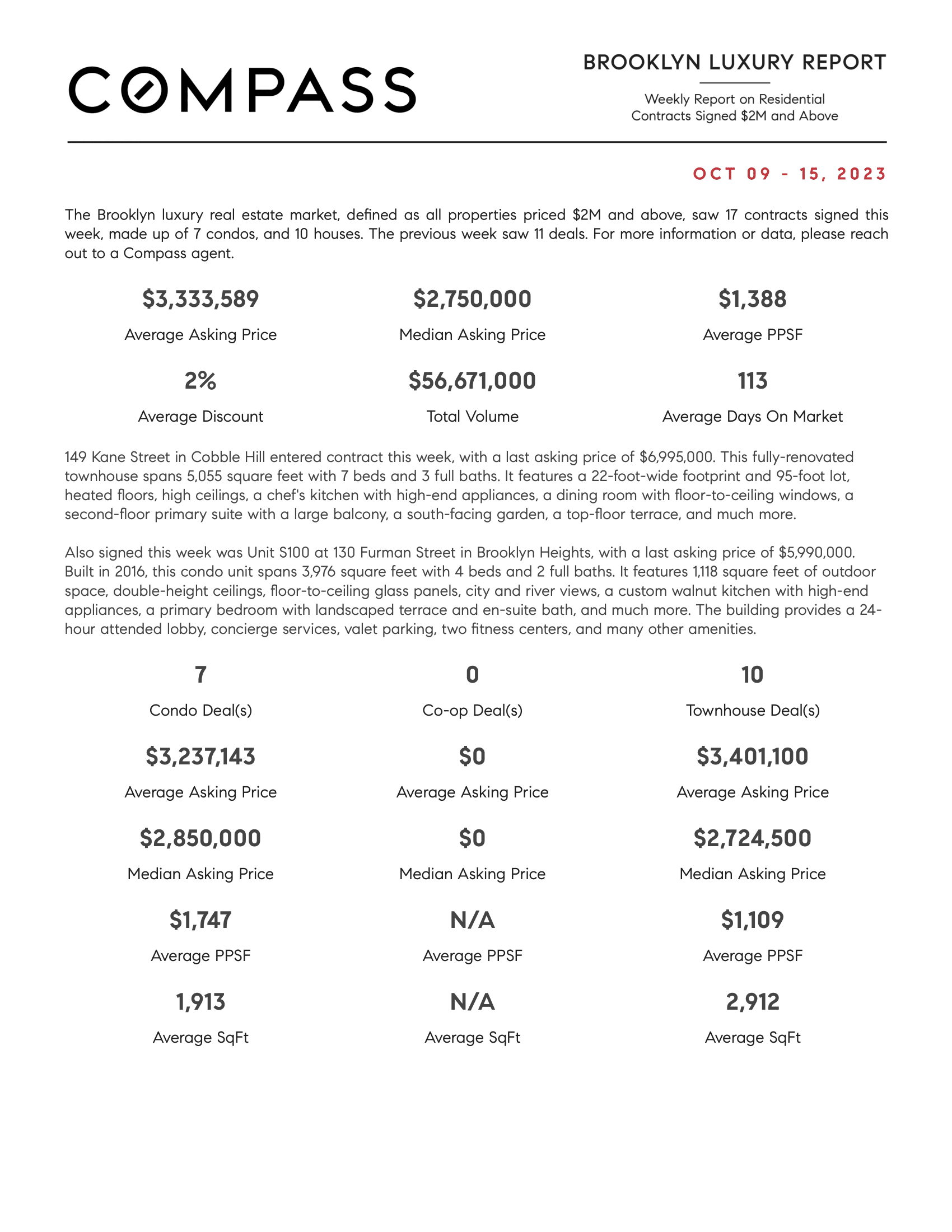 Brooklyn Luxury Report: October 9, 2023 - October 15, 2023
