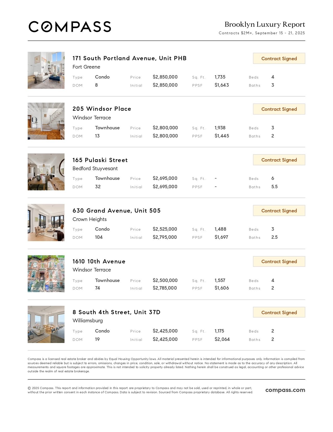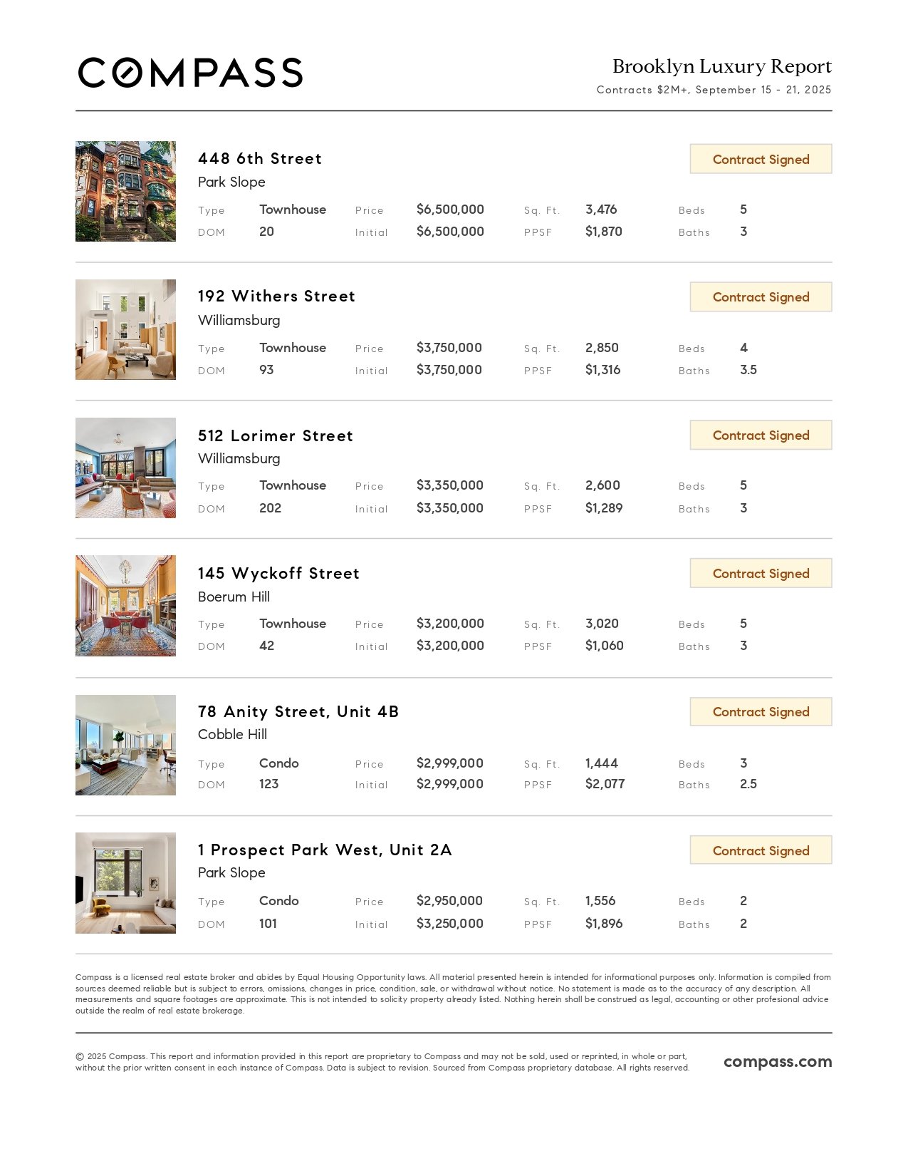 Brooklyn Luxury Report: September 15, 2025 - September 21, 2025
