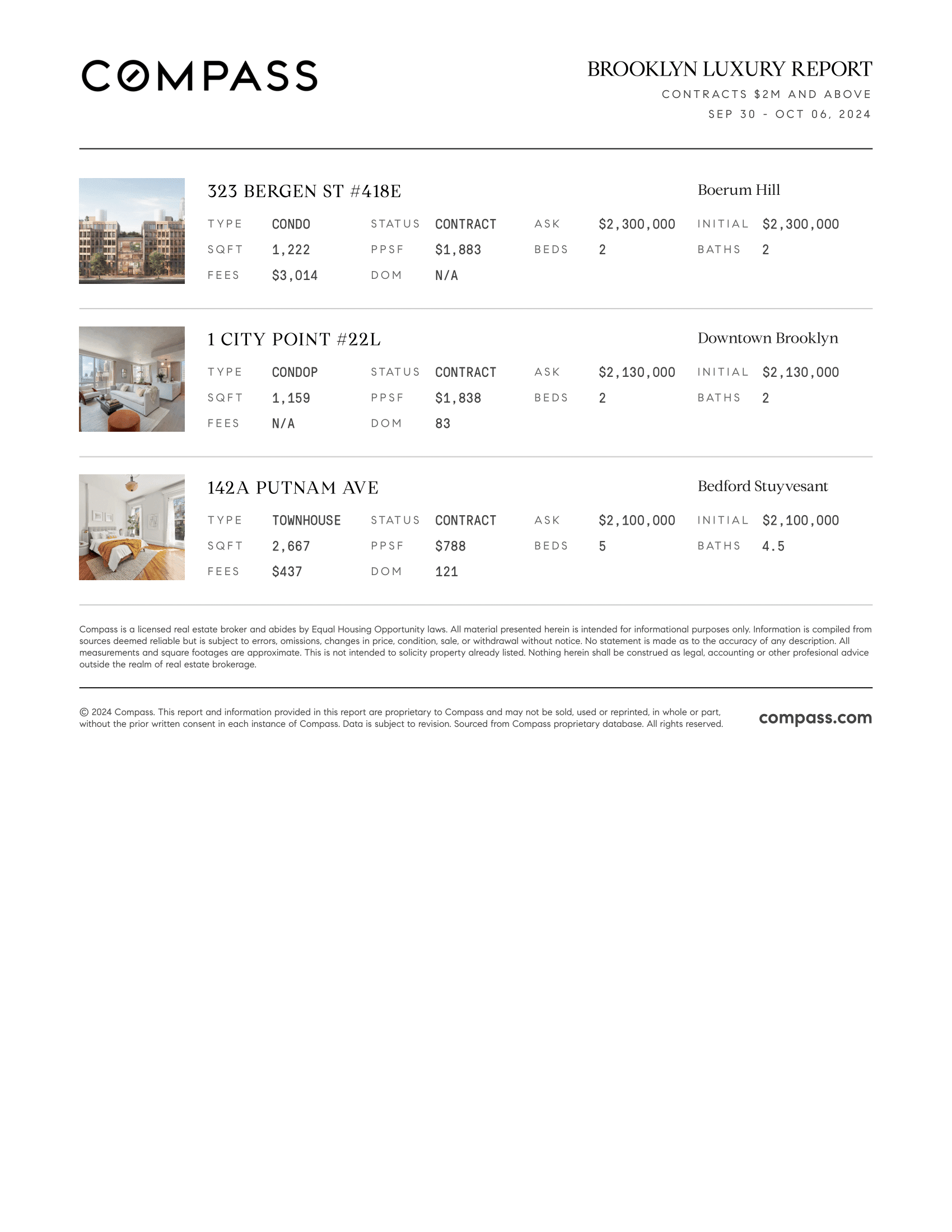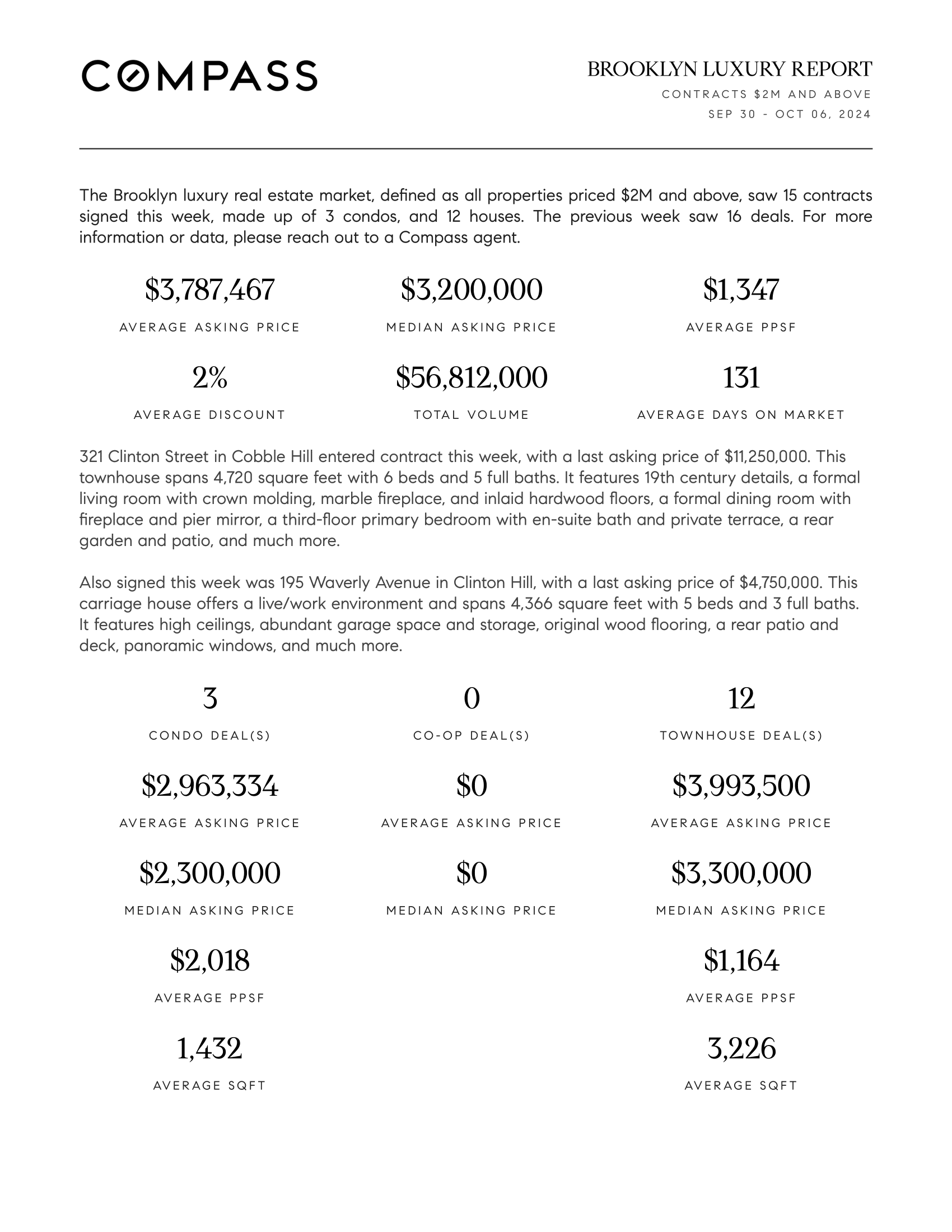 Brooklyn Luxury Report: September 30, 2024 - October 6, 2024