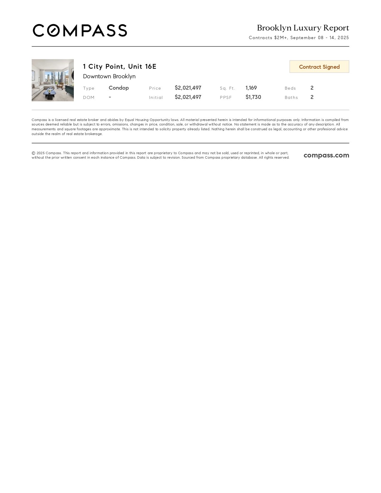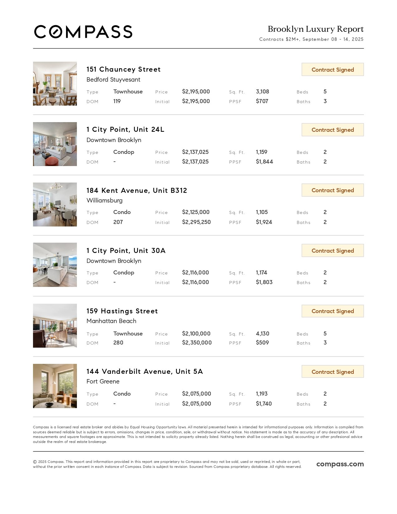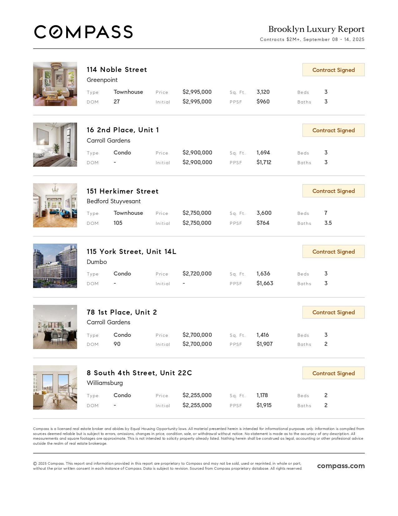 Brooklyn Luxury Report: September 8, 2025 - September 14, 2025