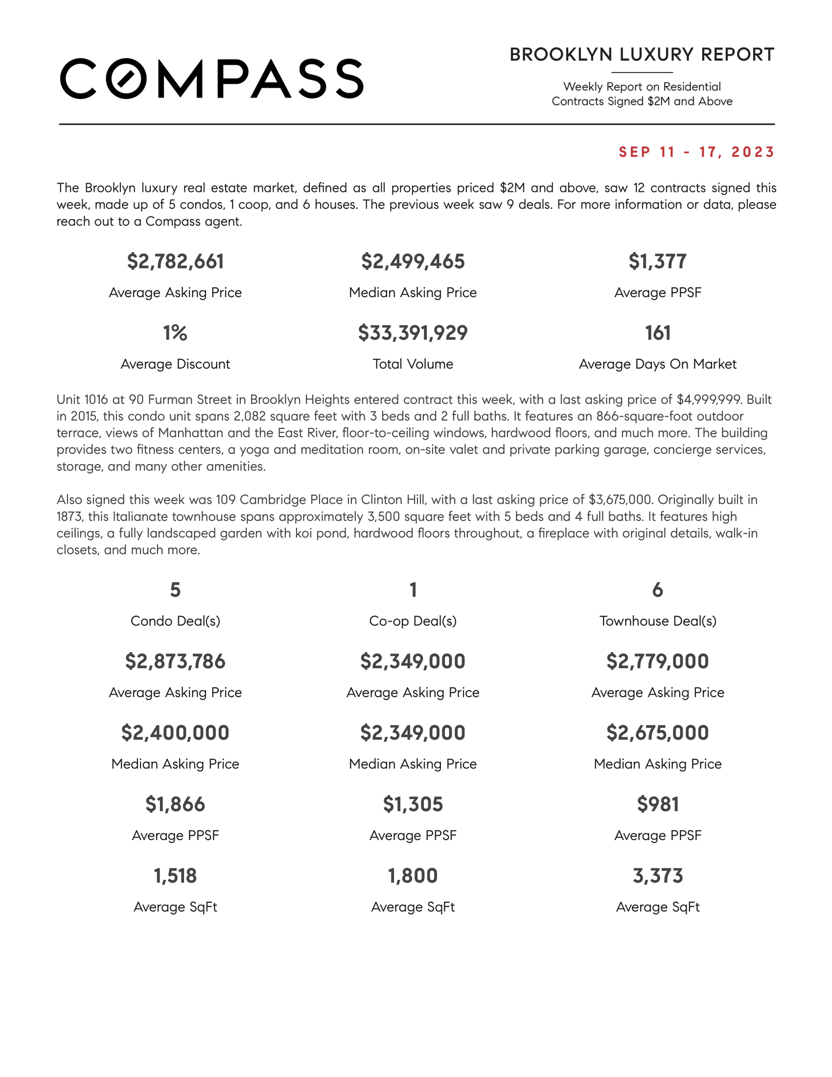 Brooklyn Luxury Report: September 11, 2023 - September 17, 2023