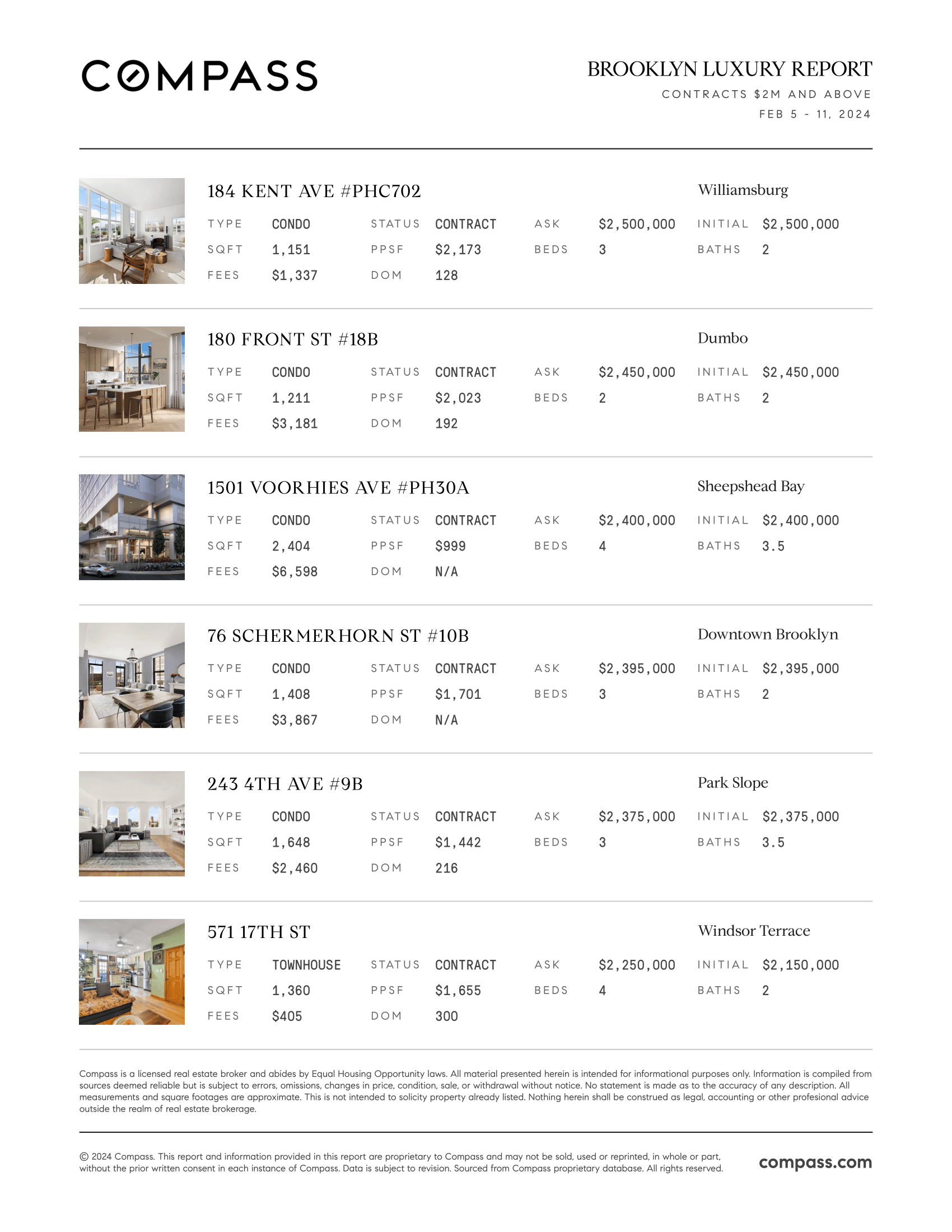 Brookyn Luxury Report: February 5, 2024 - February 11, 2024