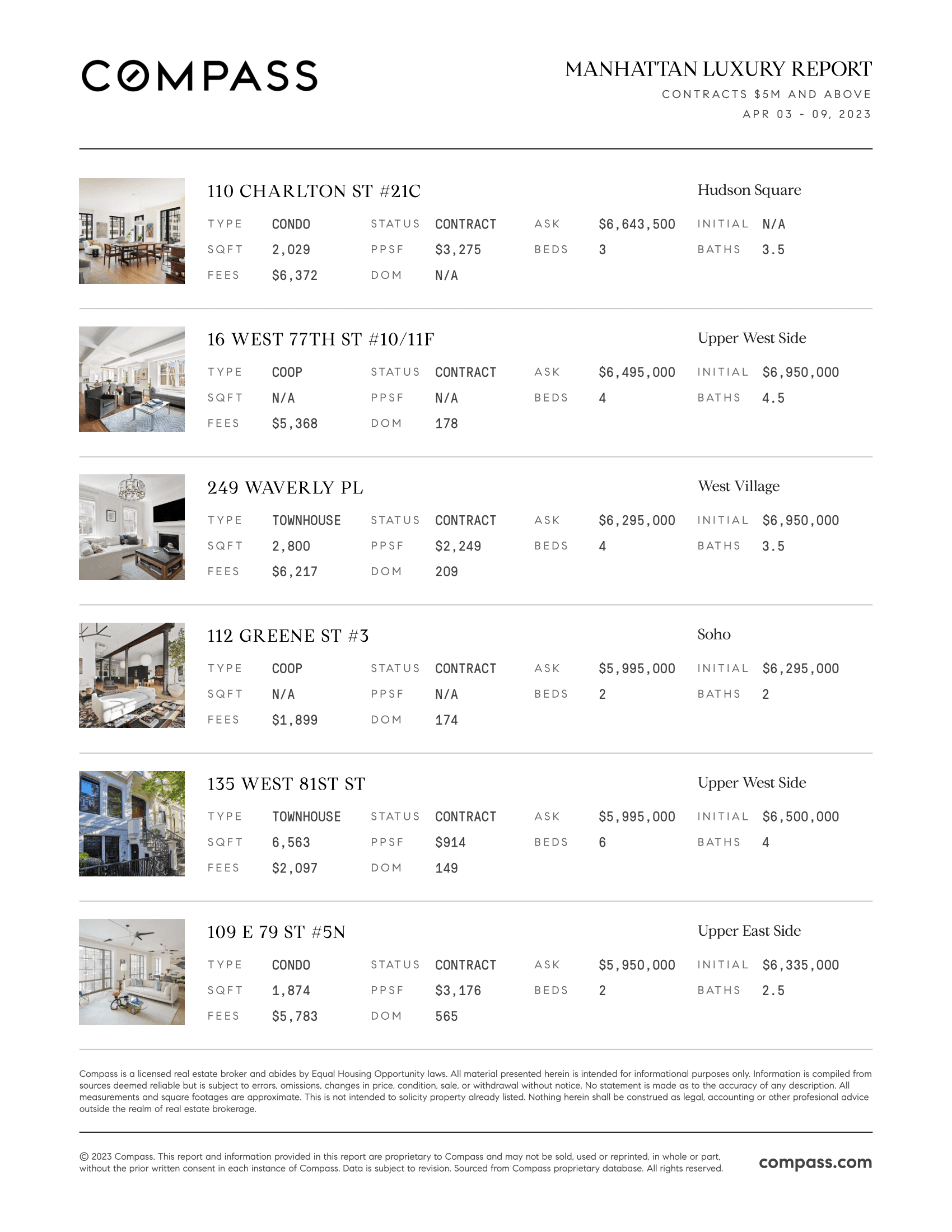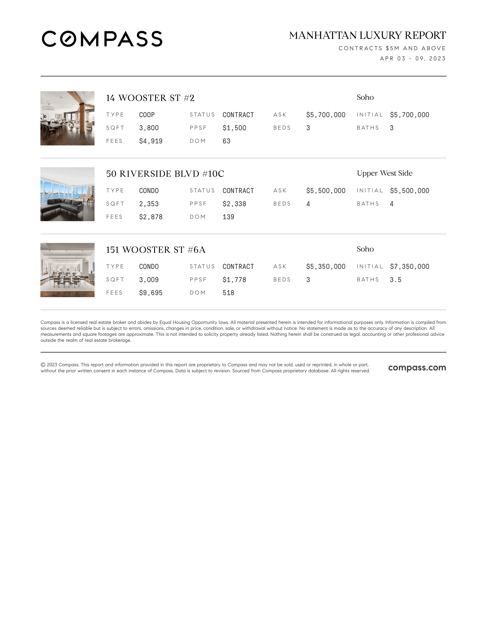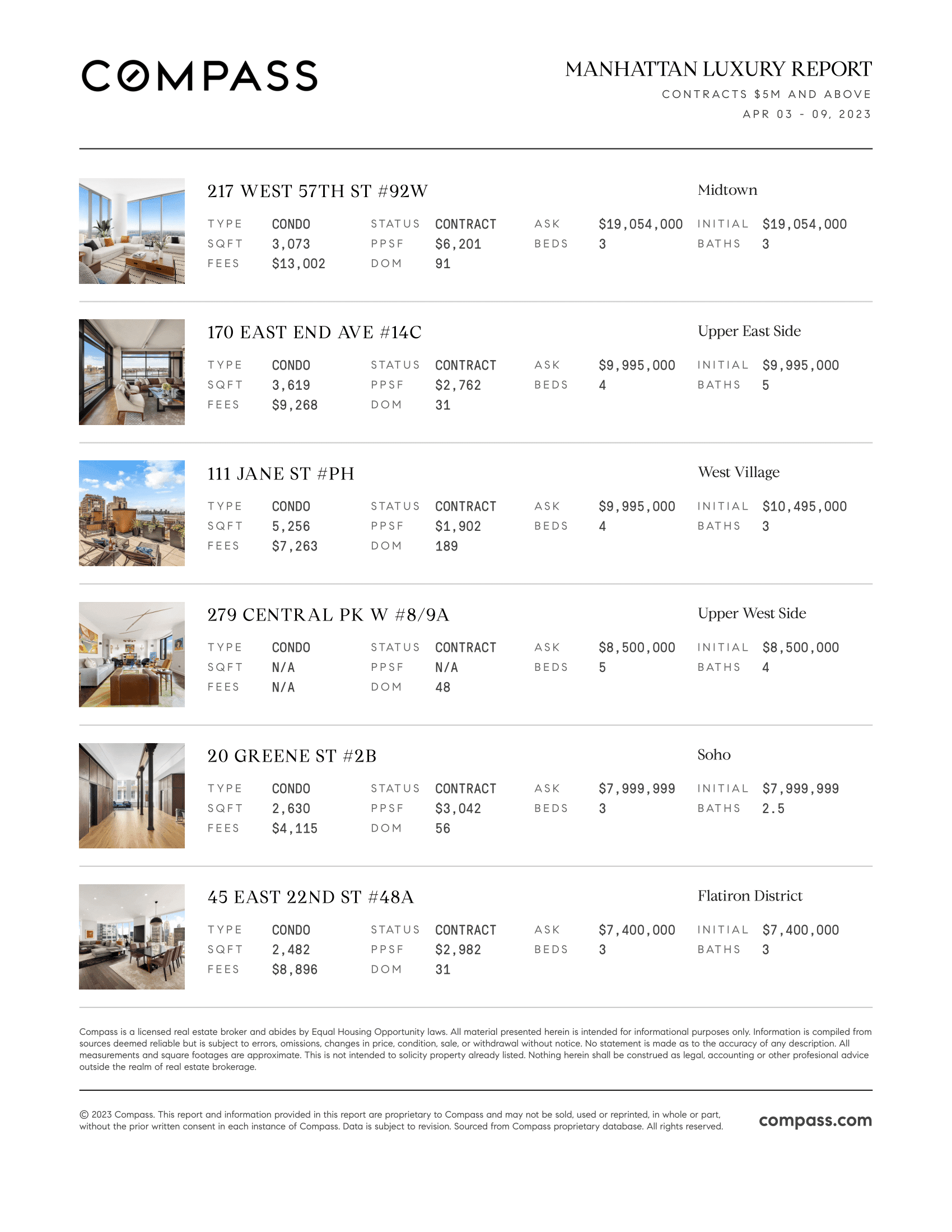 Manhattan Luxury Report: April 3 - April 9, 2023