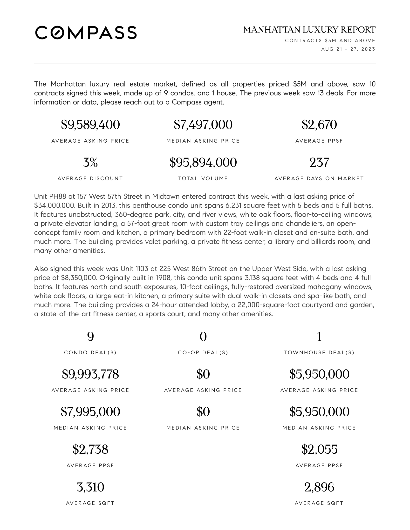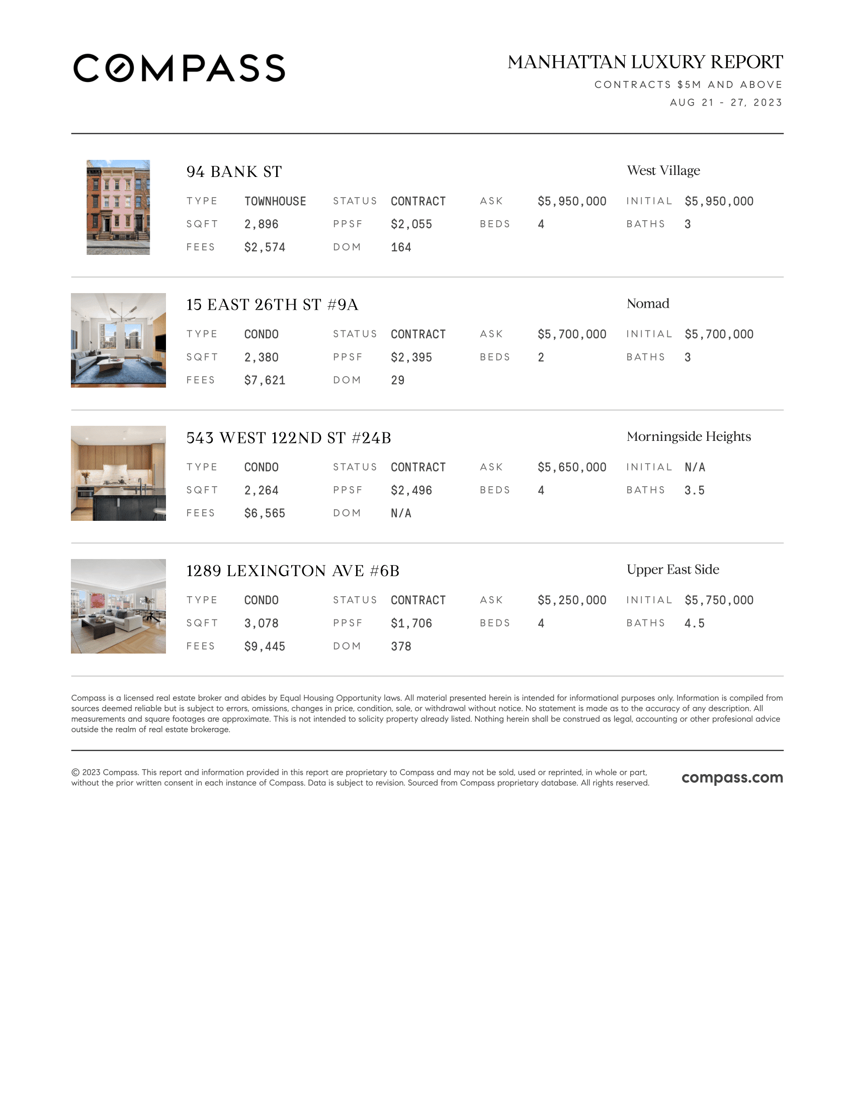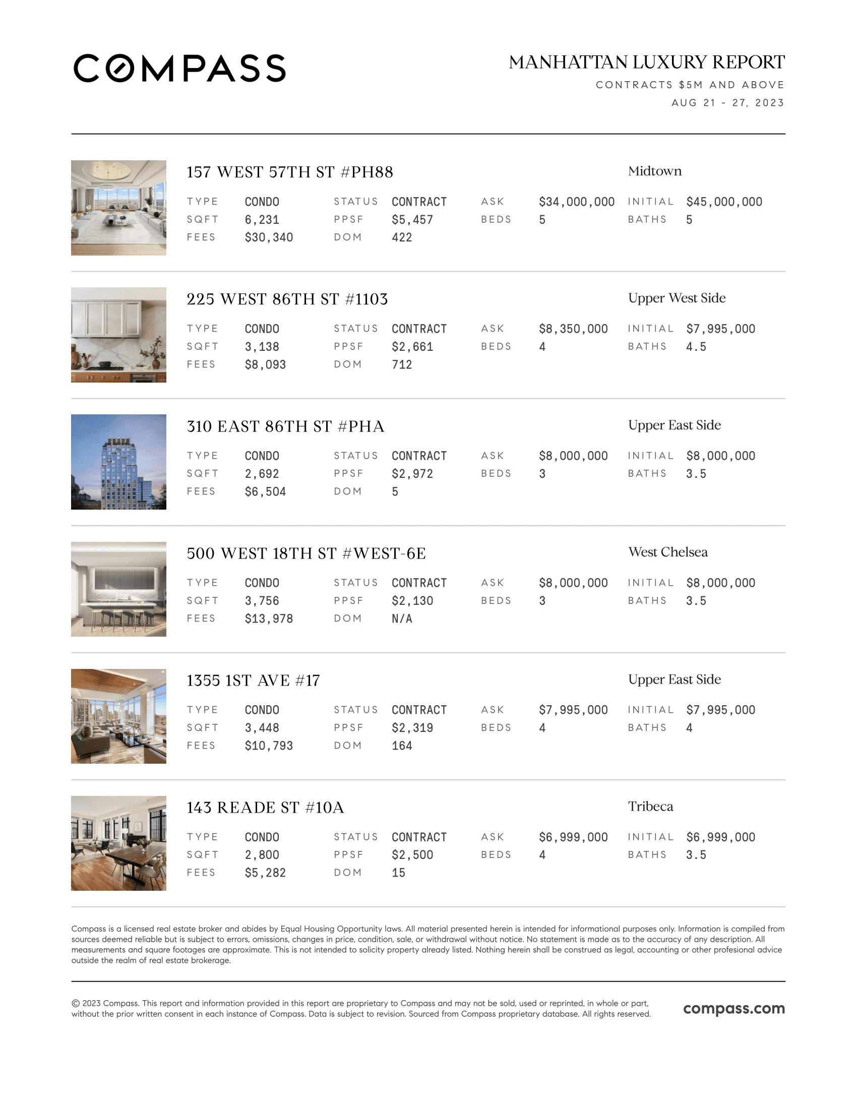 Manhattan Luxury Report: August 21, 2023- August 27, 2023
