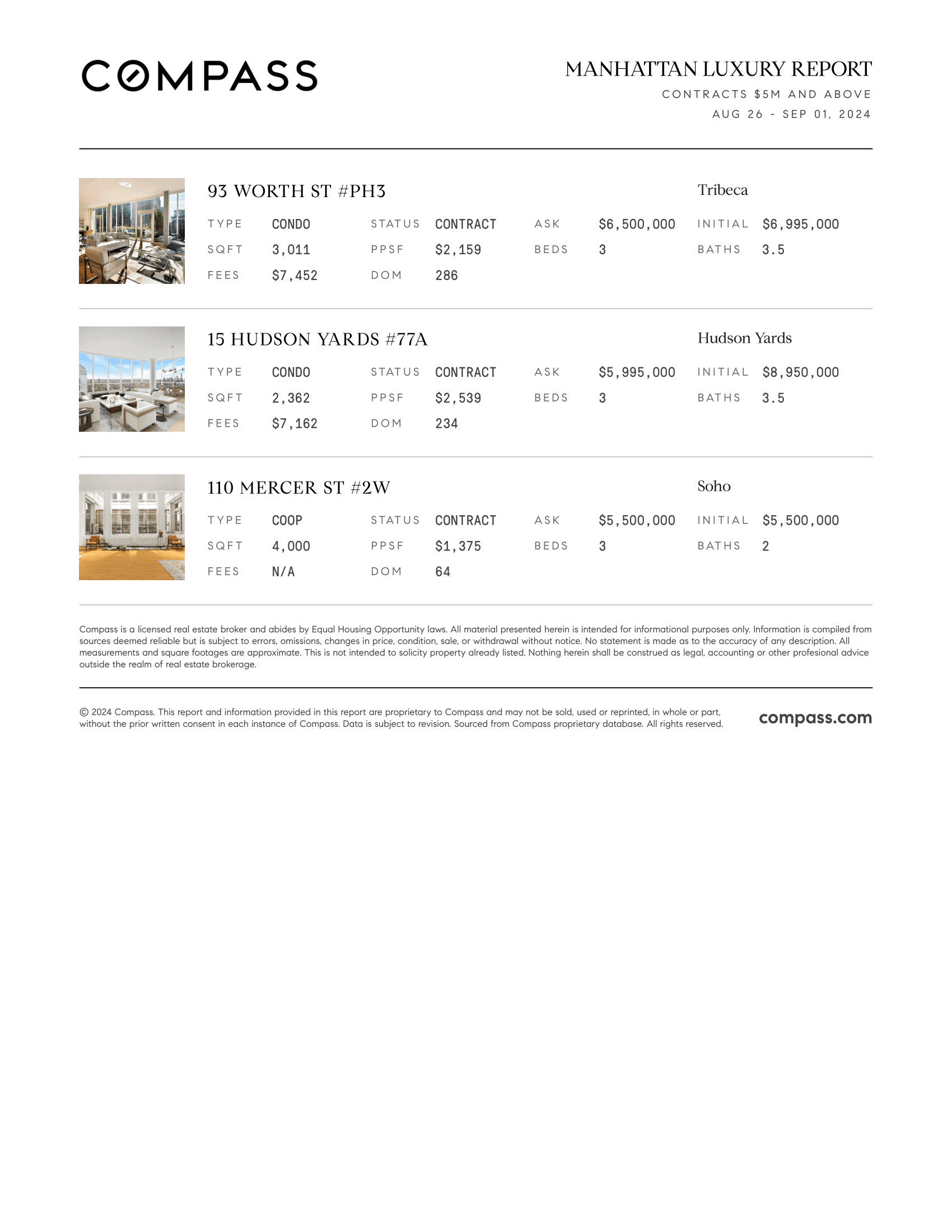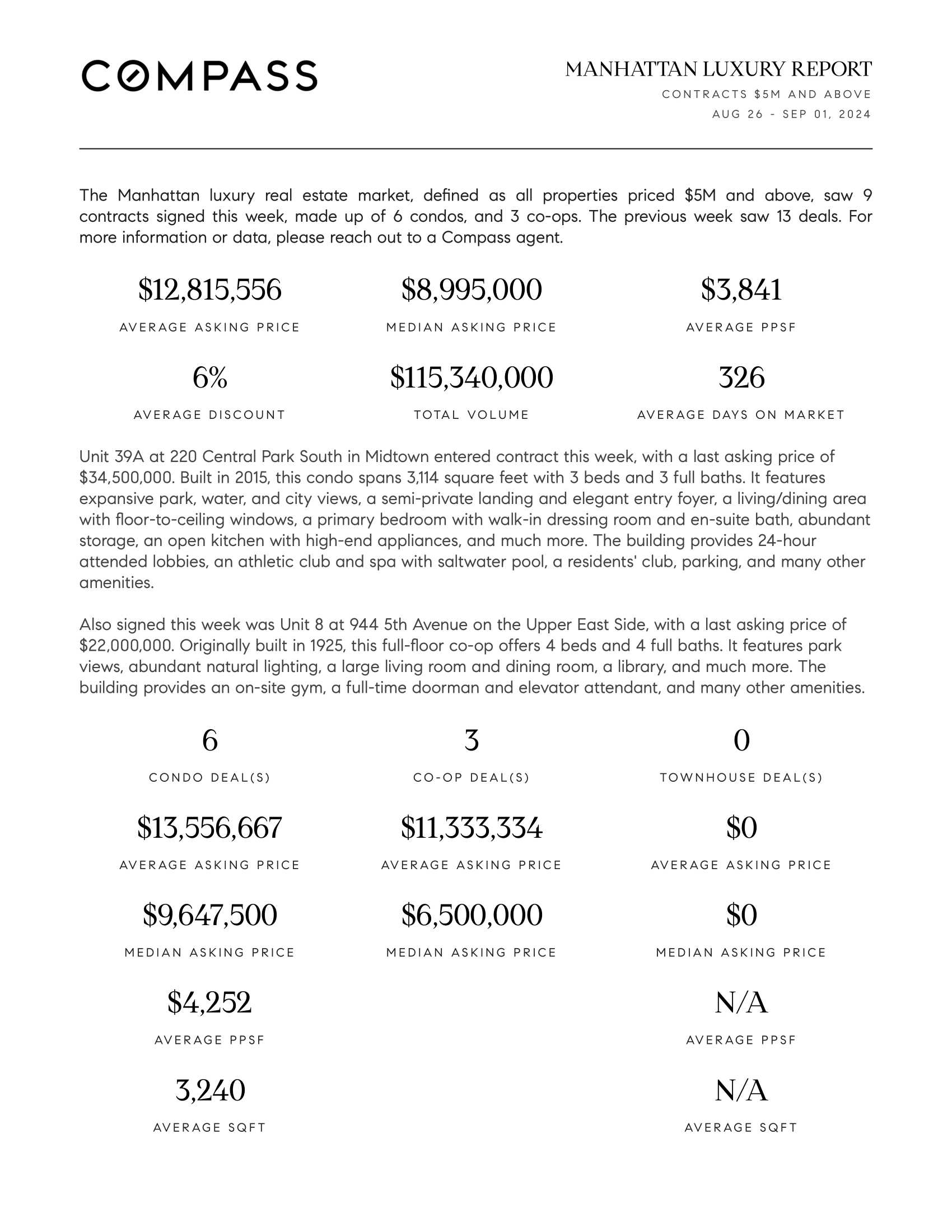 Manhattan Luxury Report: August 26, 2024 - September 1, 2024