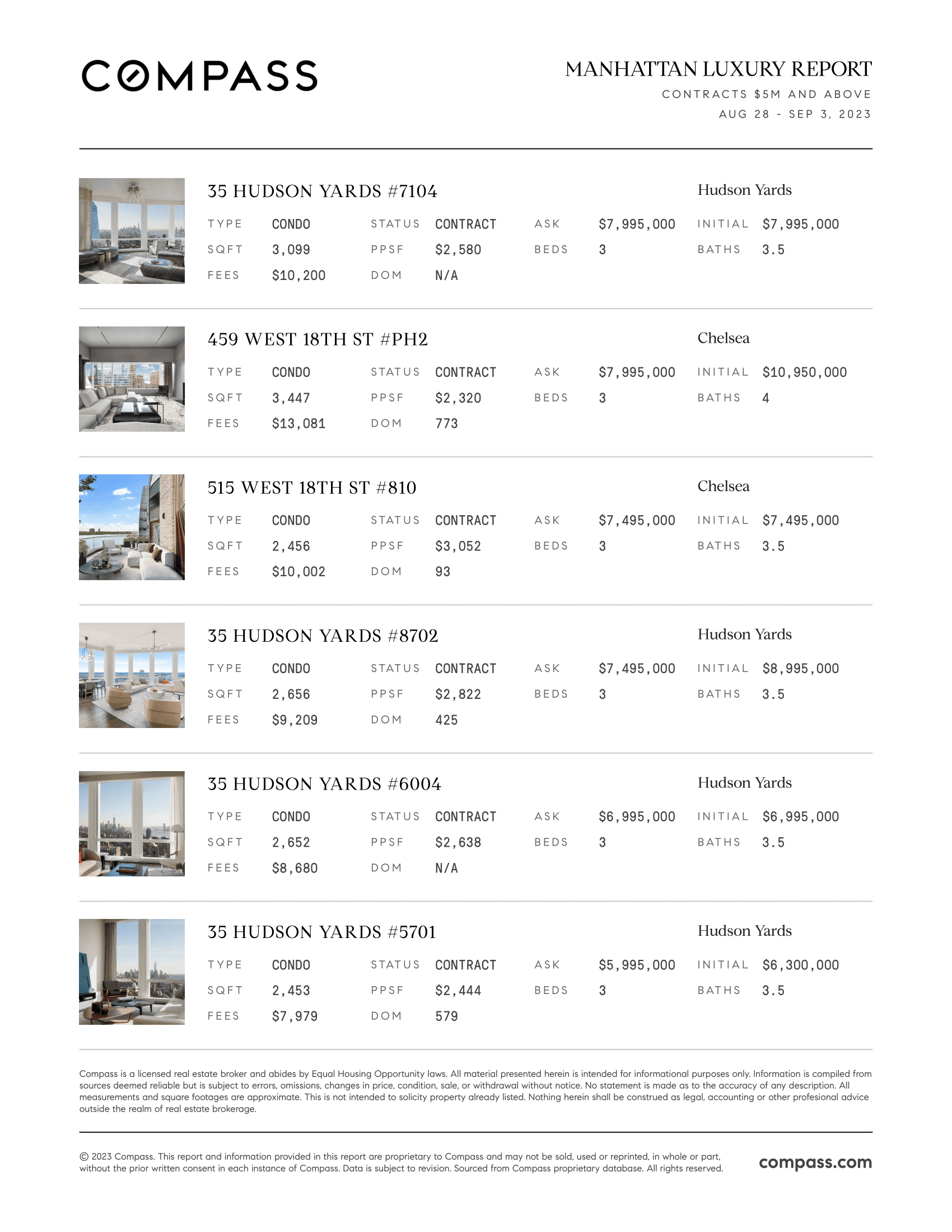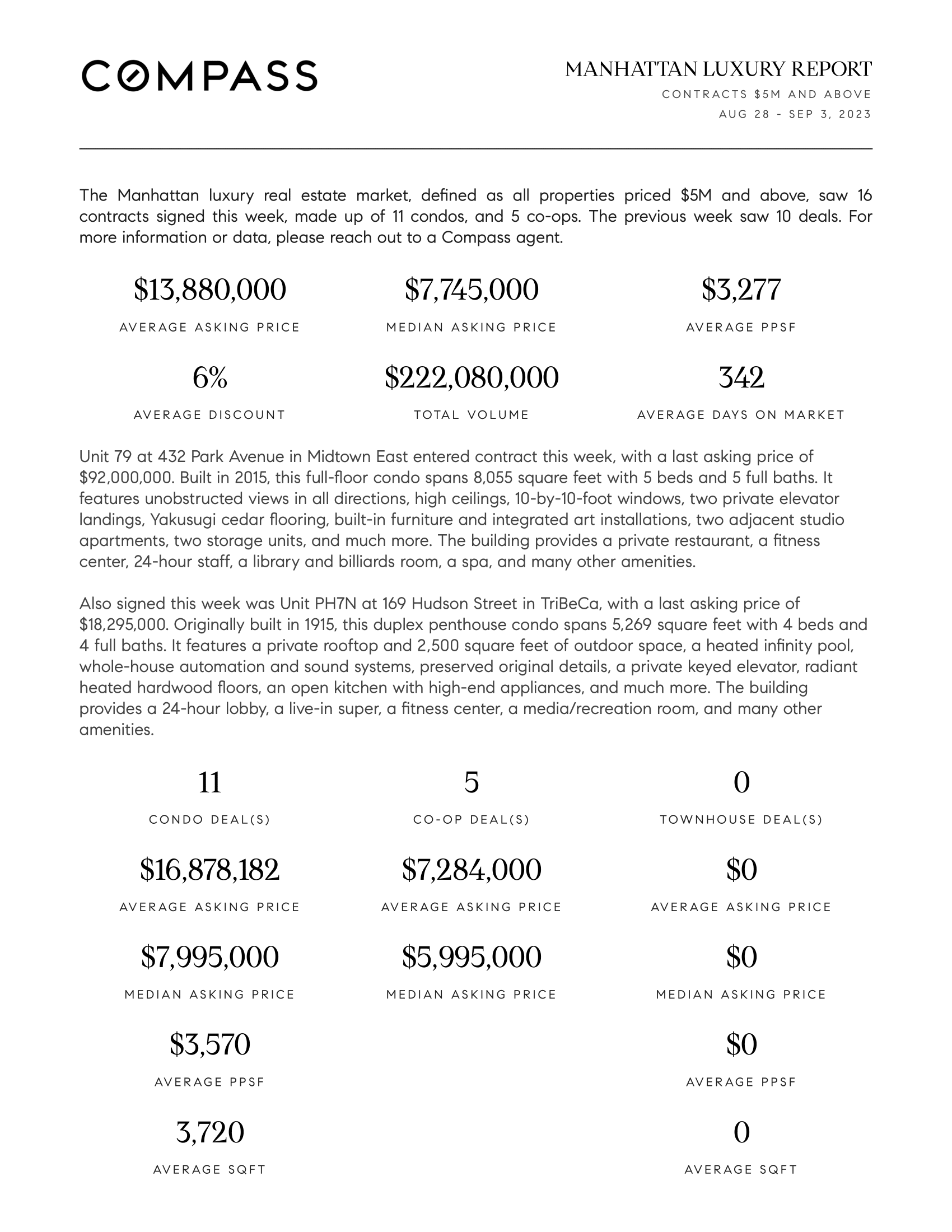 Manhattan Luxury Report: August 28, 2023 - September 3, 2023