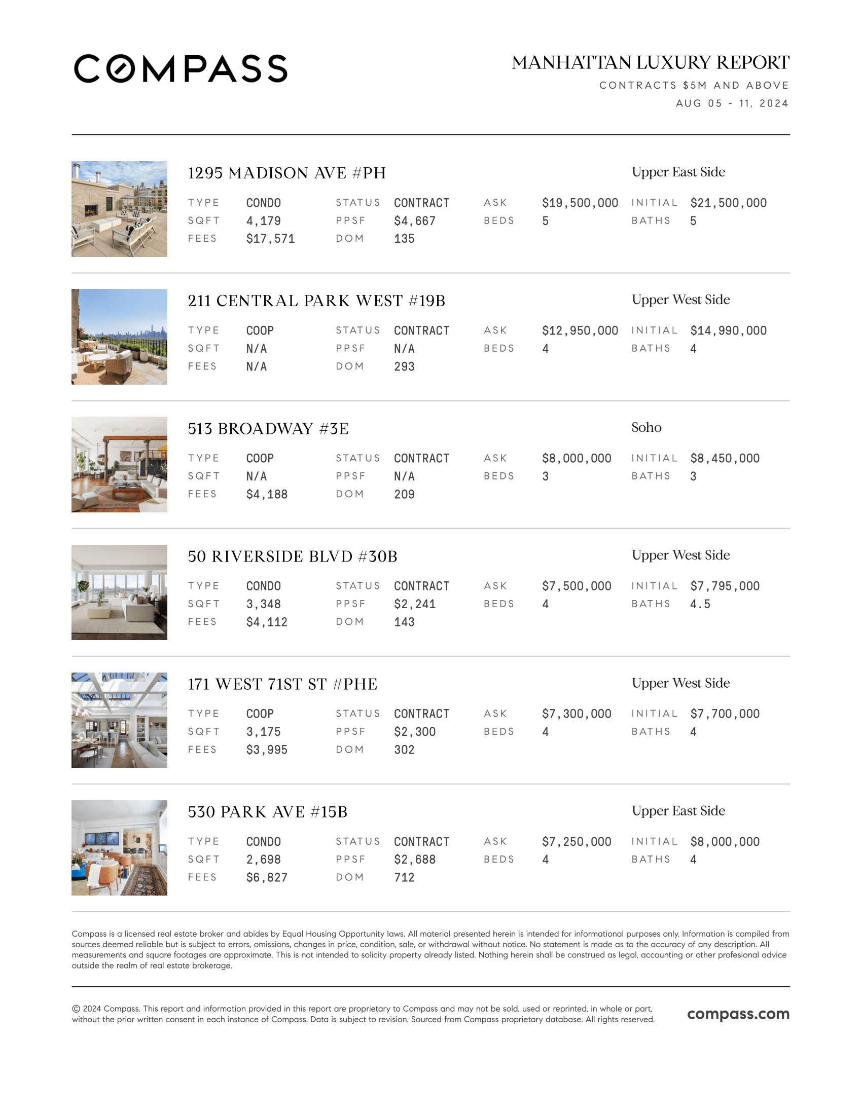 Manhattan Luxury Report: August 5, 2024 - August 11, 2024