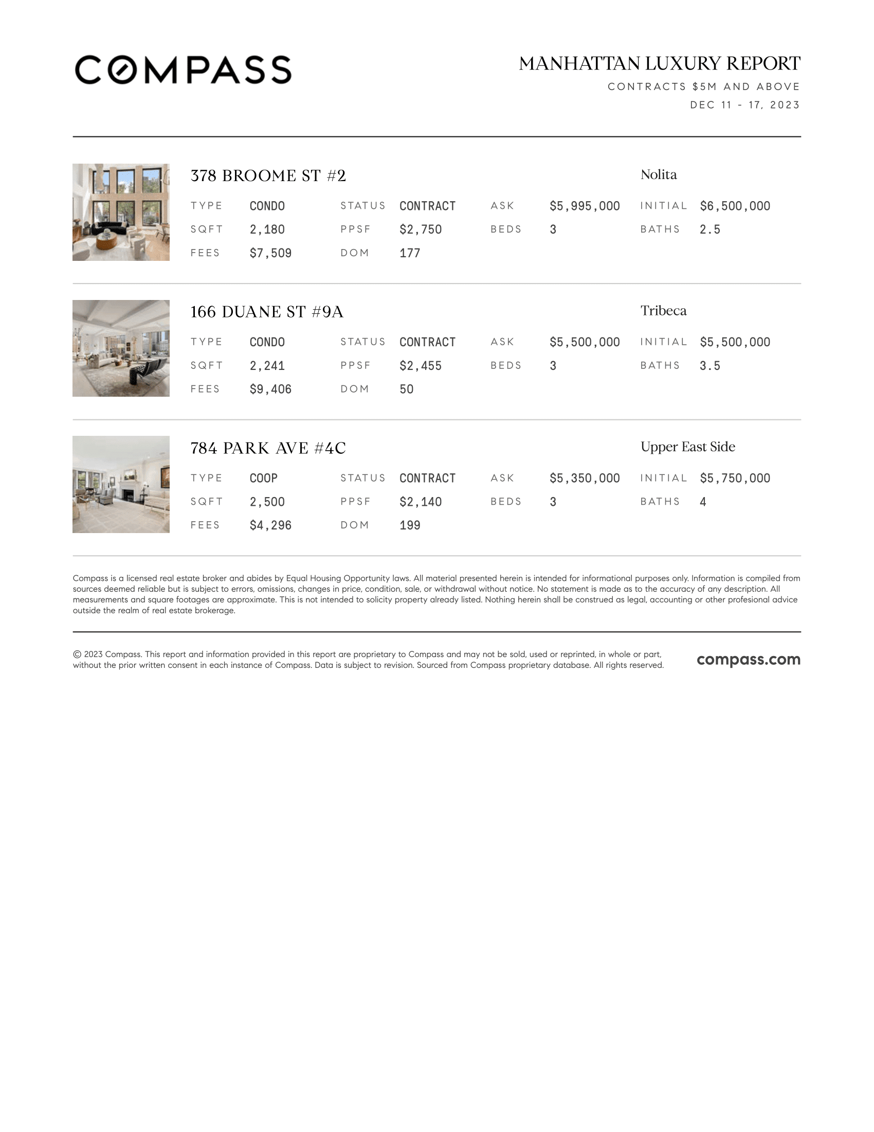 Manhattan Luxury Report: December 11, 2023- December 17, 2023