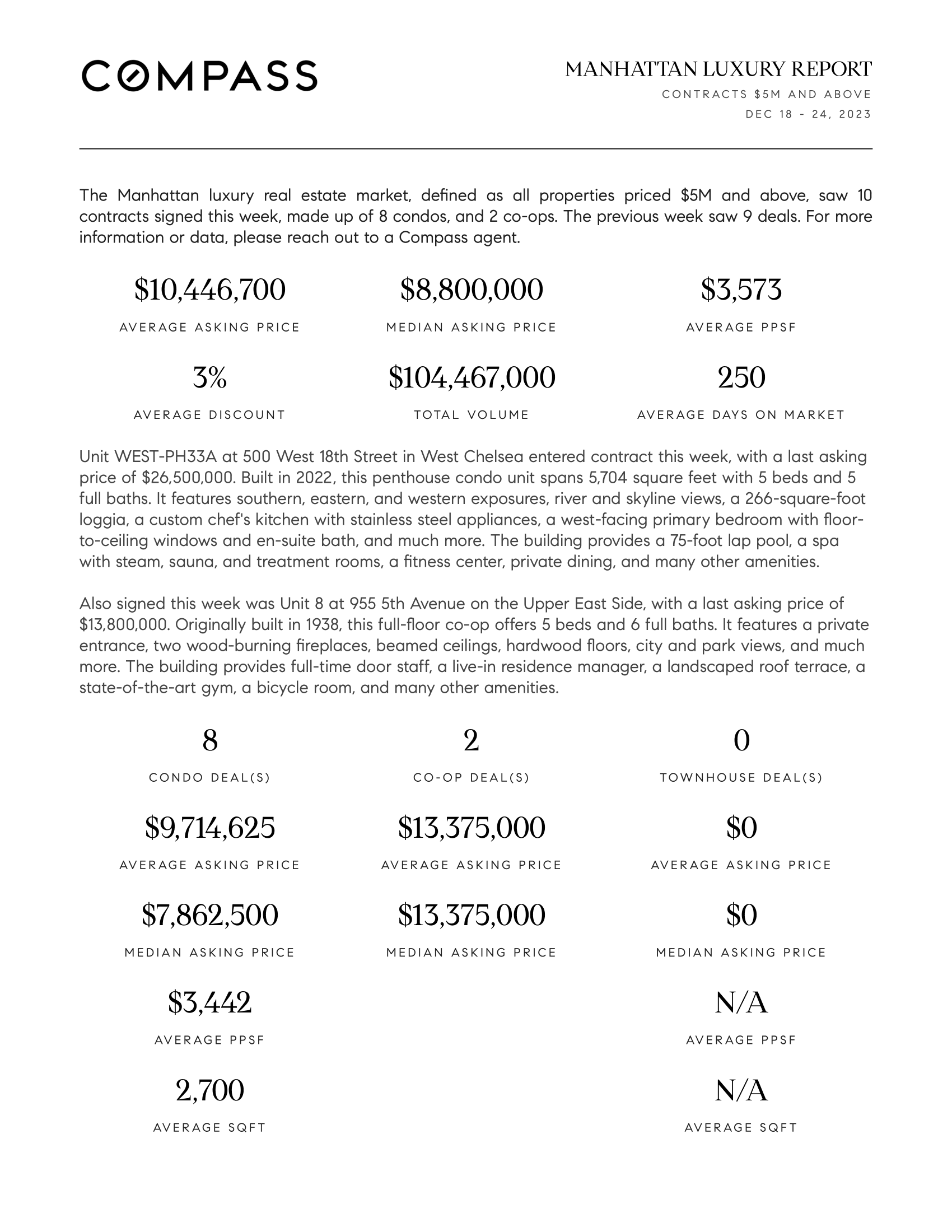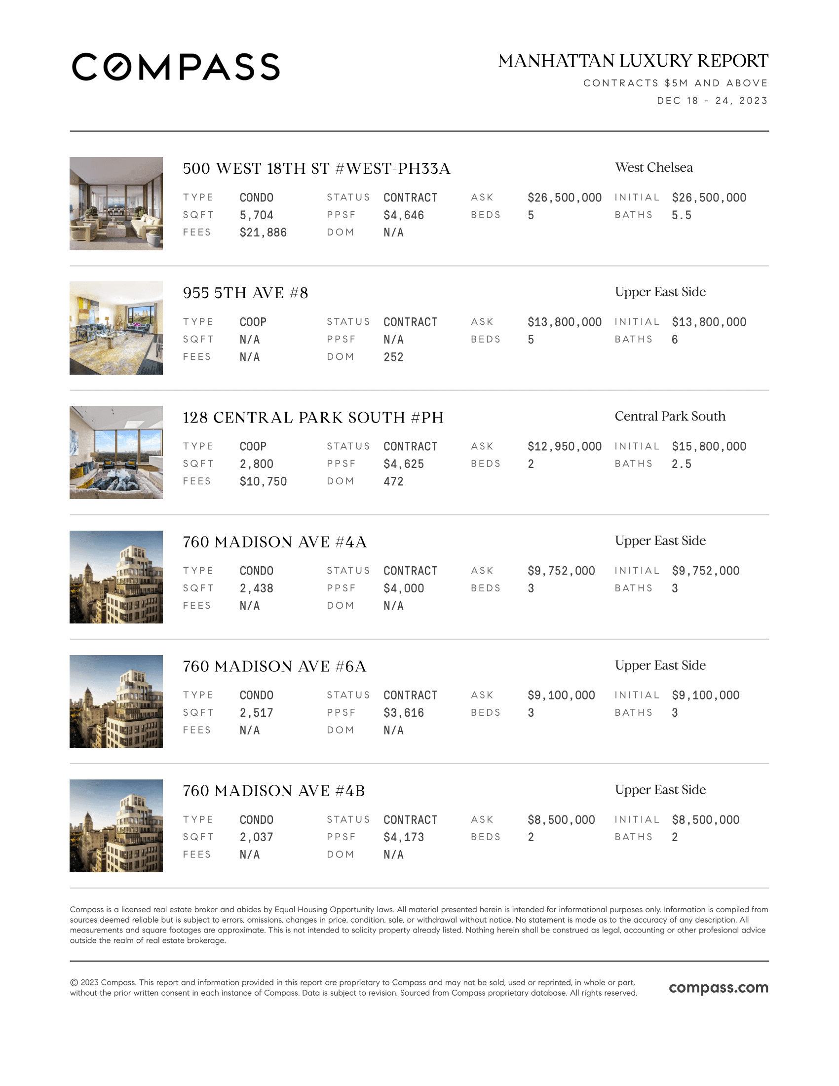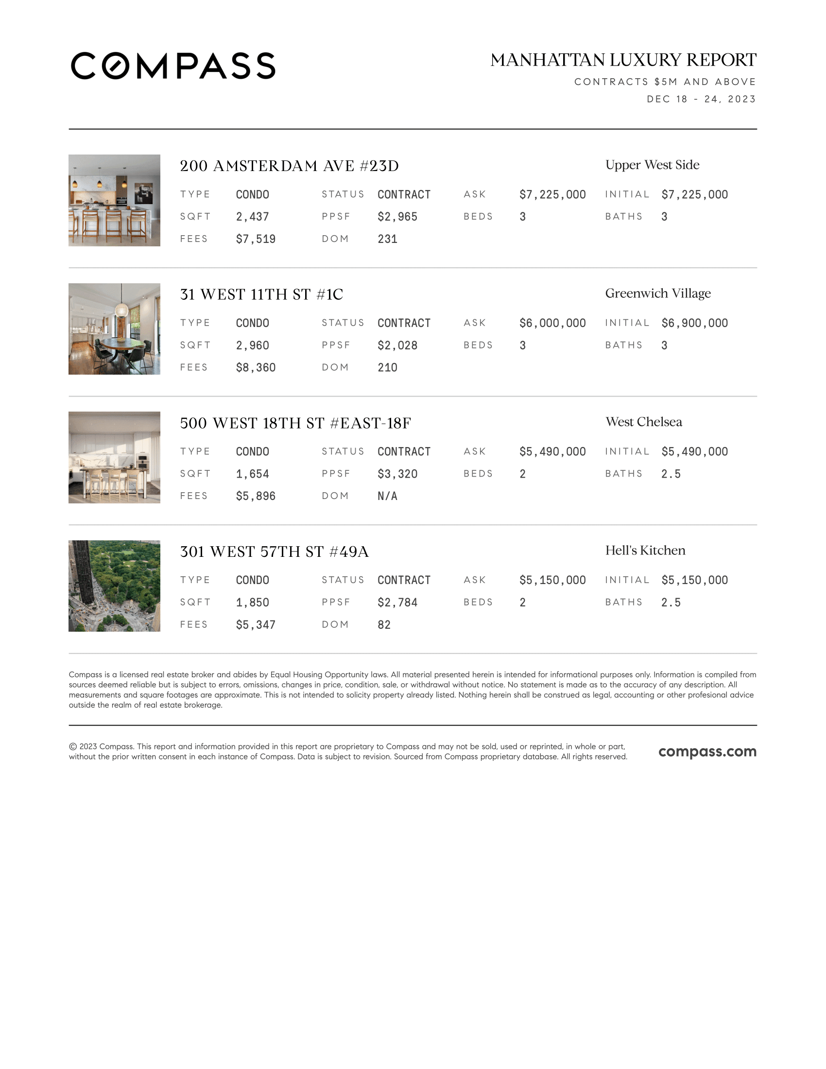 Manhattan Luxury Report: December 18, 2023 - December 24, 2023