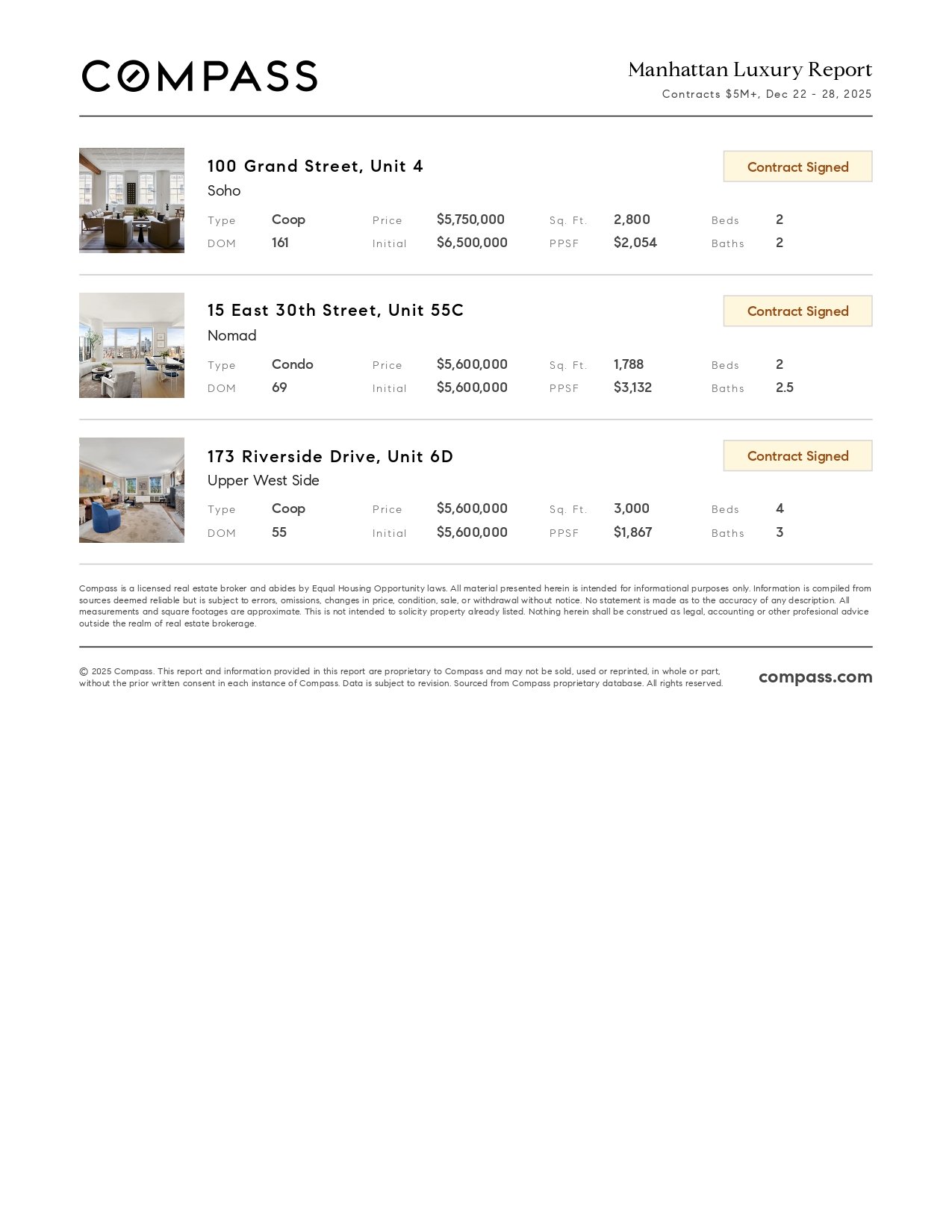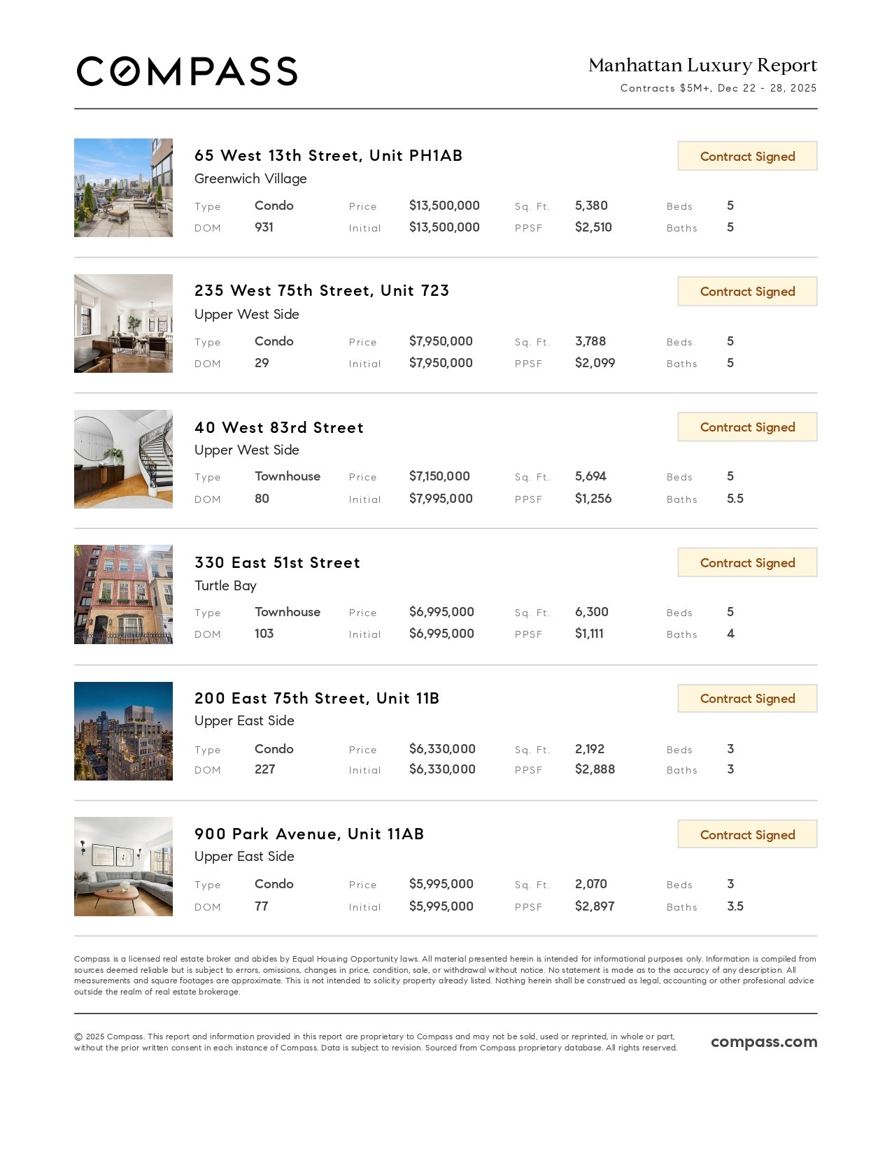 Manhattan Luxury Report: December 22, 2025 - December 28, 2025