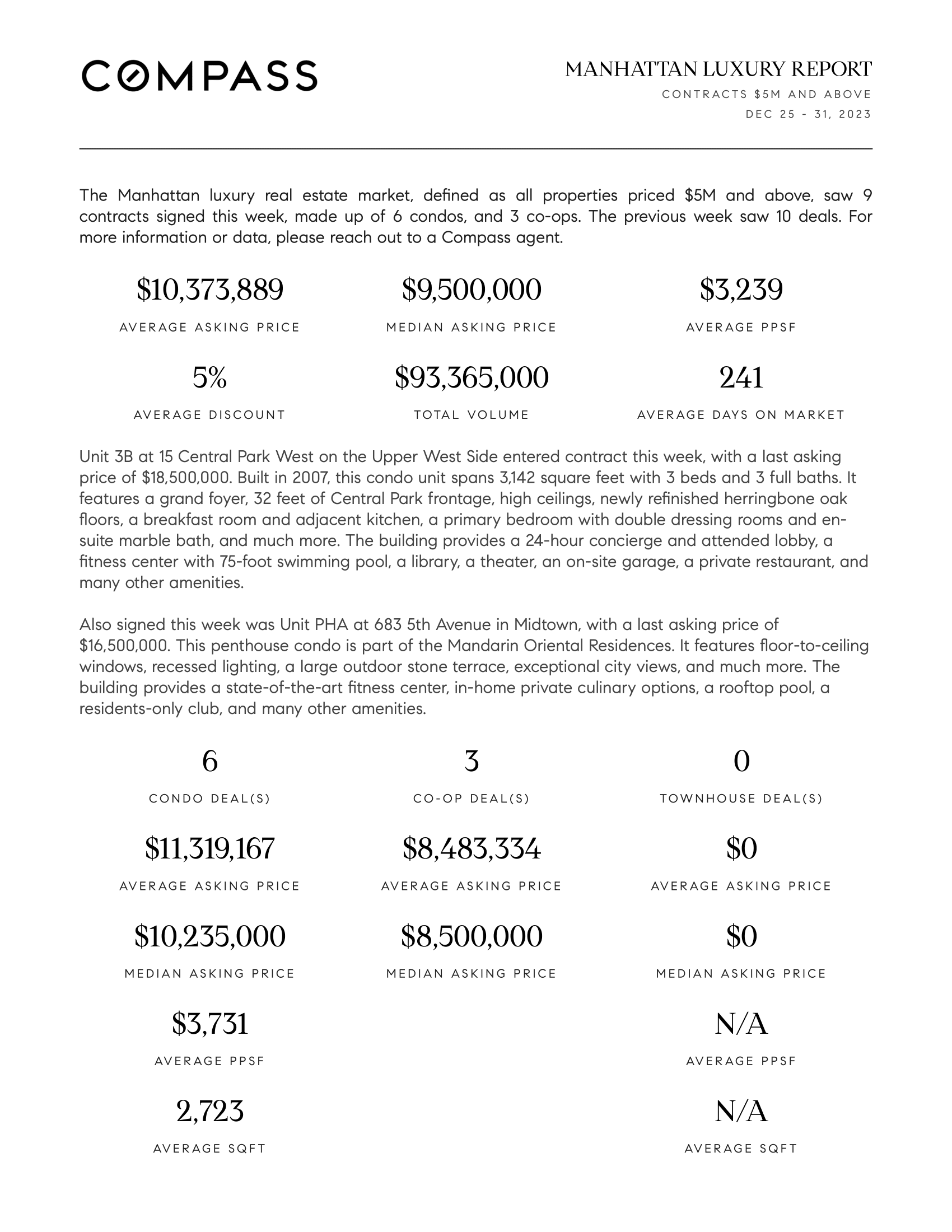 Manhattan Luxury Report: December 25, 2023 - December 31, 2023
