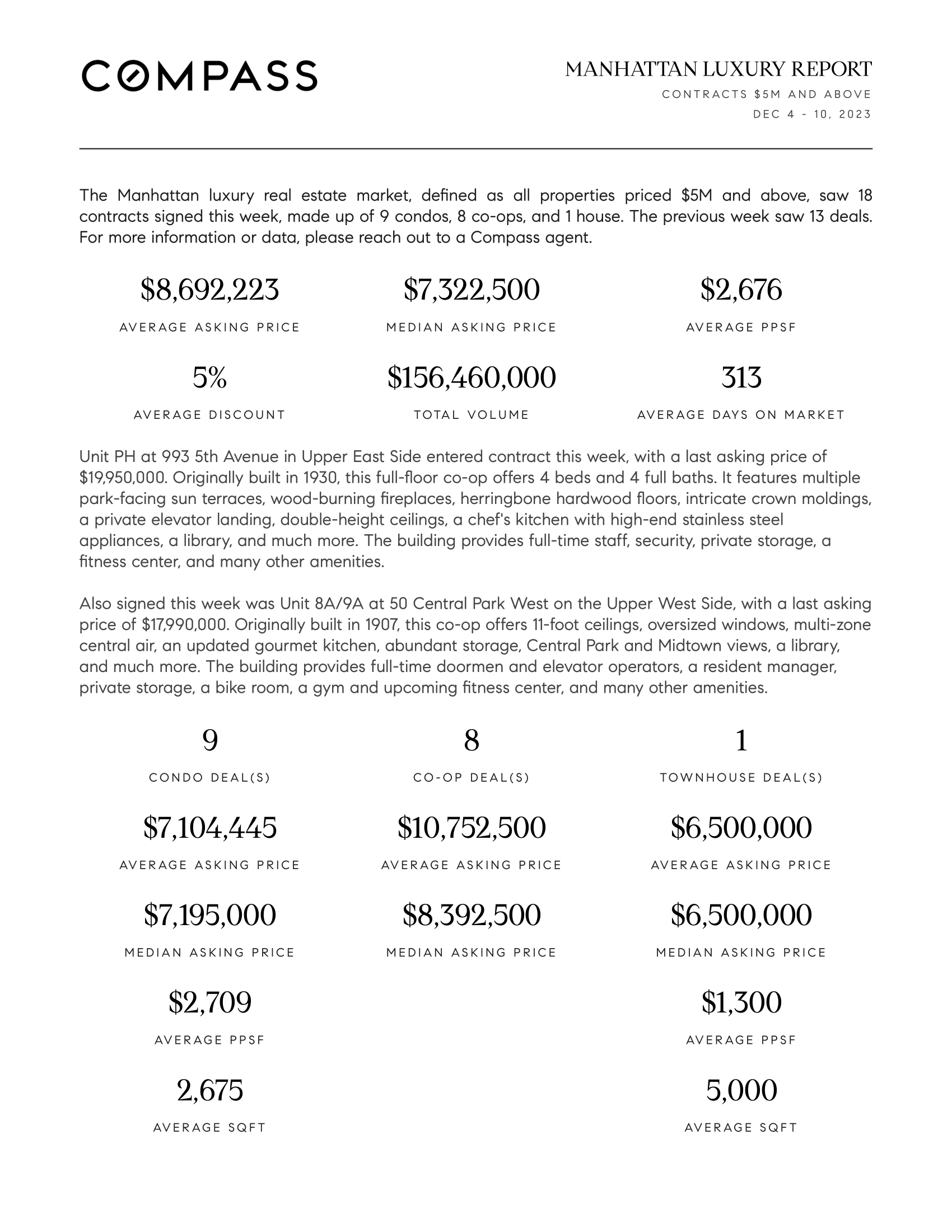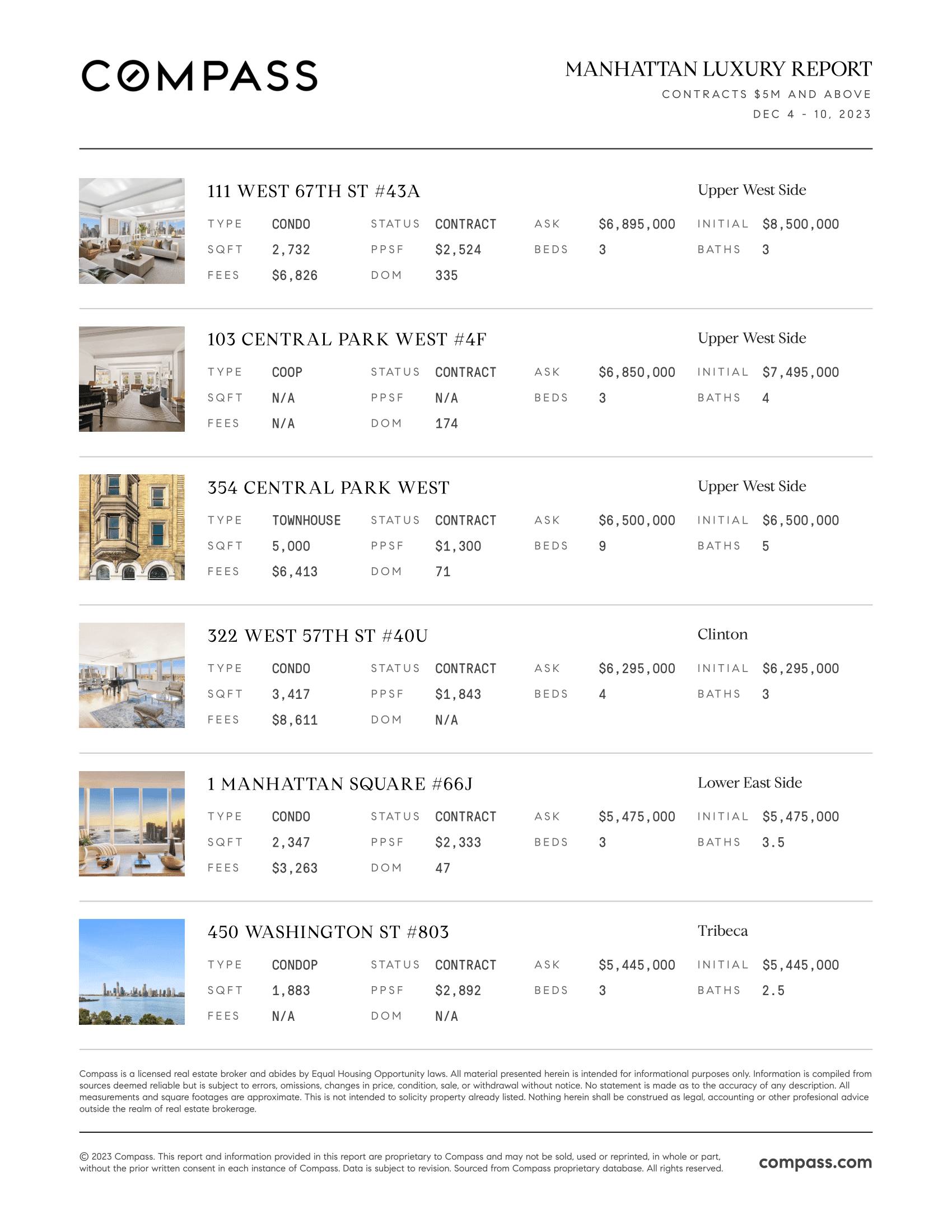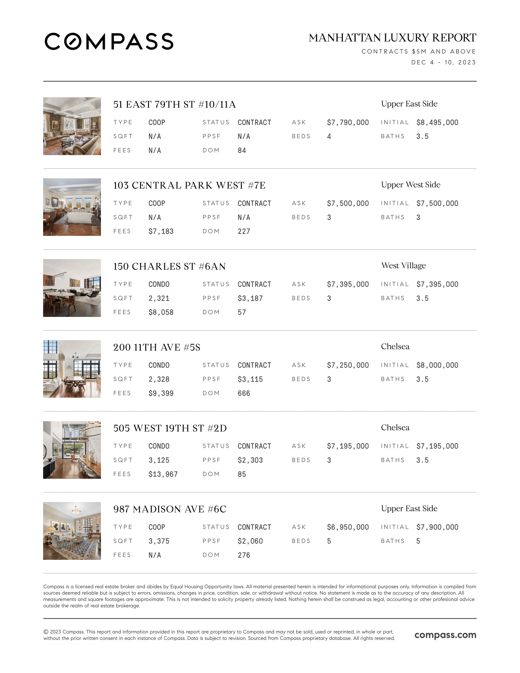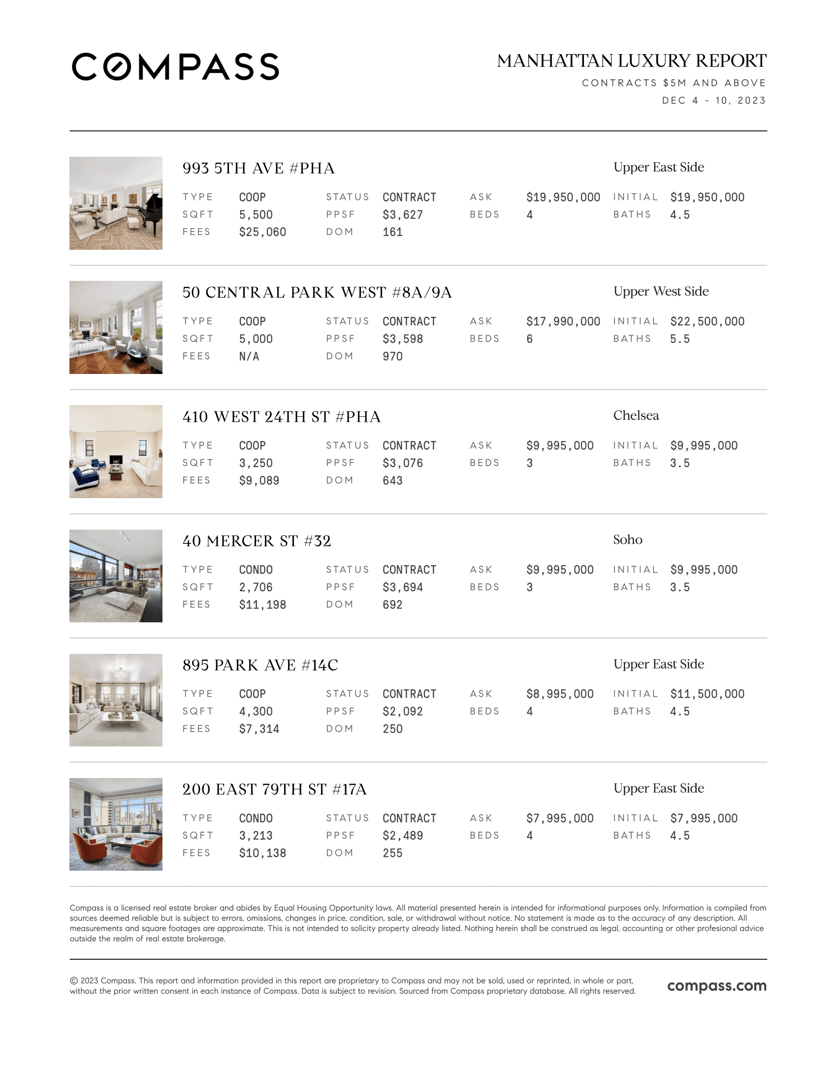 Manhattan Luxury Report: December 4, 2023 - December 10, 2023