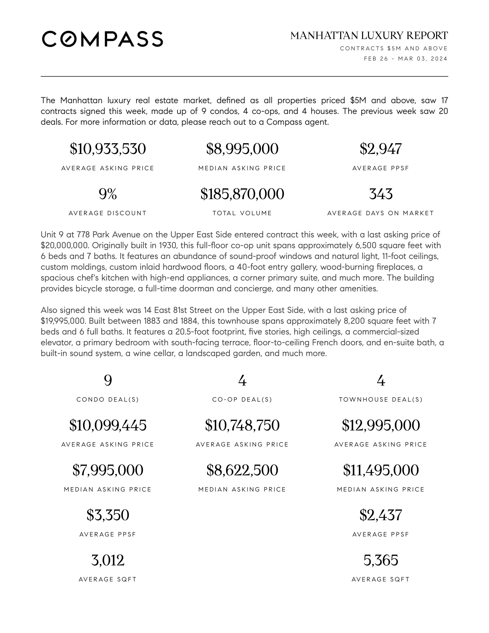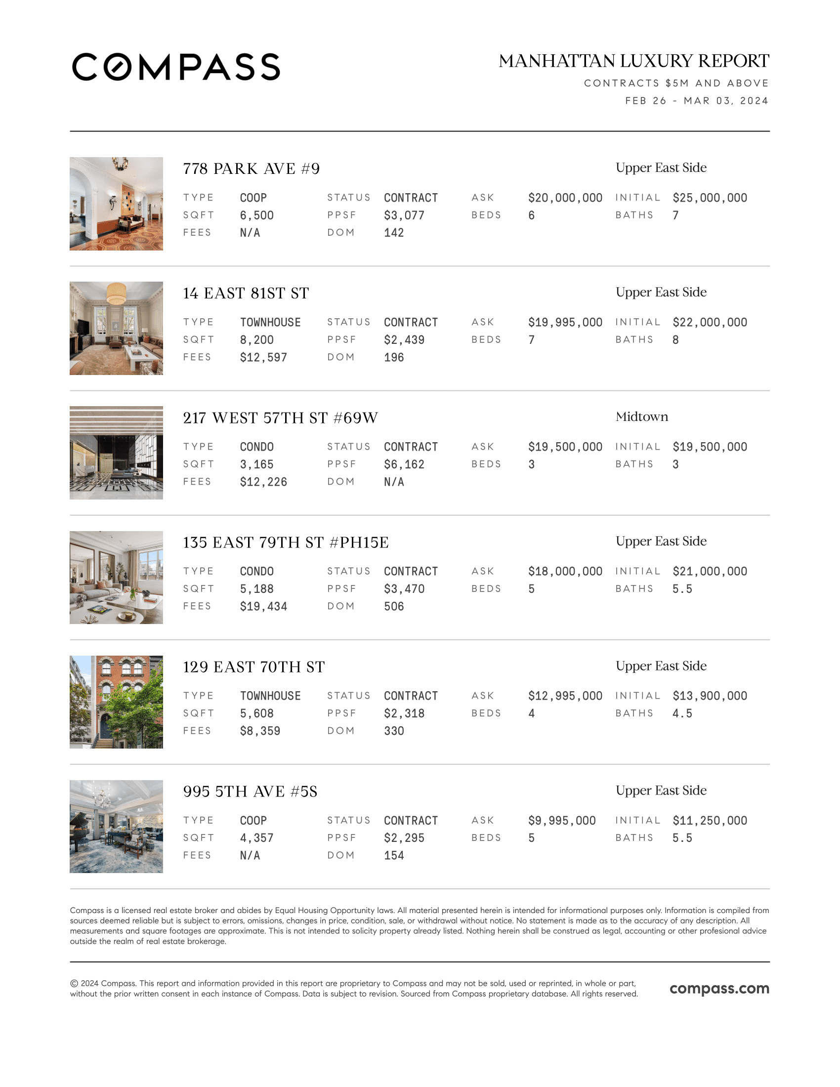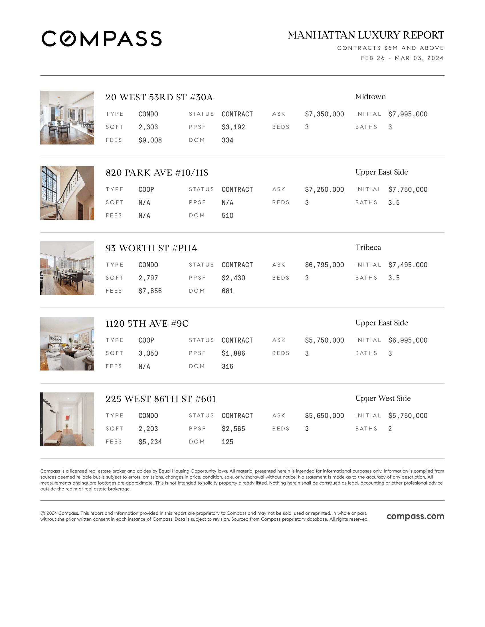 Manhattan Luxury Report: February 26, 2024 - March 3, 2024