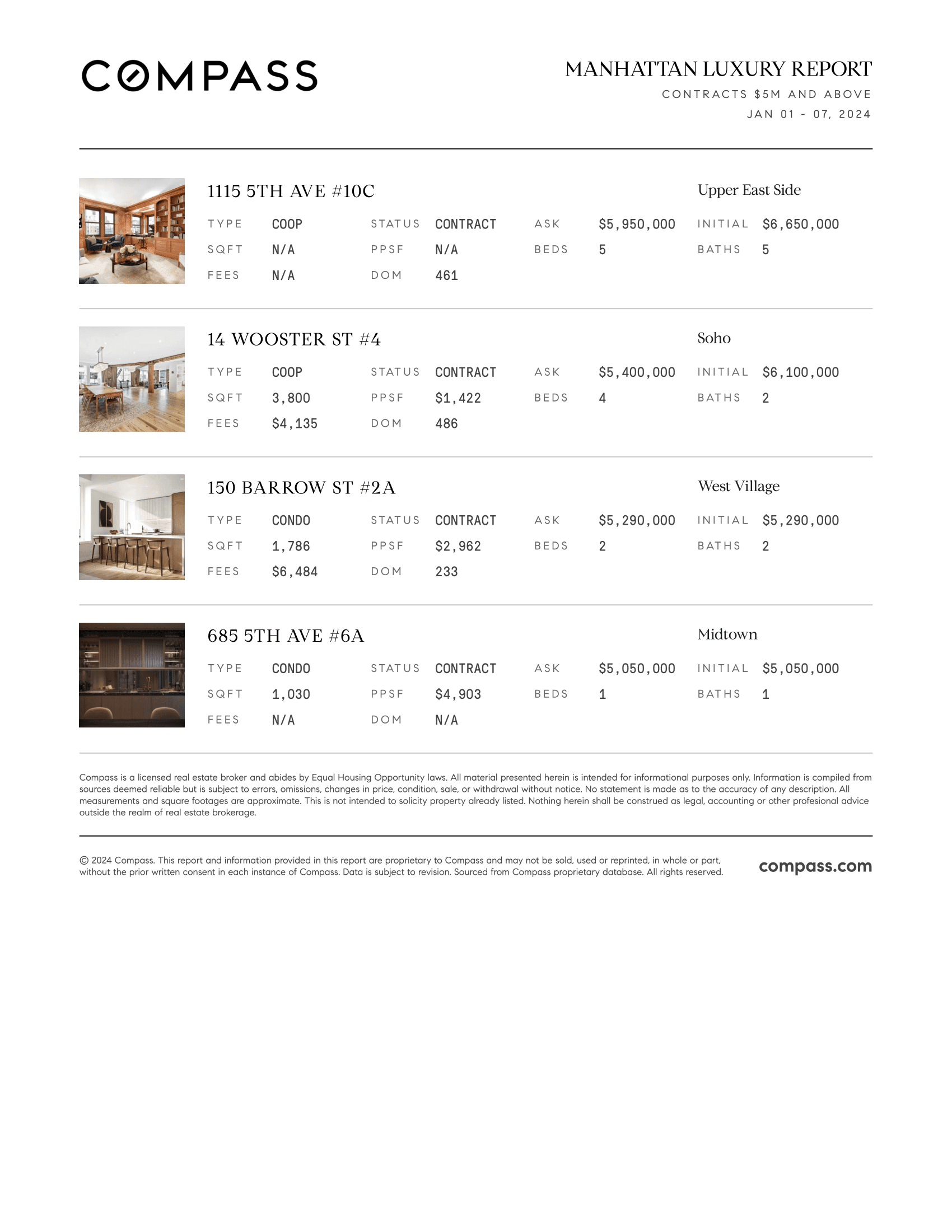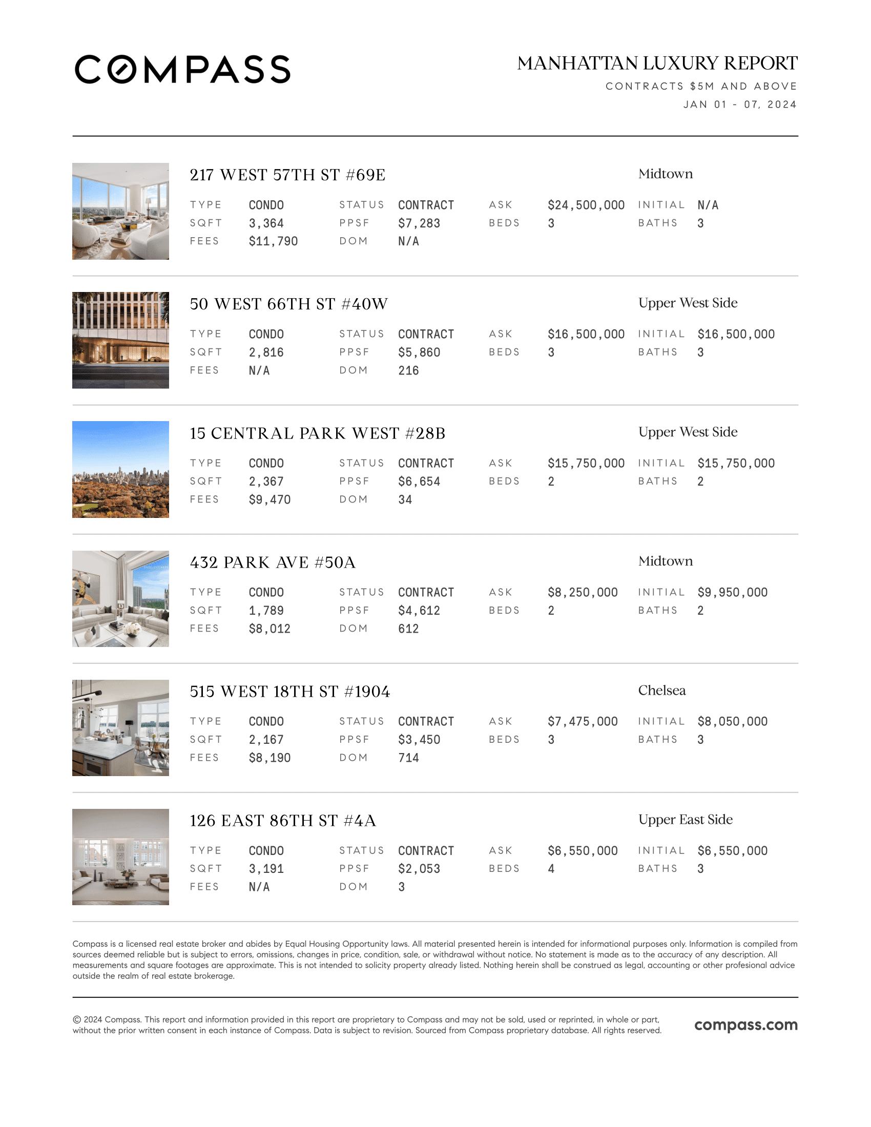 Manhattan Luxury Report: January 1, 2024 - January 7, 2024
