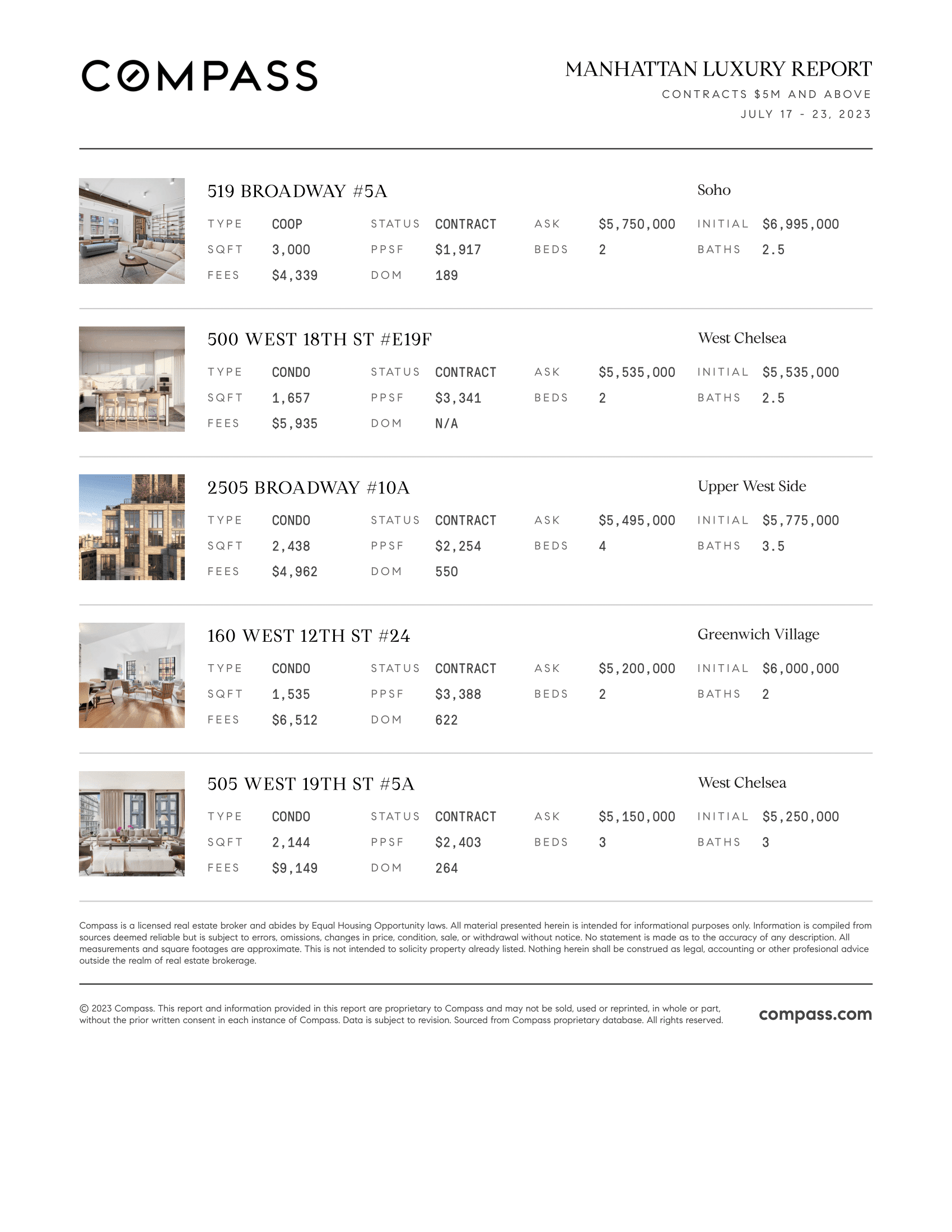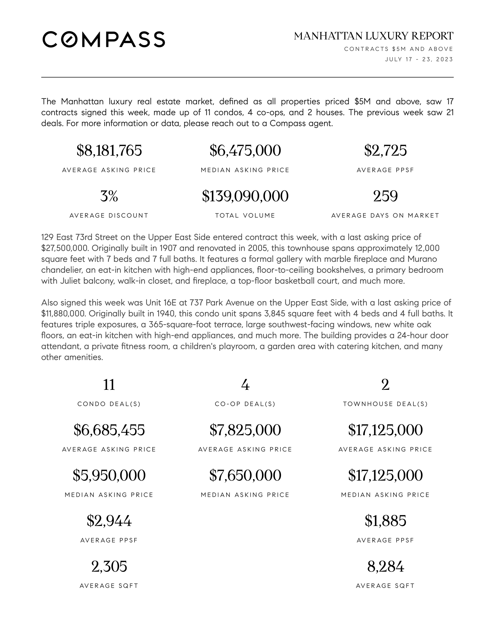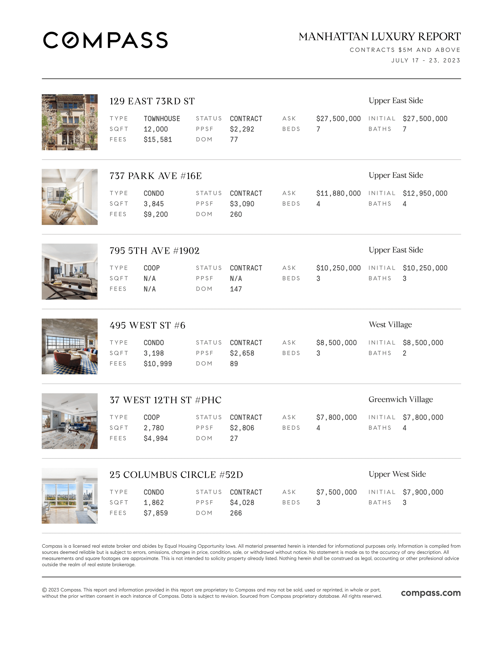 Manhattan Luxury Report: July 17 - July 23, 2023