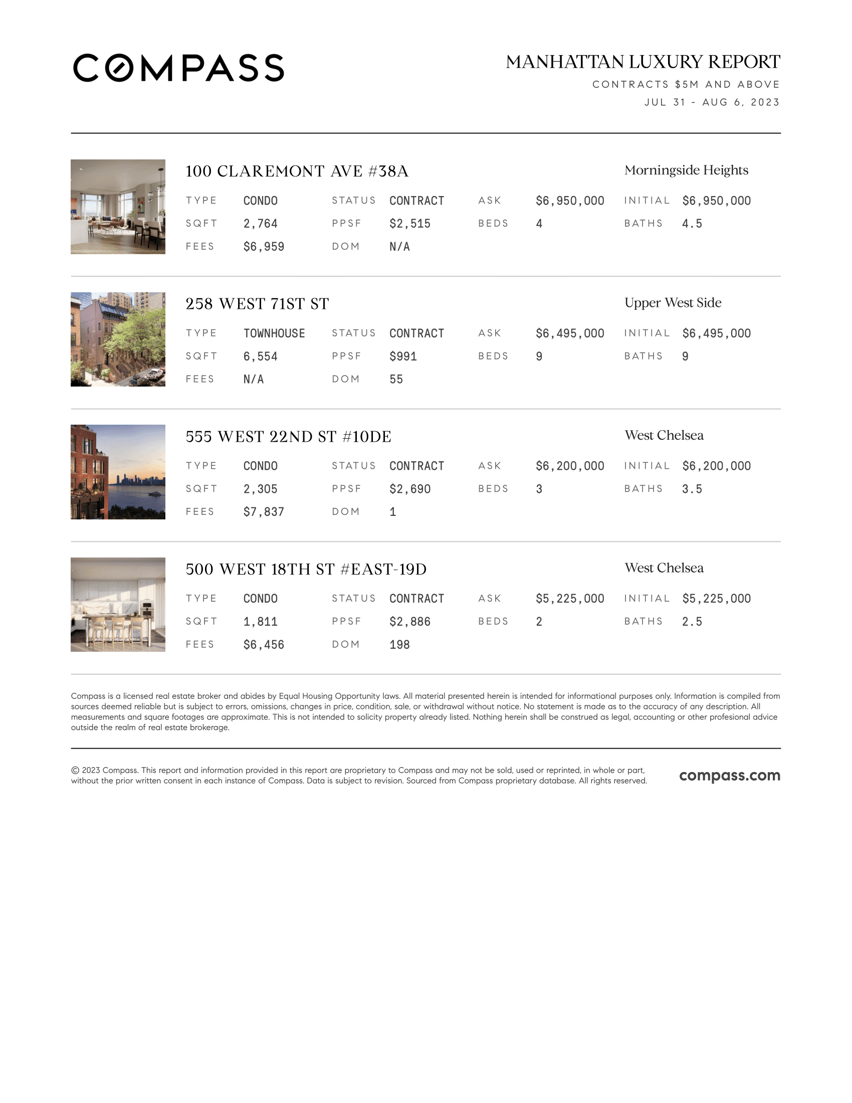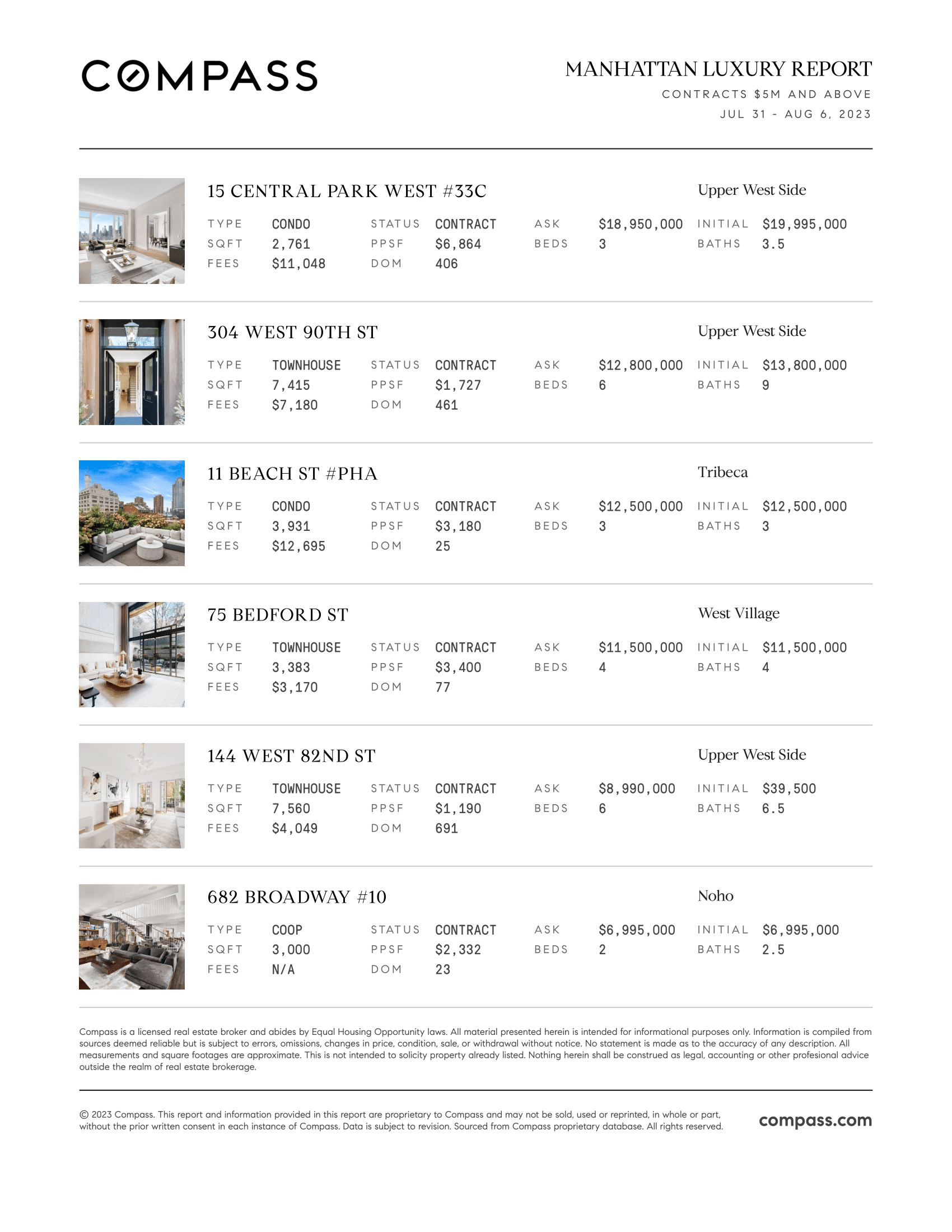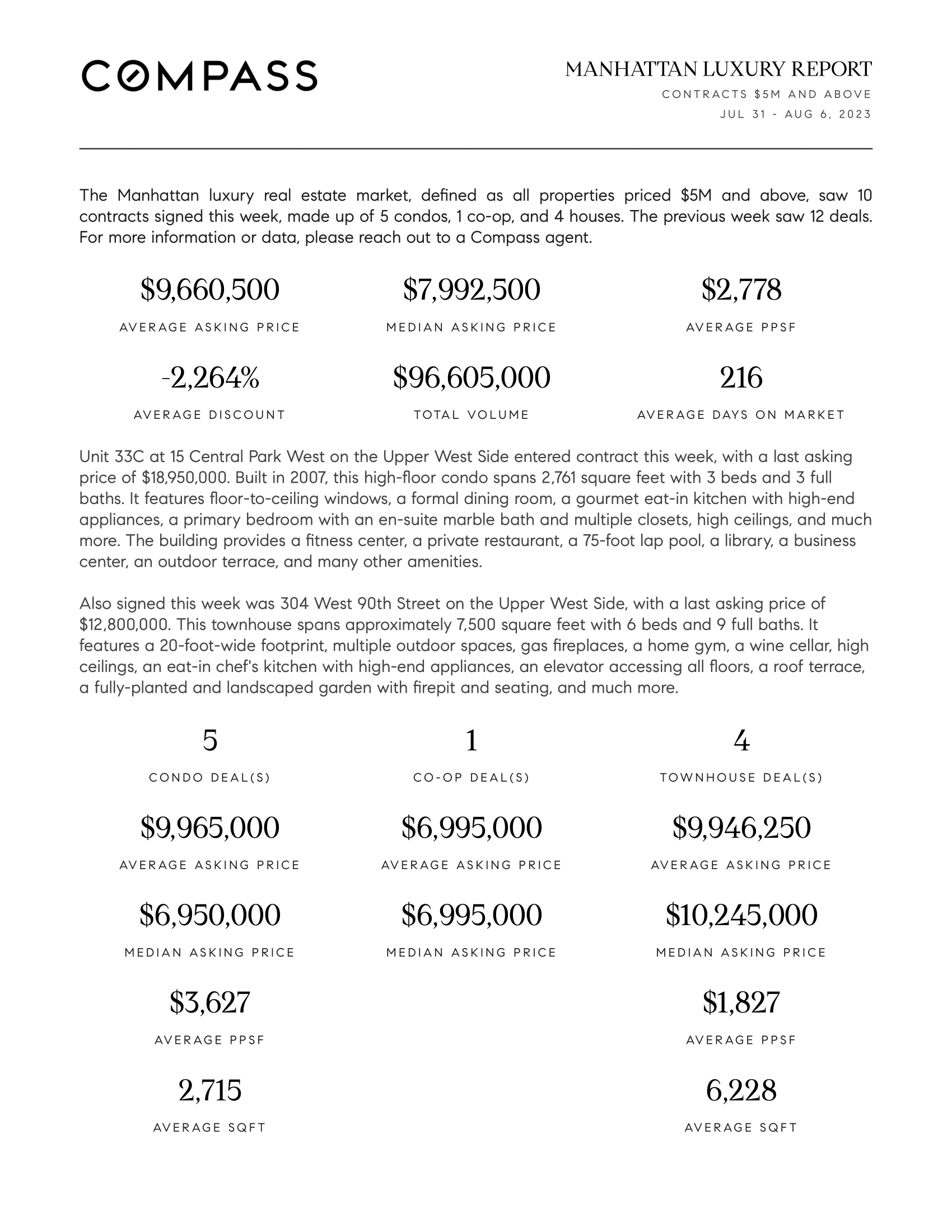 Manhattan Luxury Report: July 31 - August 6, 2023
