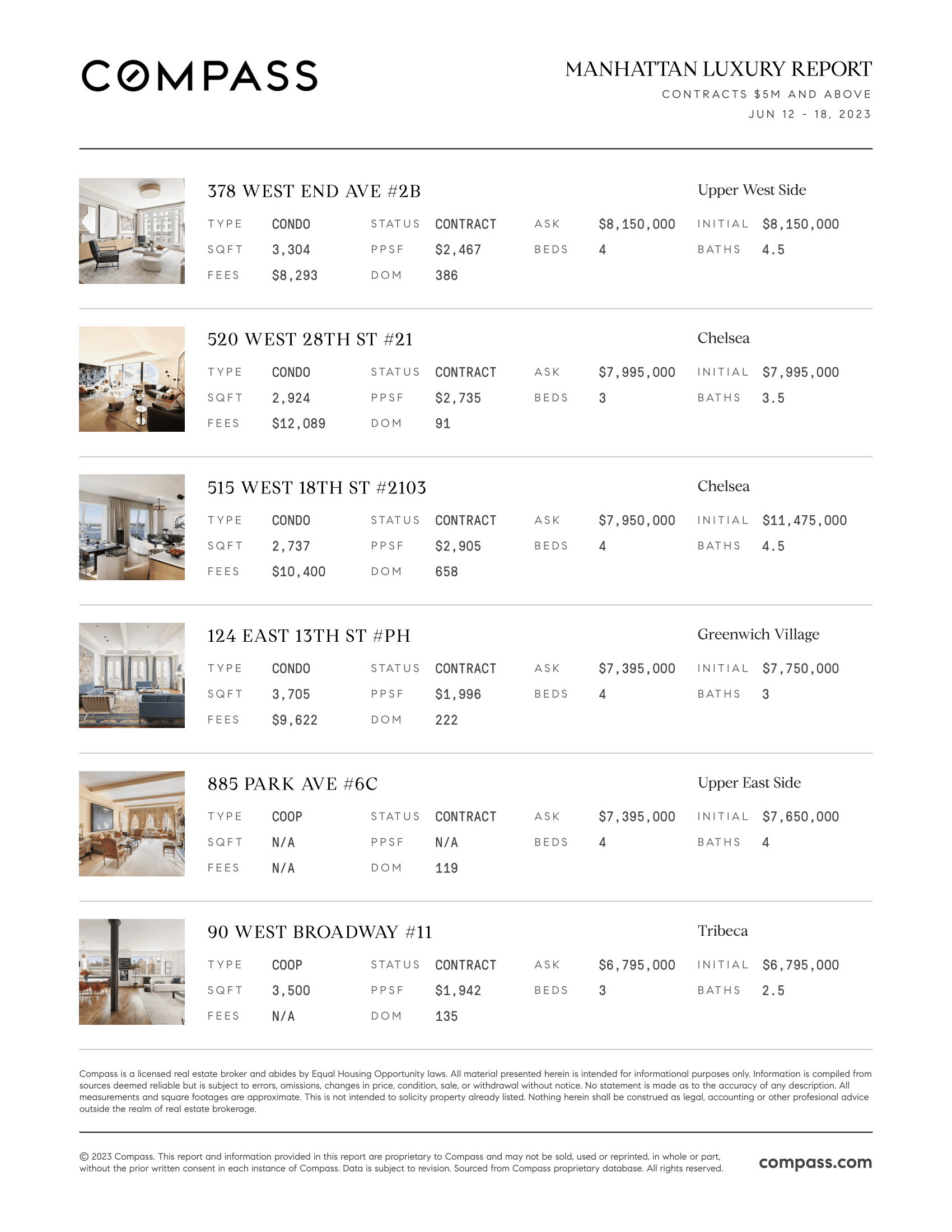 Manhattan Luxury Report: June 12 - June 18, 2023