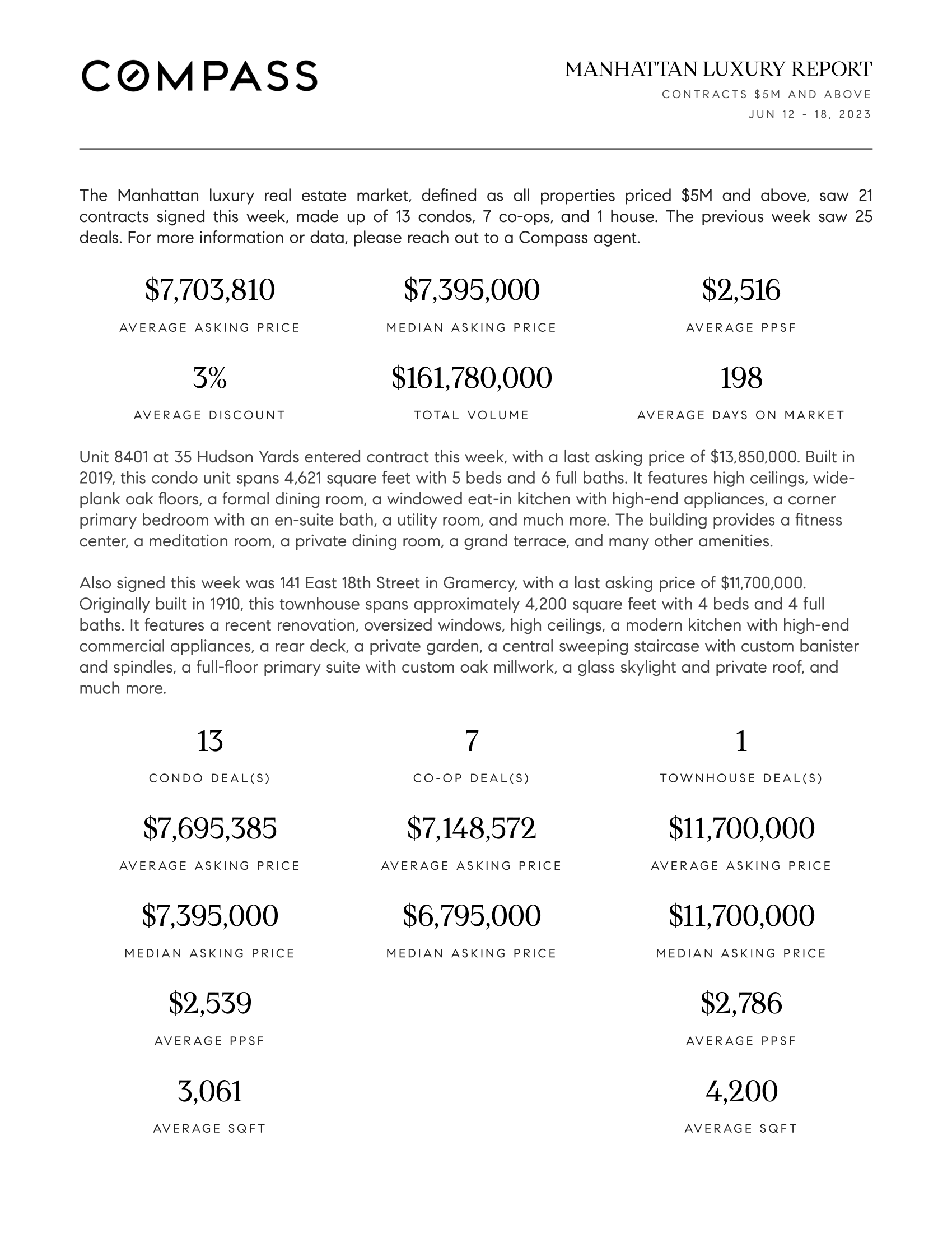 Manhattan Luxury Report: June 19 - June 25, 2023