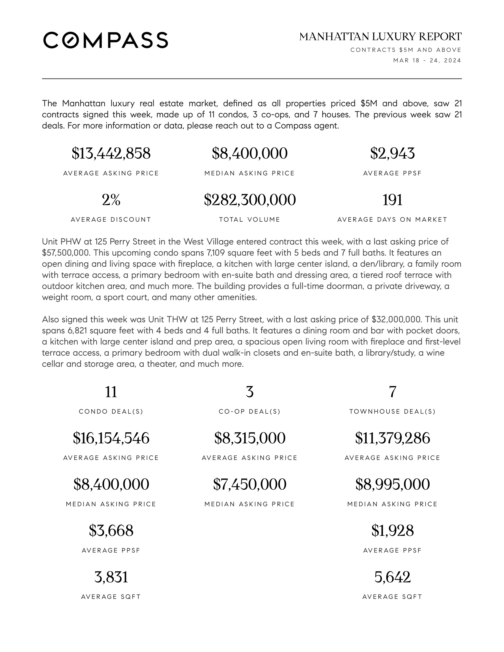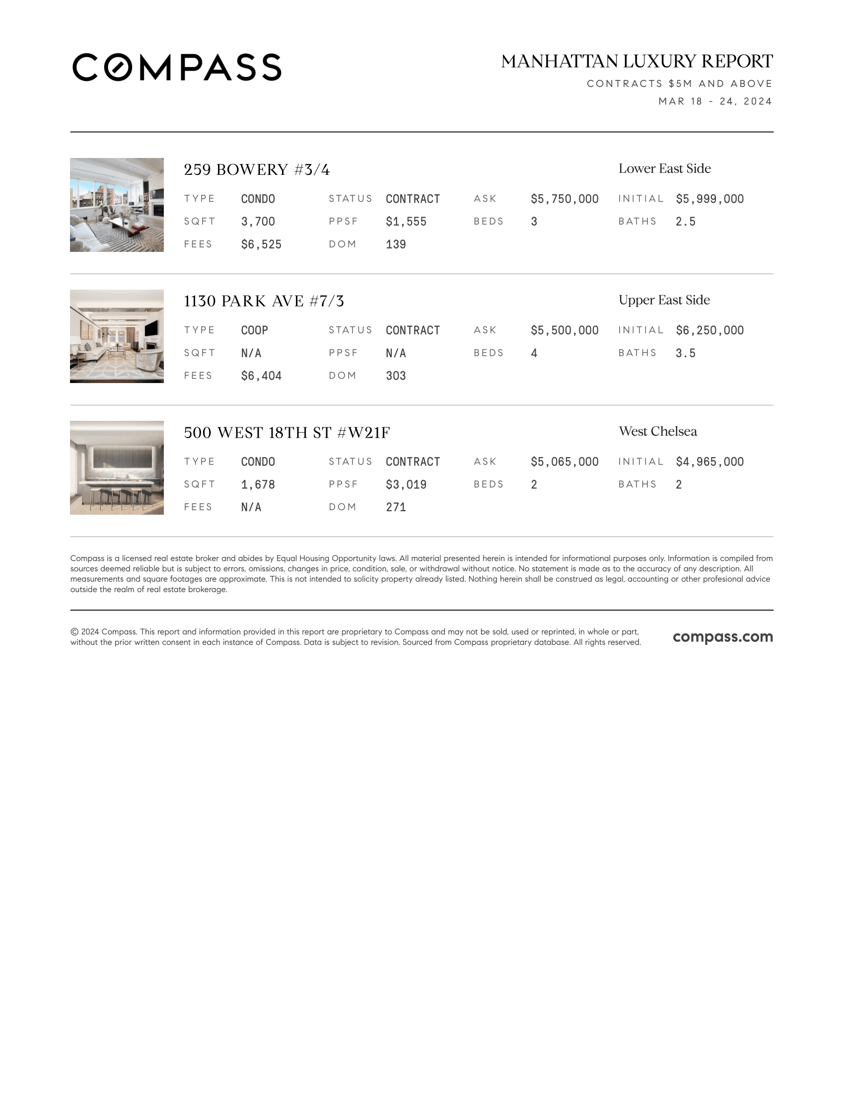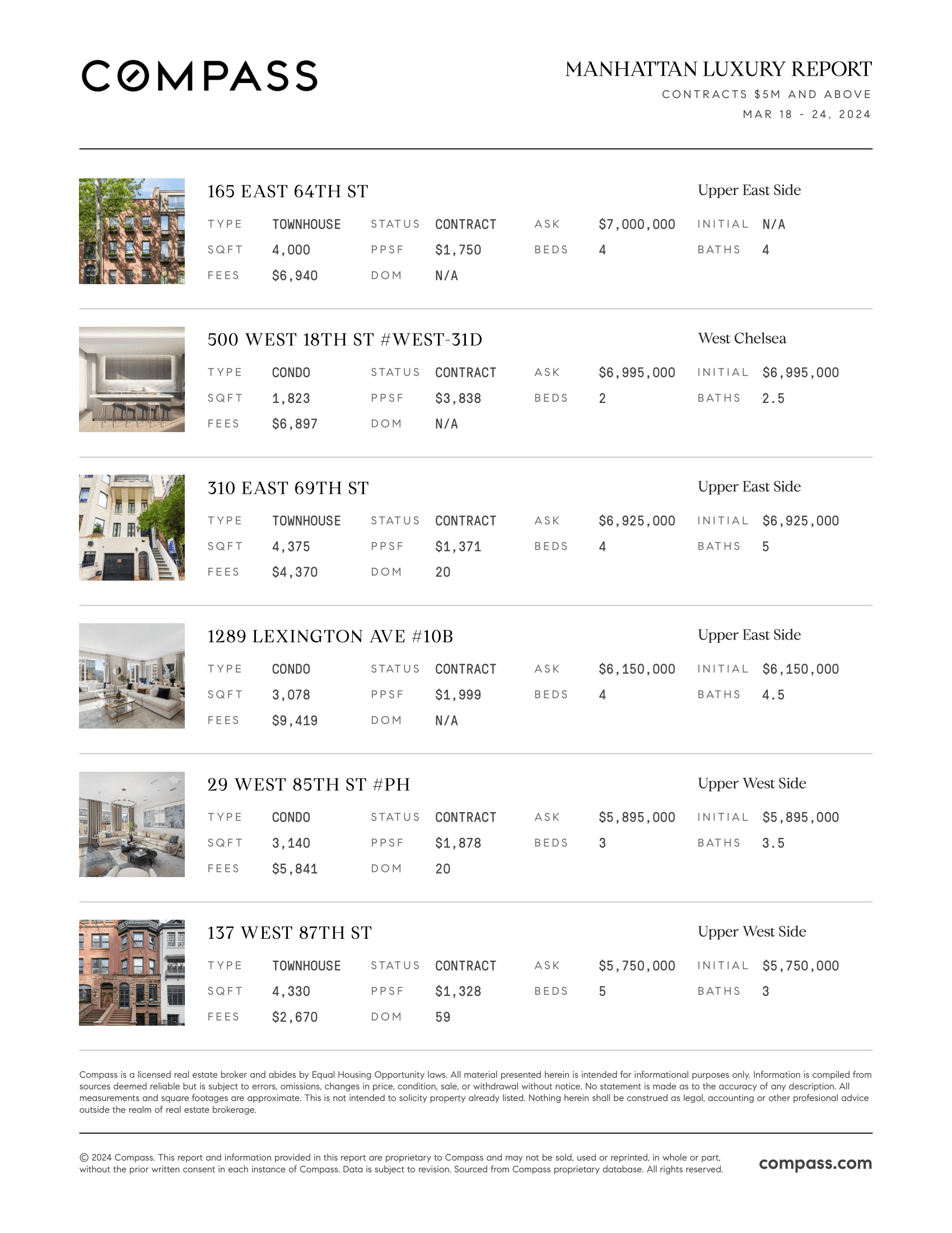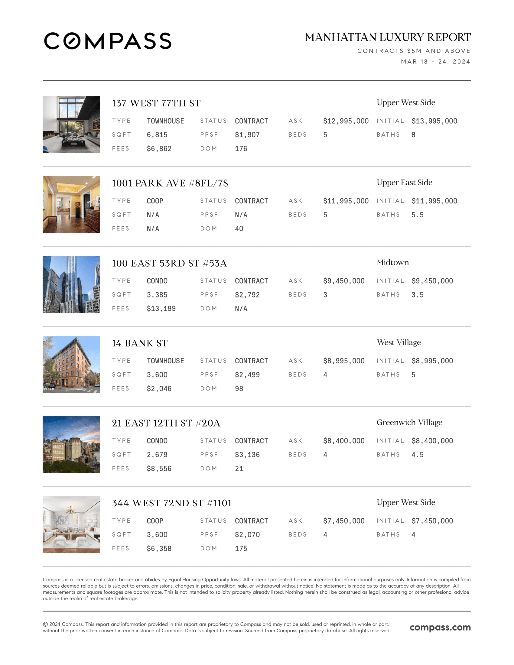 Manhattan Luxury Report: March 18, 2024 - March 24, 2024