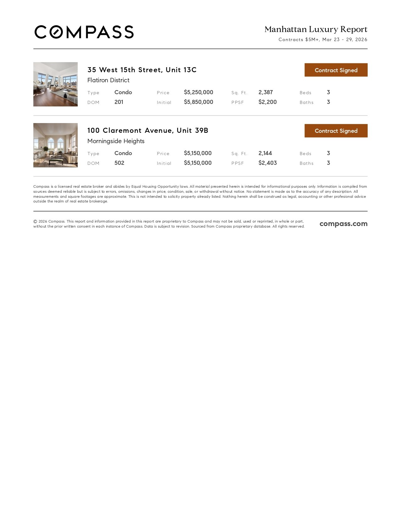 Manhattan Luxury Report: March 23, 2026 - March 29, 2026