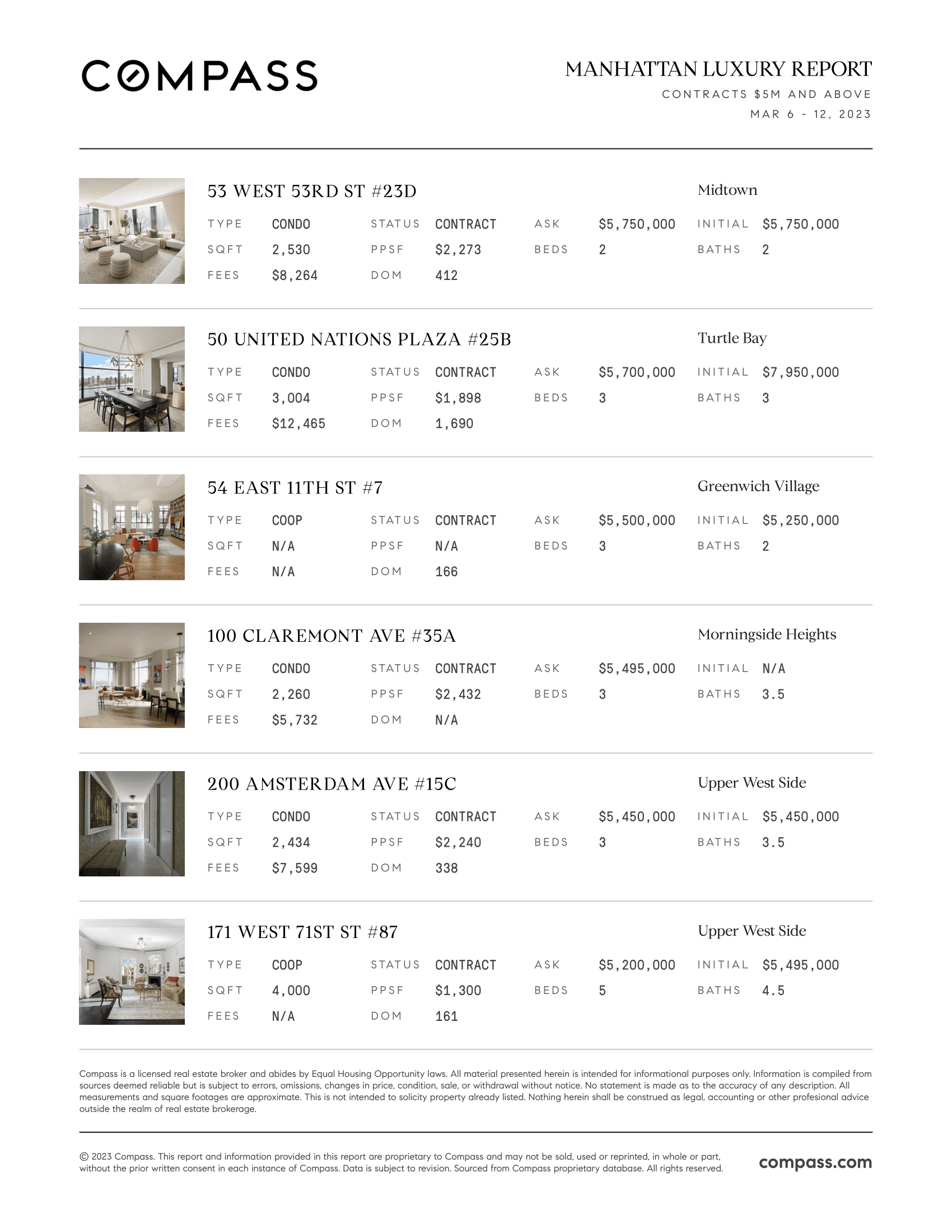 Manhattan Luxury Report: March 6 - March 12, 2023