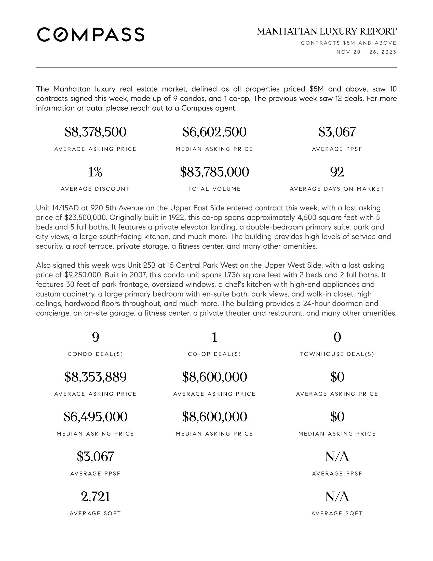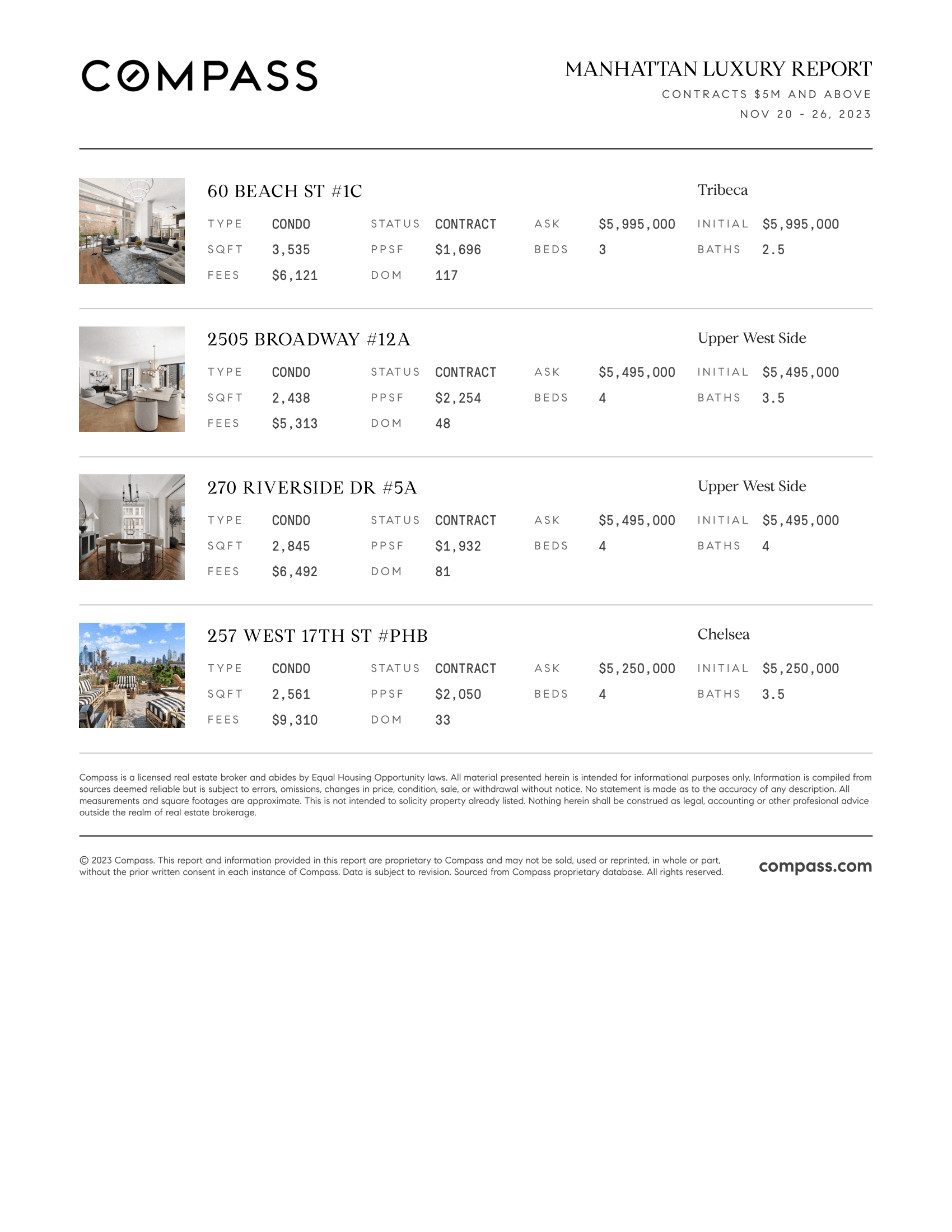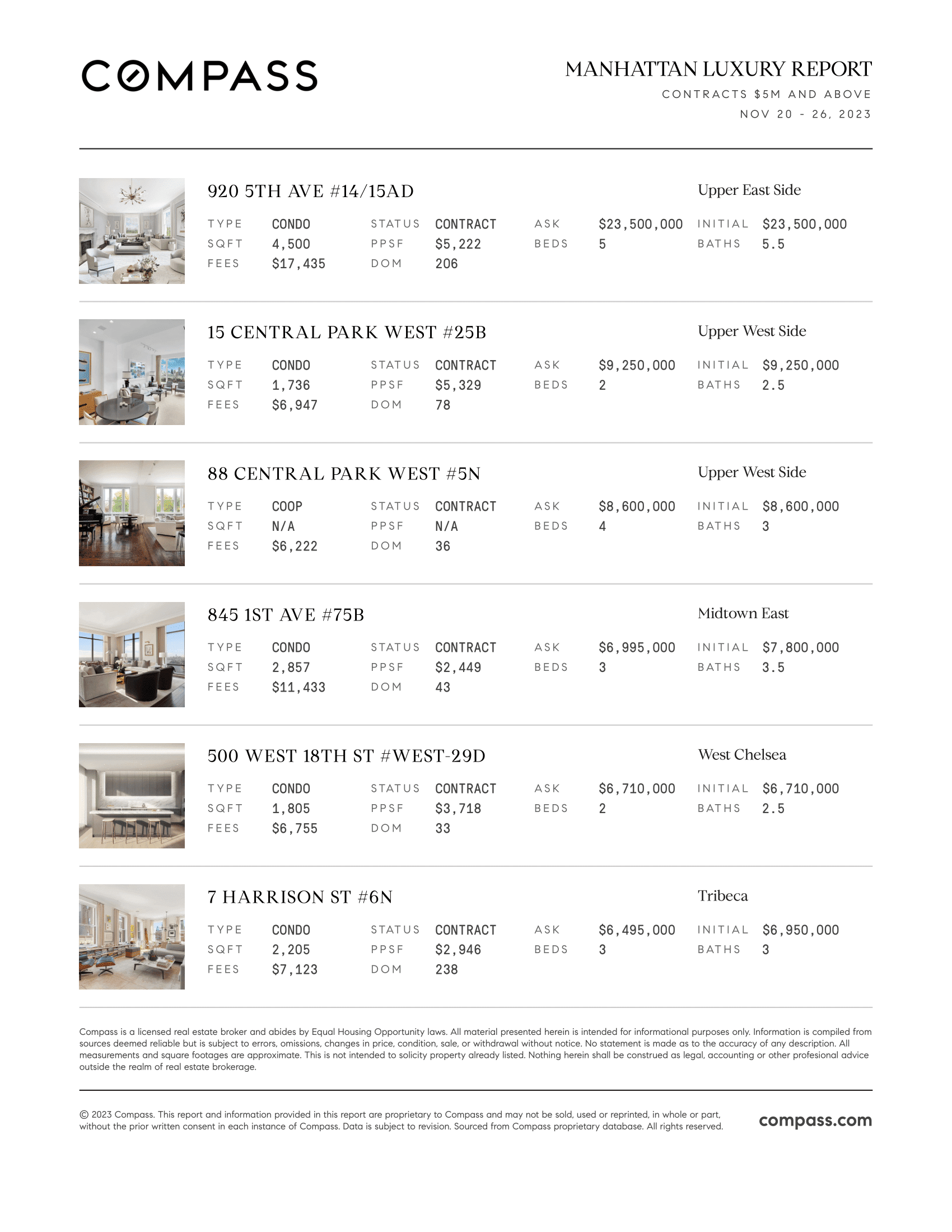 Manhattan Luxury Report: November 20, 2023- November 26, 2023