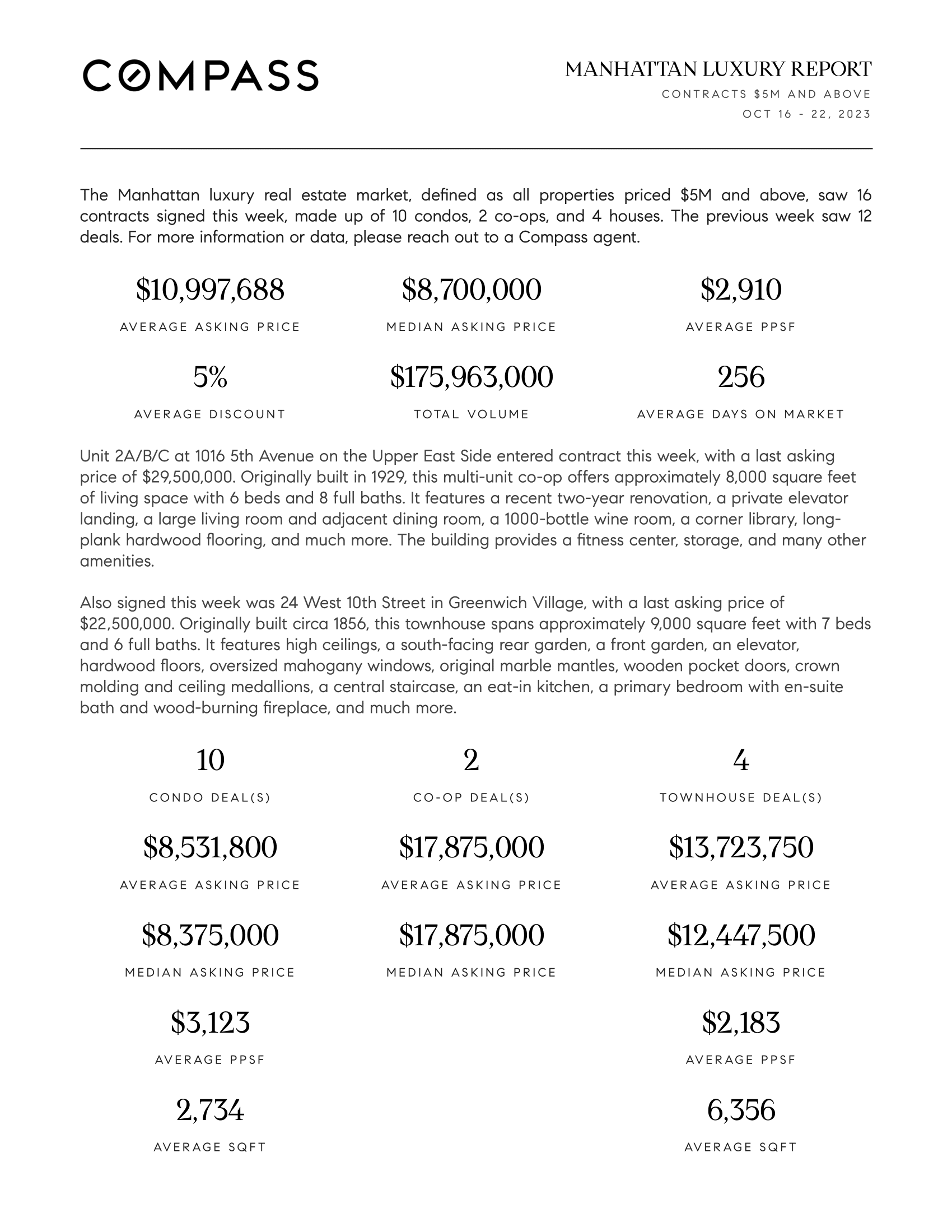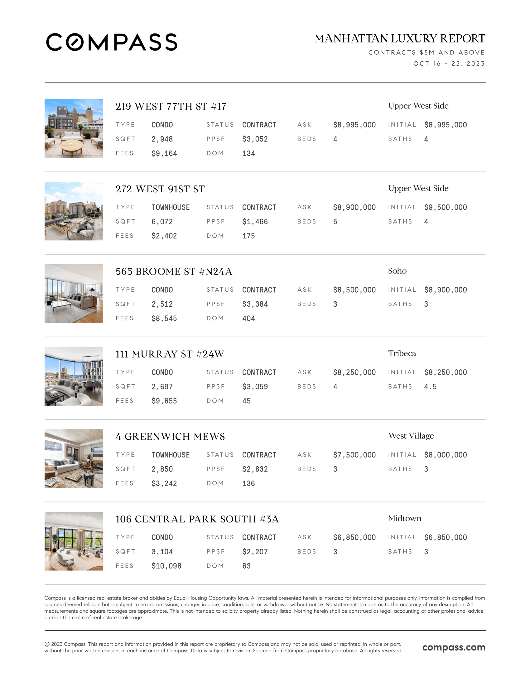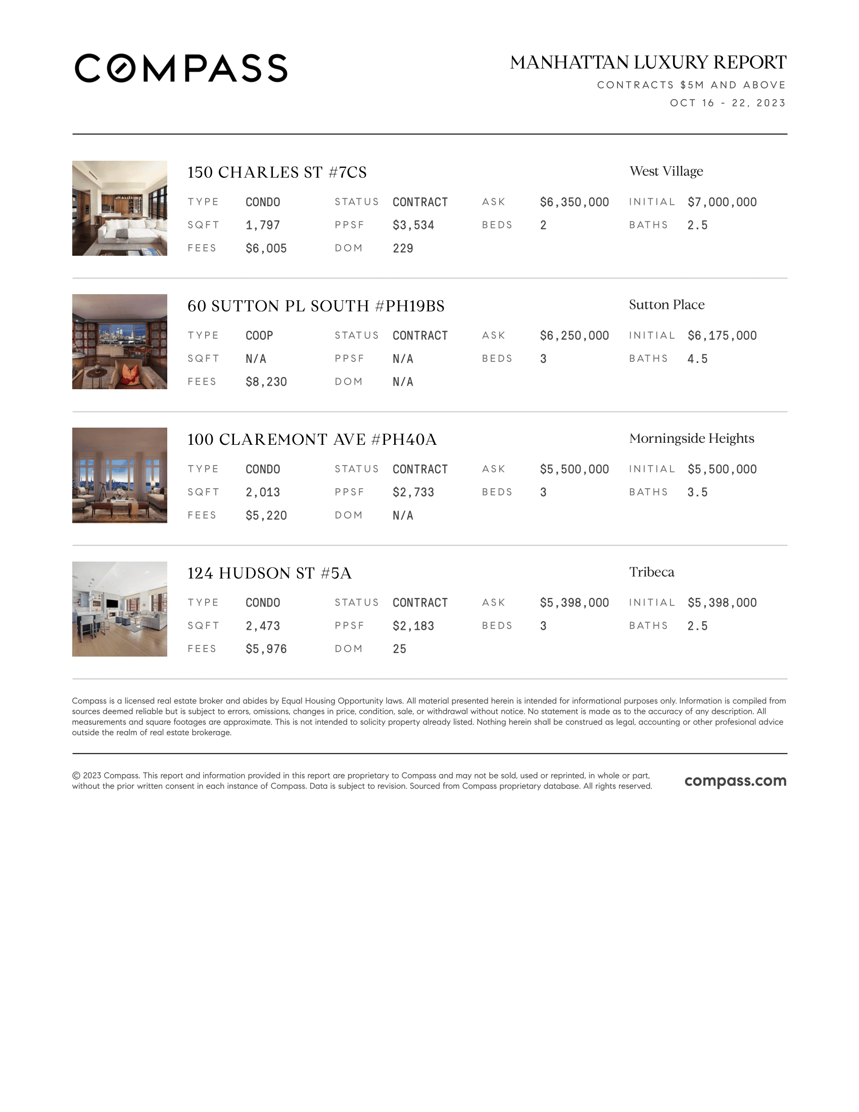 Manhattan Luxury Report: October 16, 2023 - October 22, 2023
