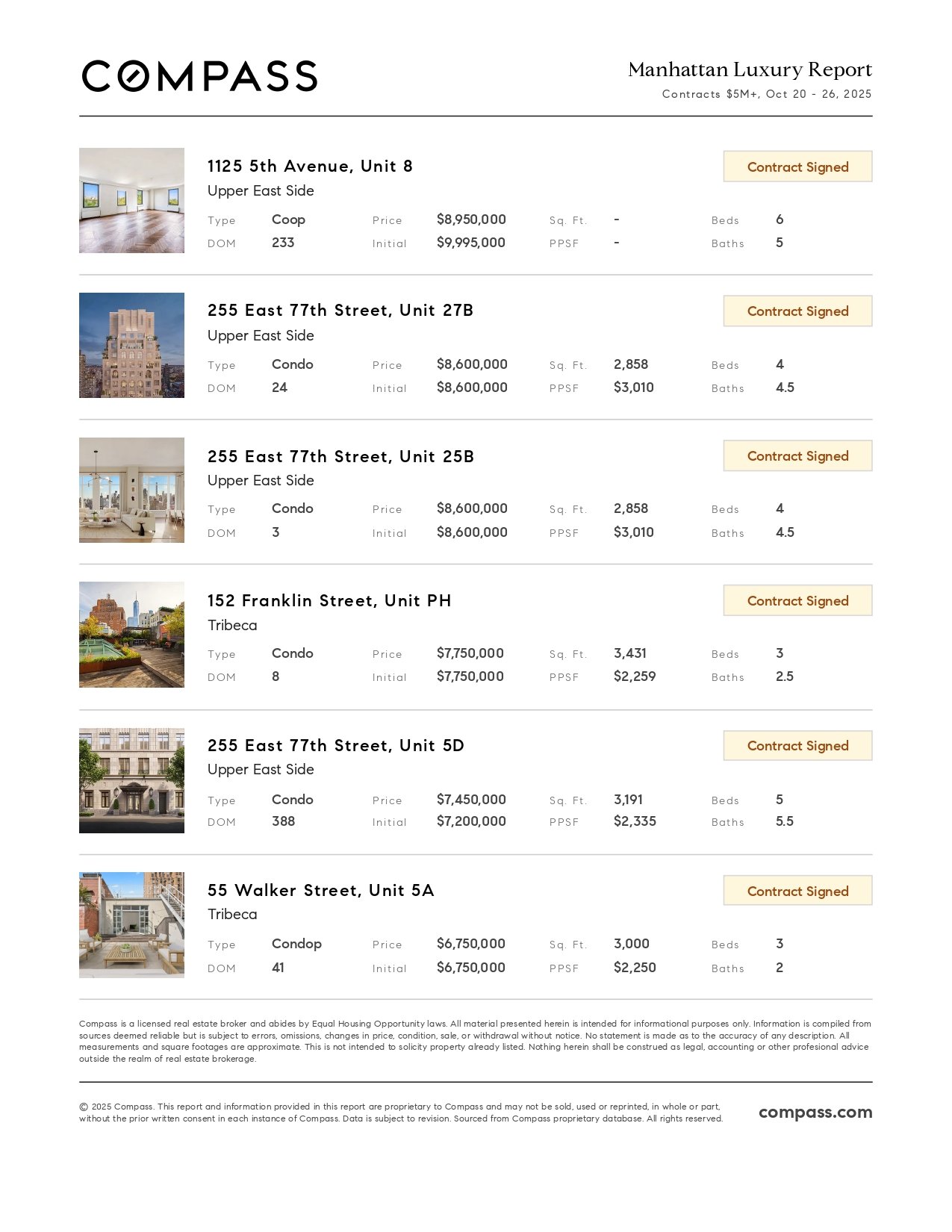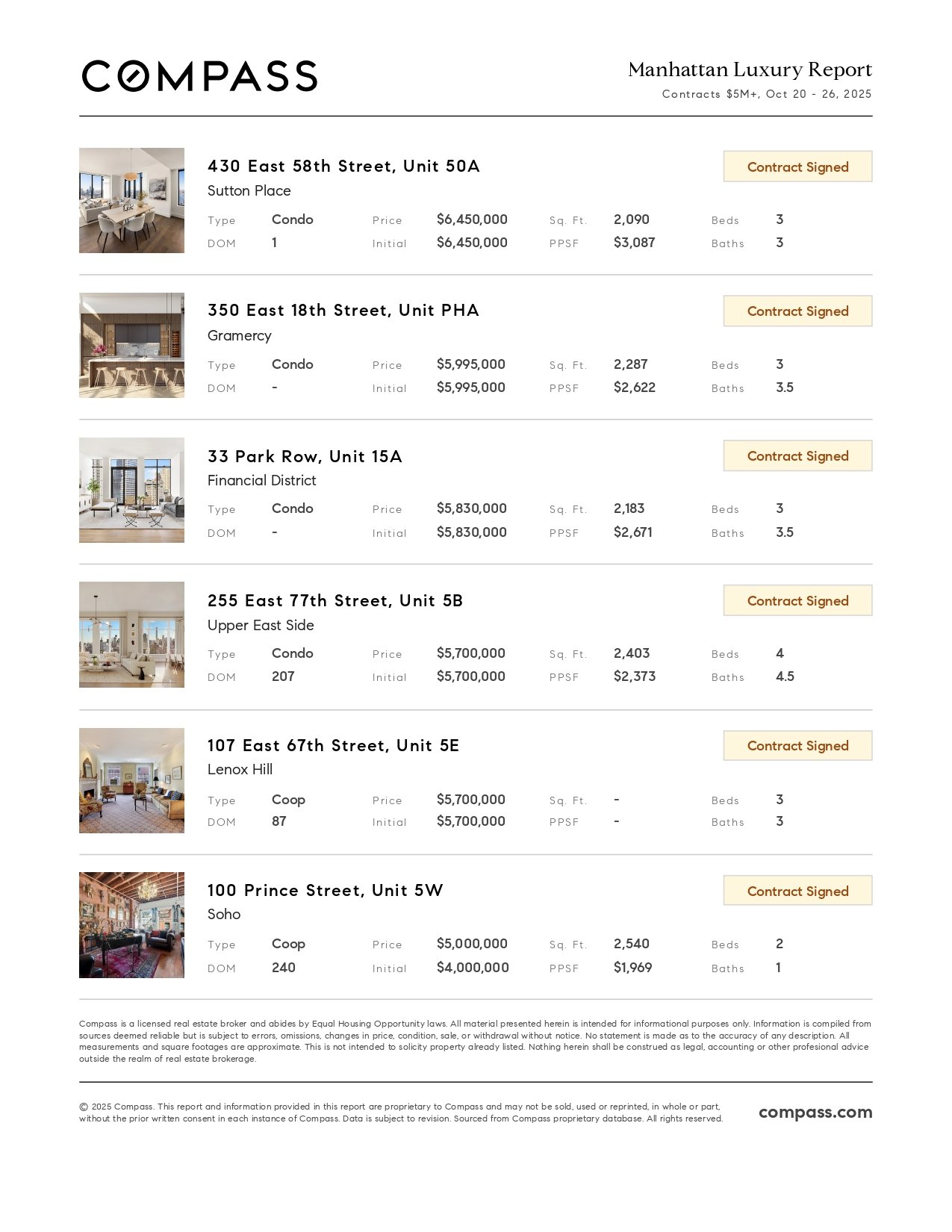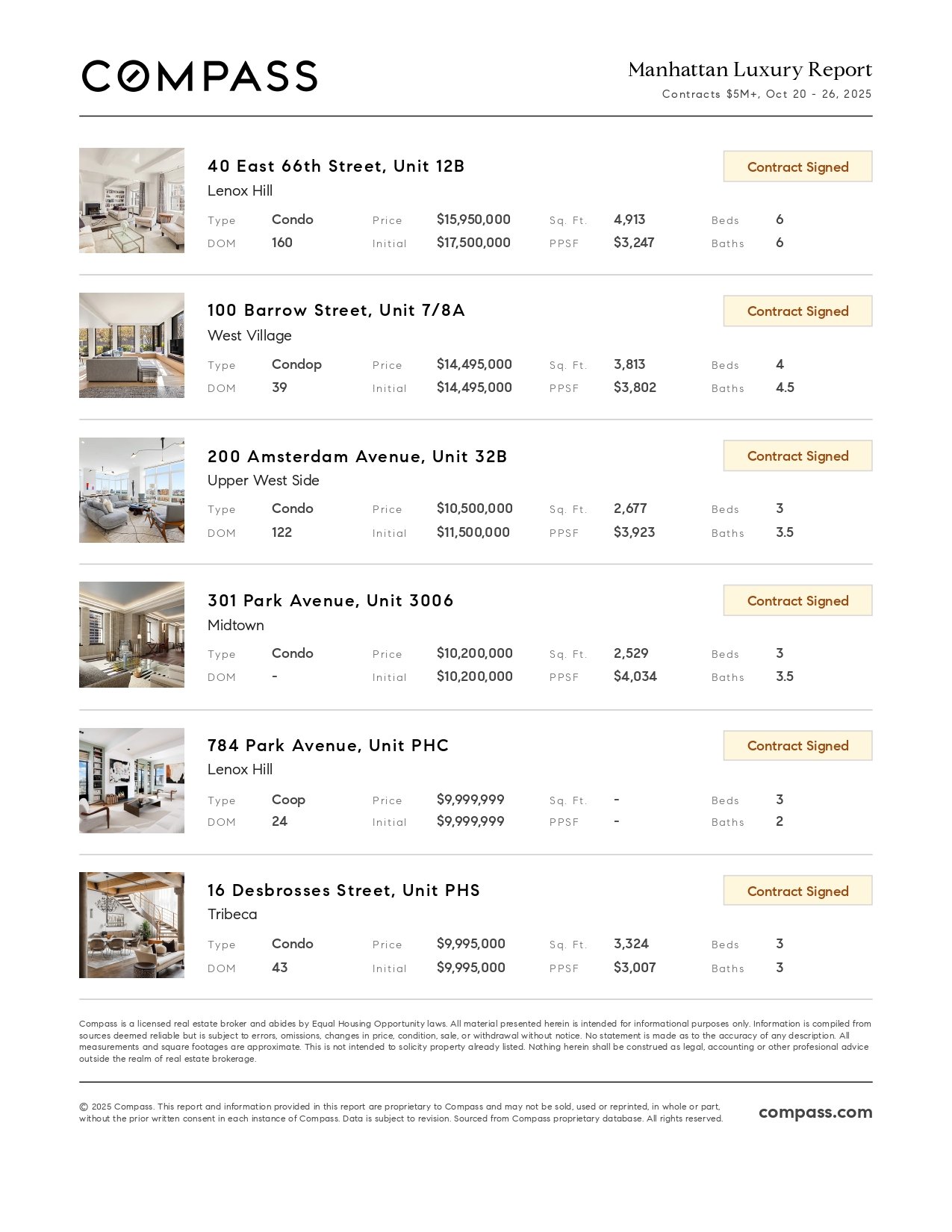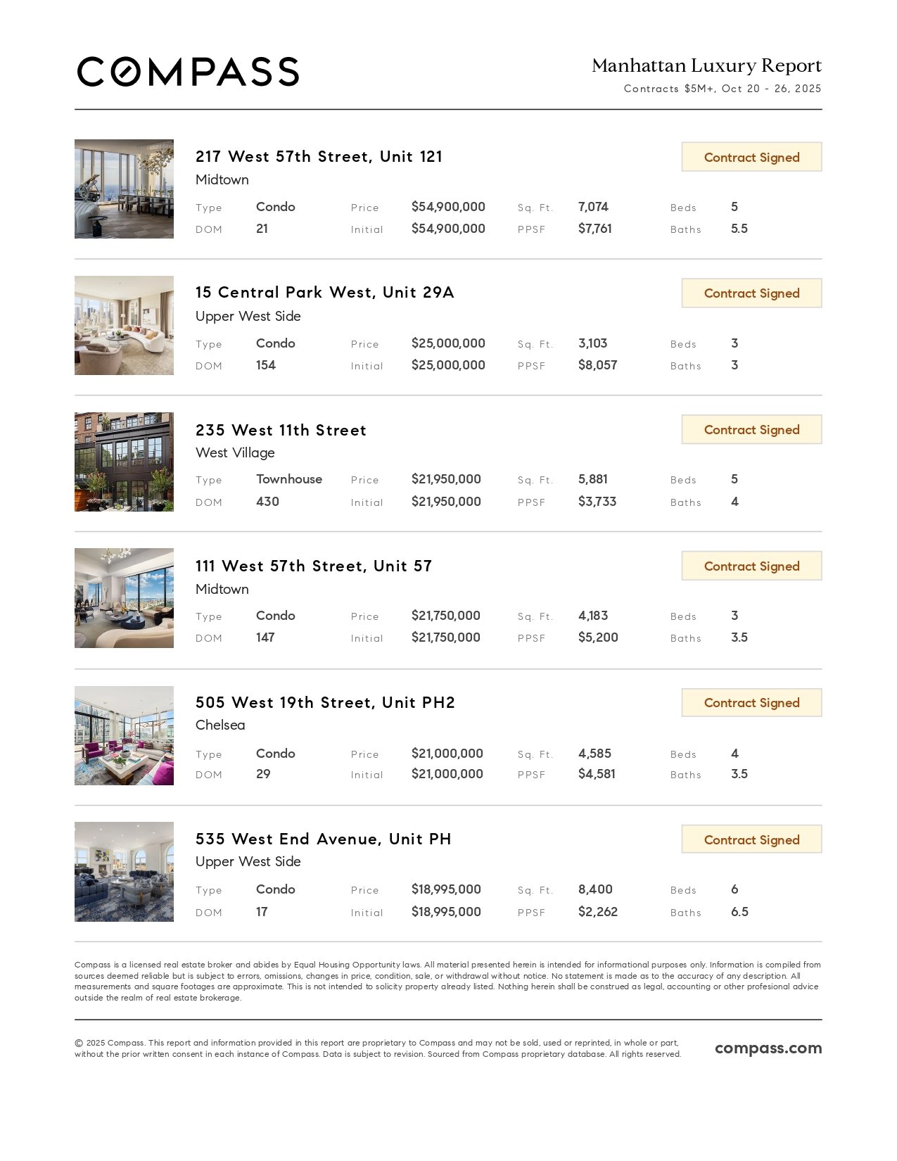 Manhattan Luxury Report: October 20, 2025 - October 26, 2025